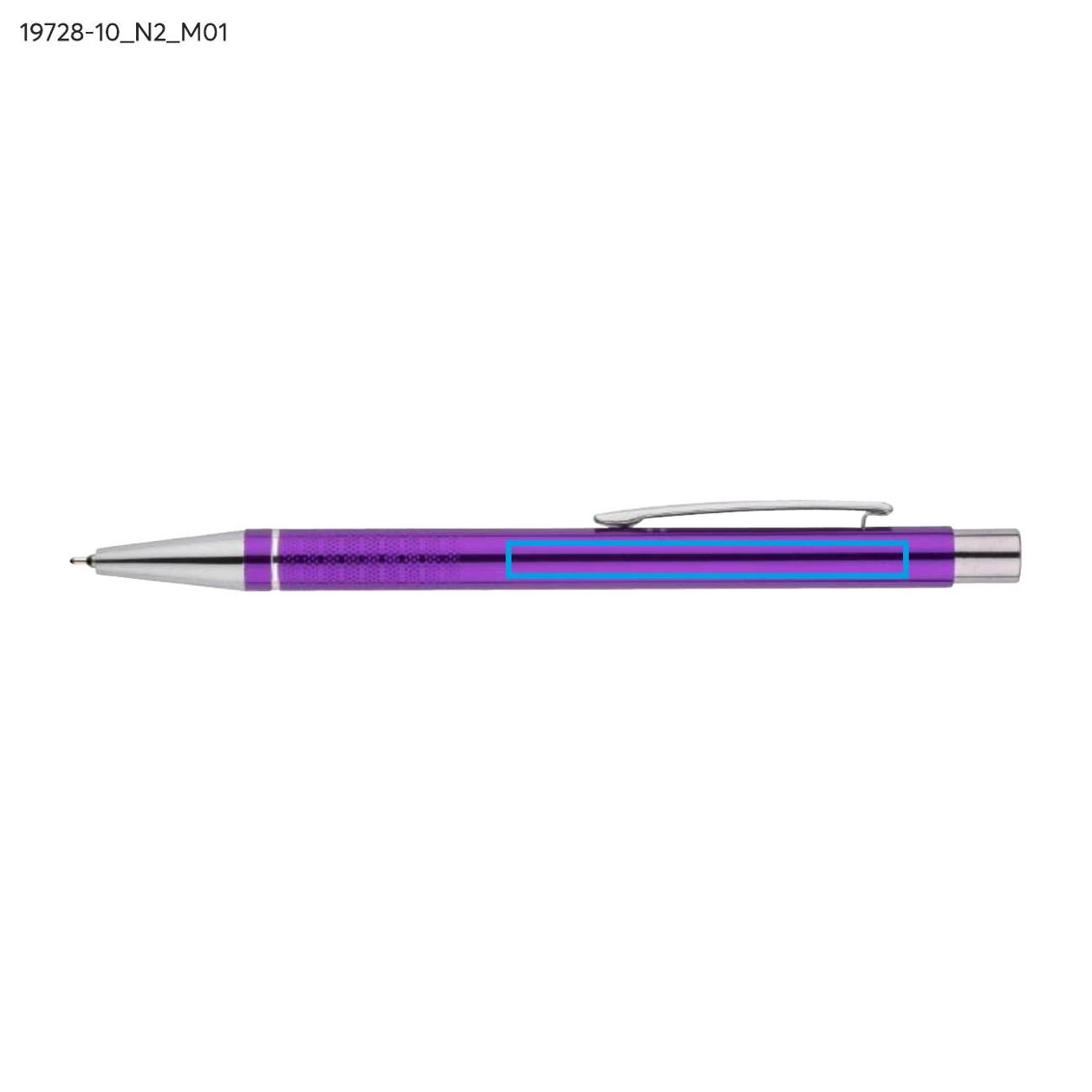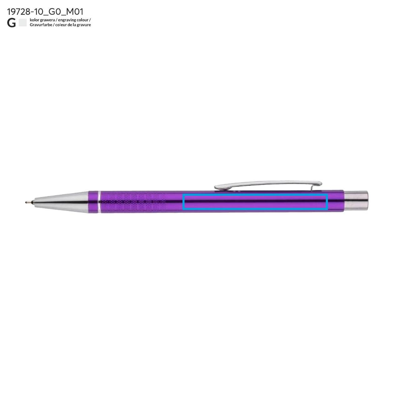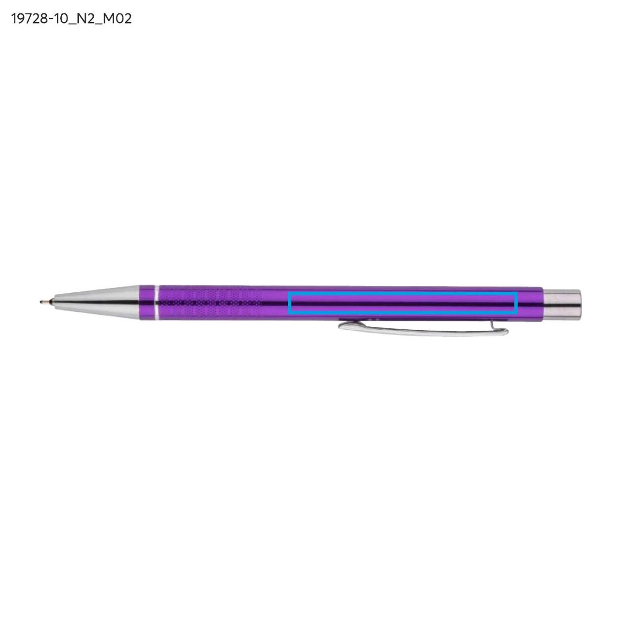 Długopis BONITO to elegancki metalowy długopis w metalicznych kolorach z chromowanymi wykończeniami. Wykonany z wysokiej jakości aluminium, korpus długopisu ozdobiony jest srebrnym ringiem oraz paskami o delikatnie chropowatej strukturze. Długopis wyposażony jest w wkład z tuszem półżelowym w kolorze czarnym o grubości 0,7 mm.