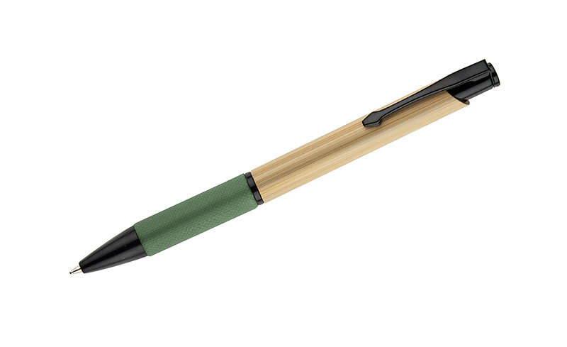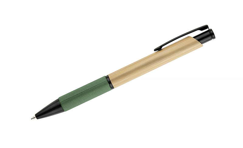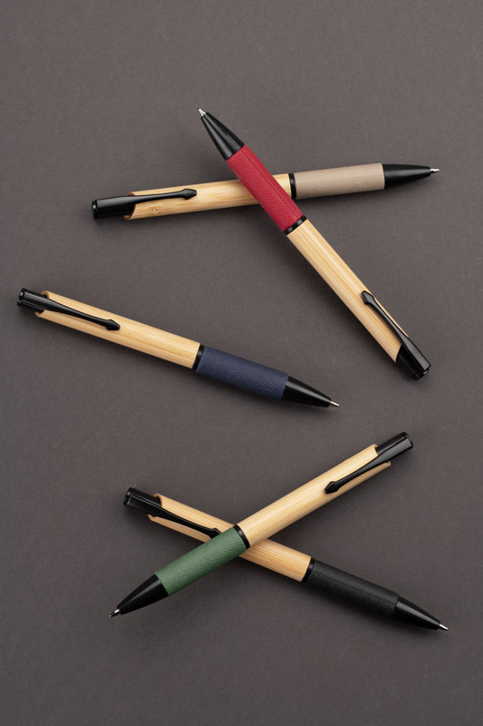 Długopis bambusowy NATU łączy prostą formę z detalami o naturalnym charakterze. Korpus wykonany z bambusa uzupełniono czarnymi elementami mechanizmu oraz uchwytem z tłoczonego papieru, który poprawia komfort trzymania. Długopis wyposażony jest we wkład typu Parker, co zapewnia płynne i wygodne pisanie. Subtelny, a zarazem funkcjonalny gadżet piśmienniczy o charakterze inspirowanym naturą.