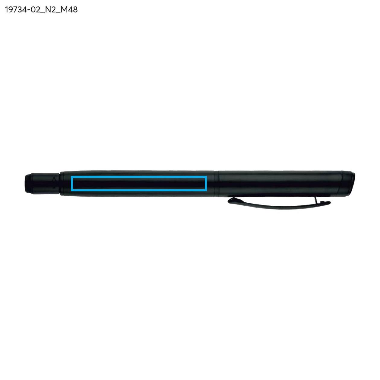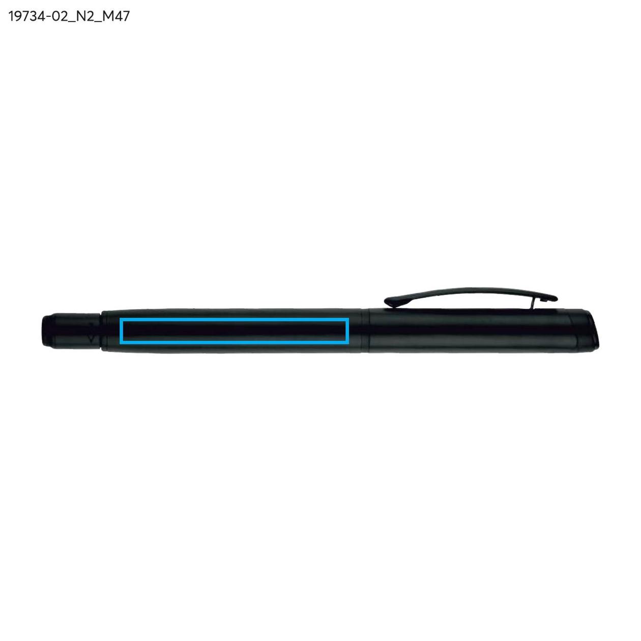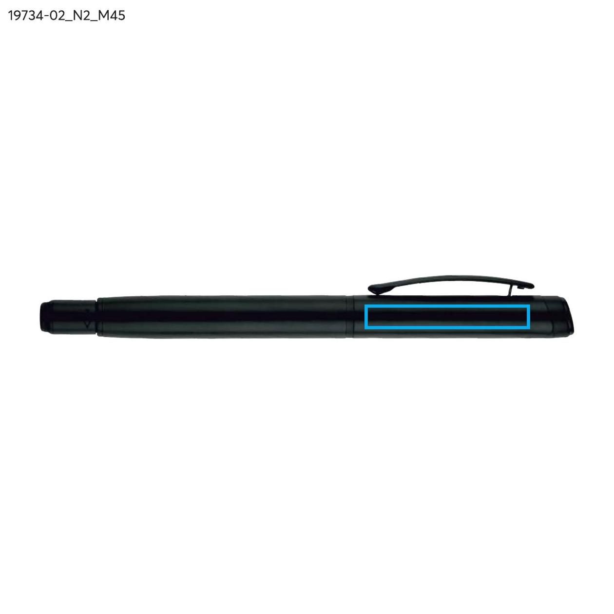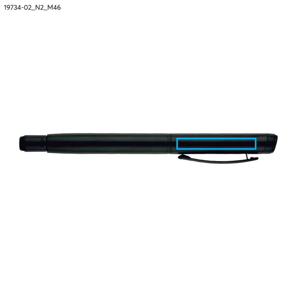 Długopis ROTIS to aluminiowy model z żelowym wkładem typu free ink, zamykany klasyczną zatyczką. Korpus o półmatowym wykończeniu uzupełnia czarny, metalowy klips, który dodaje elegancji. Obrotowa końcówka z wbudowanym spinnerem pełni funkcję antystresową – umieszczona na niej czarna strzałka, wytłoczona w materiale, subtelnie sugeruje kierunek obrotu.