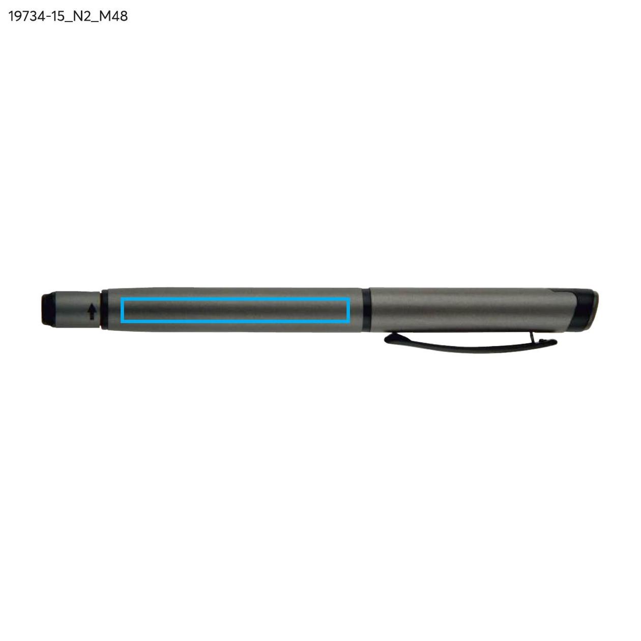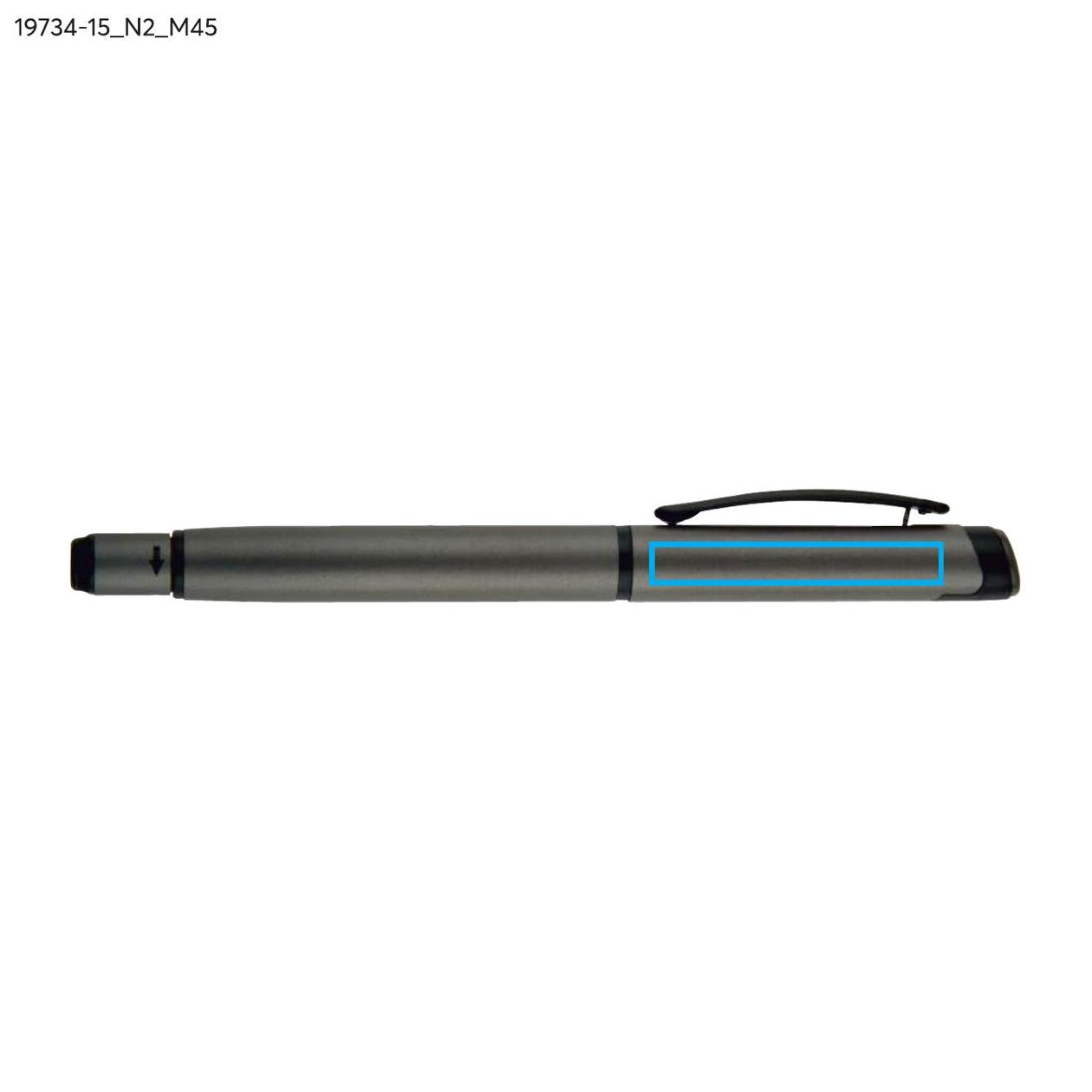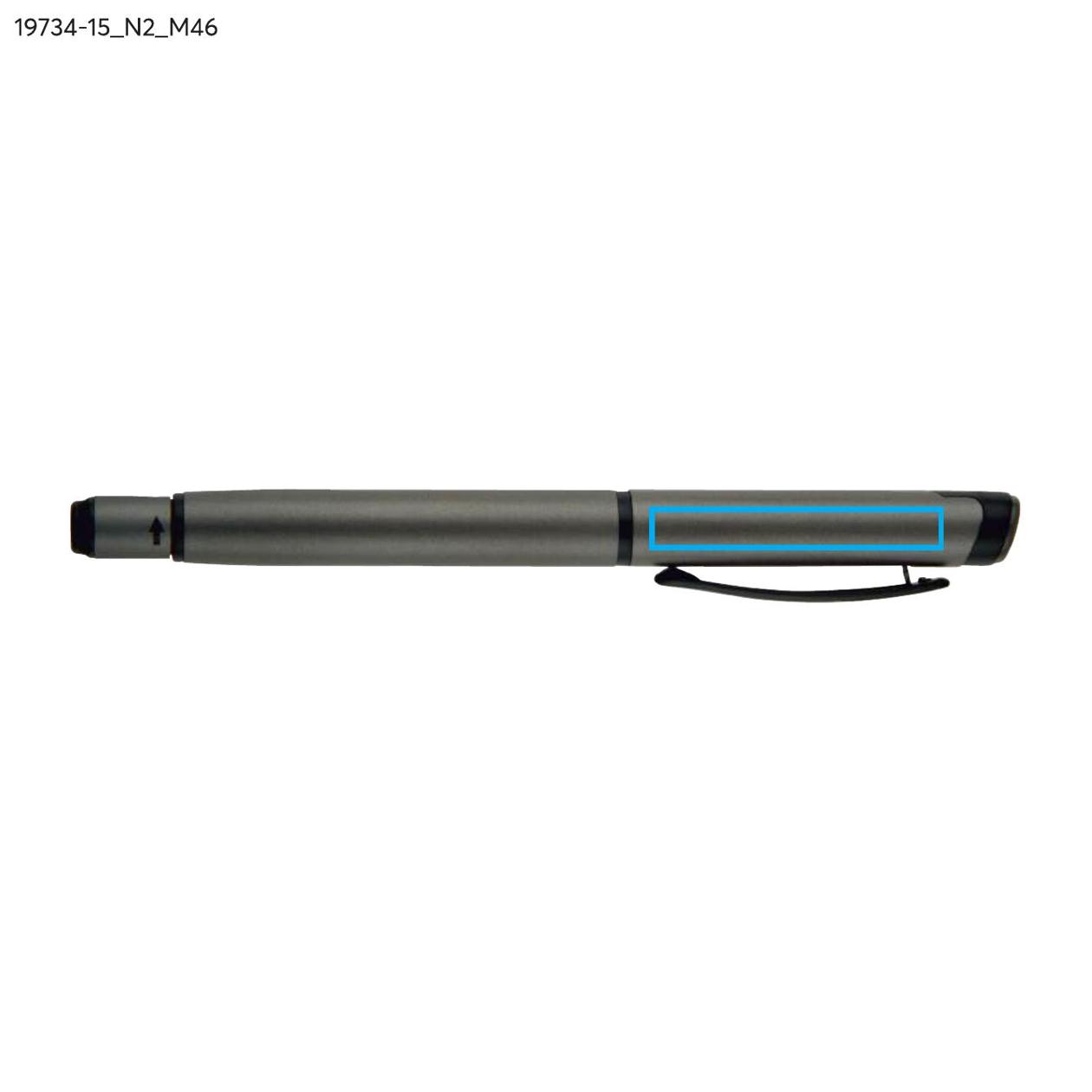Długopis ROTIS to aluminiowy model z żelowym wkładem typu free ink, zamykany klasyczną zatyczką. Korpus o półmatowym wykończeniu uzupełnia czarny, metalowy klips, który dodaje elegancji. Obrotowa końcówka z wbudowanym spinnerem pełni funkcję antystresową – umieszczona na niej czarna strzałka, wytłoczona w materiale, subtelnie sugeruje kierunek obrotu.
