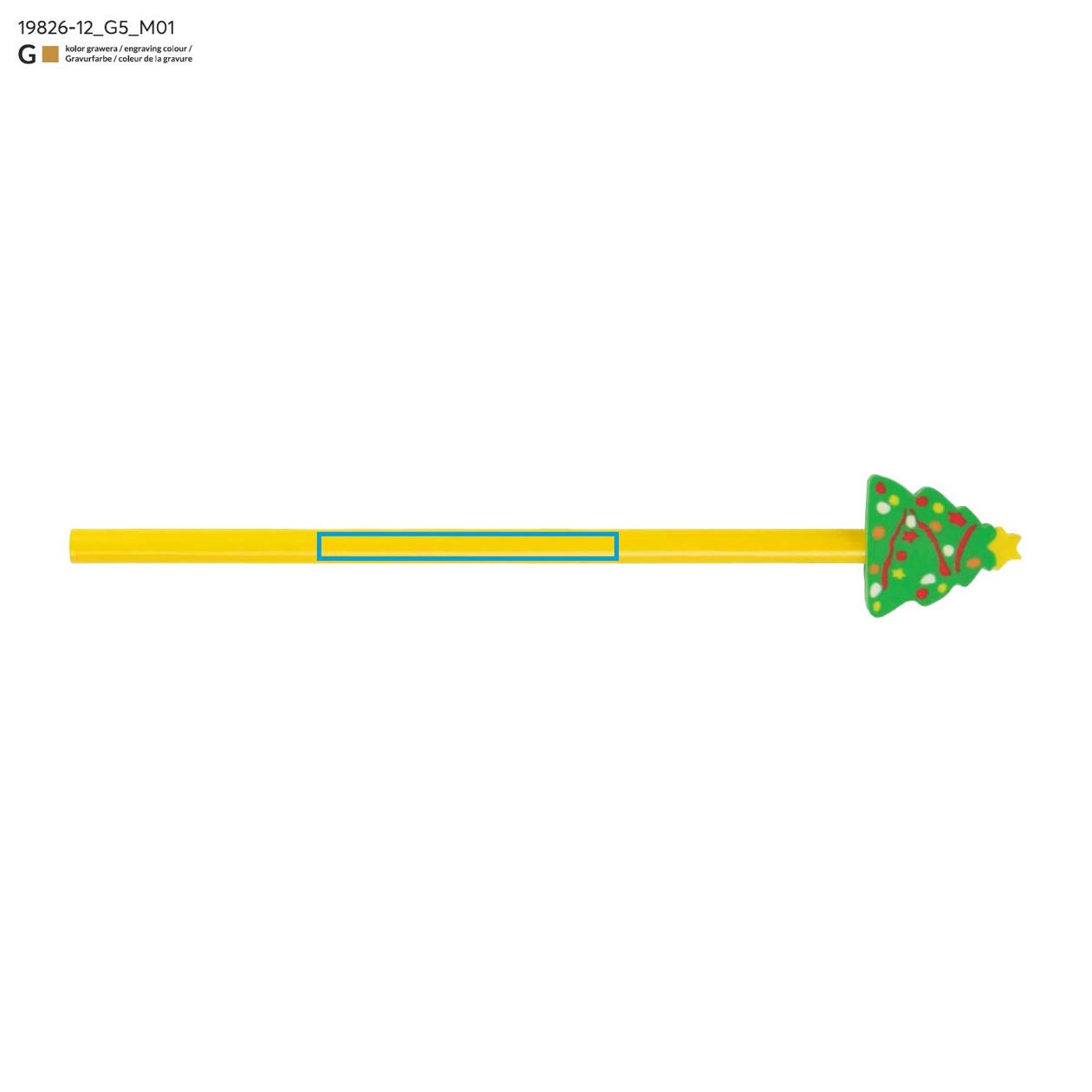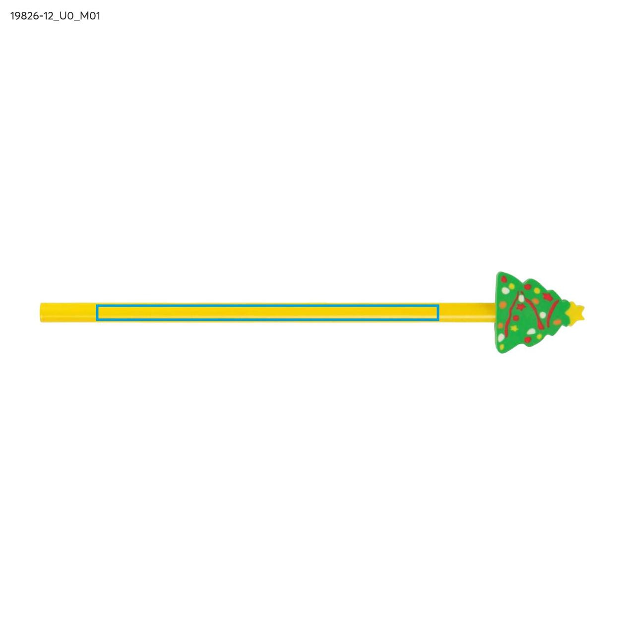 Ołówek CHRISTMAS to świąteczny upominek w żółtym kolorze, zakończony gumką w kształcie choinki. Wesoły, kolorowy akcent nadaje mu sezonowego charakteru i przyciąga uwagę najmłodszych. Idealny jako dodatek do zestawów mikołajkowych, kalendarzy adwentowych lub jako drobny gadżet reklamowy w okresie świątecznym.