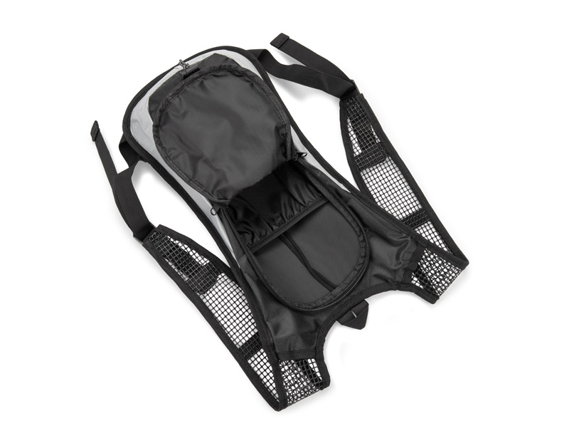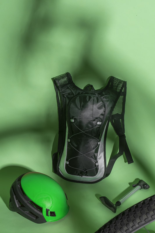 Plecak rowerowy RODE wykonany z wytrzymałego poliestru 420D posiada miejsce na bukłak, siateczkowe szelki z paskami odblaskowymi oraz gumkę ściągającą z przodu. Plecak ma usztywniony tył z elementami miękkiej siateczki dla podniesienia komfortu. Pojemność plecaka: około 3,2L.