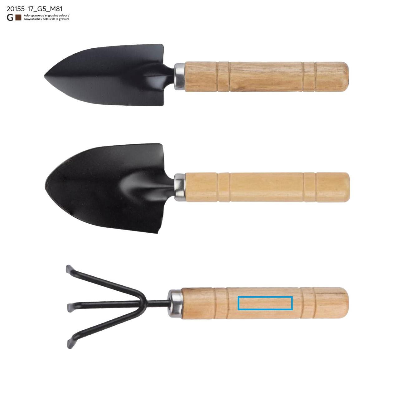 Zestaw mini narzędzi ogrodniczych zawiera grabki, łopatkę i szpikulec ułatwiający sadzenie roślin. Cały zestaw jest zapakowany w woreczek non-woven, który ułatwia jego przechowywanie. Doskonały prezent dla amatorów prac ogrodowych.