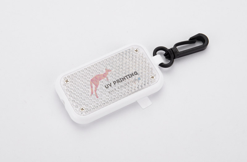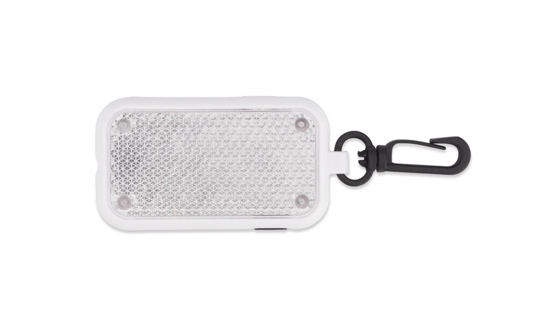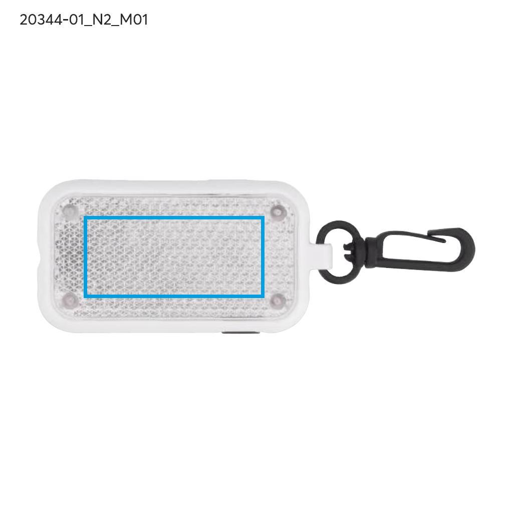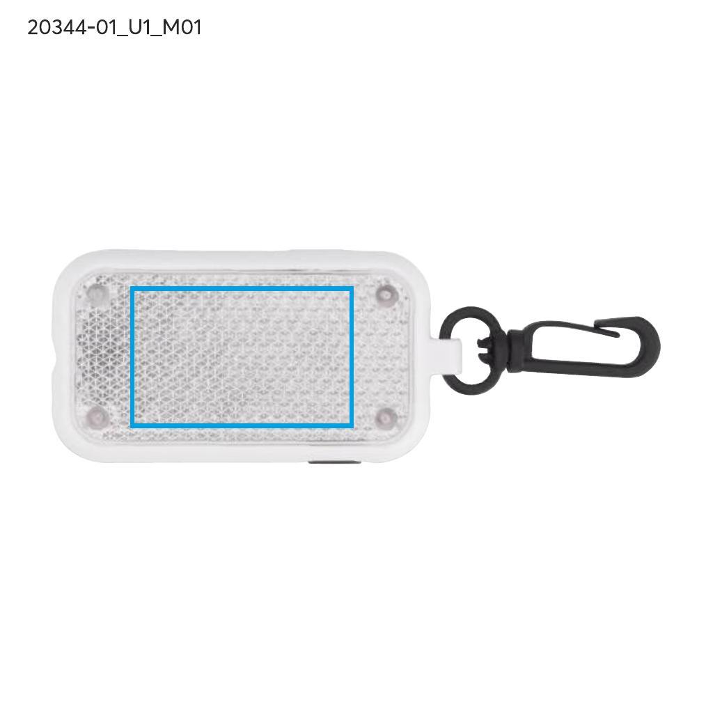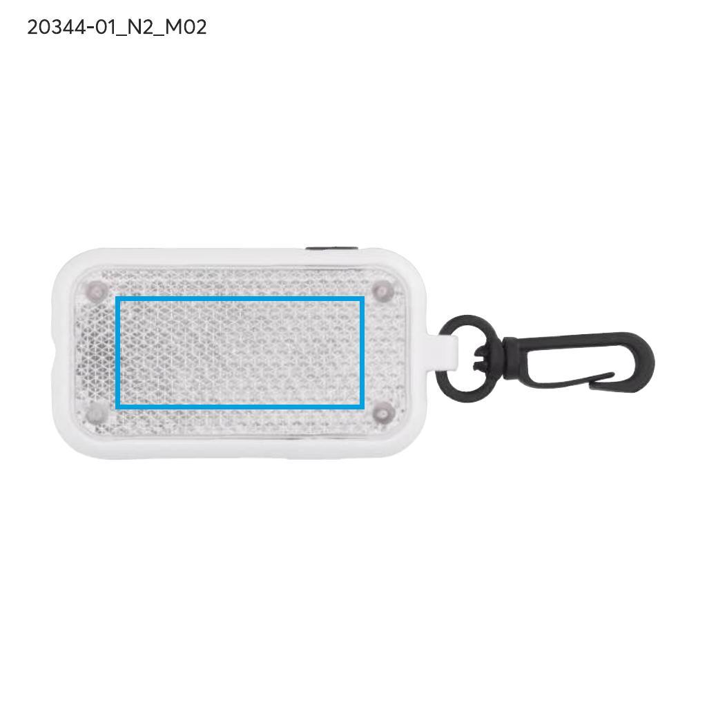 Zawieszka świecąca LITTO to funkcjonalny dodatek wyposażony w latarkę LED z trzema trybami świecenia: światło ciągłe oraz migające z różną częstotliwością. Dzięki zaczepowi można ją łatwo przypiąć do różnych przedmiotów. Zawiera elementy o właściwościach odbijających światło, które dodatkowo podkreślają jej funkcjonalność po zmroku.