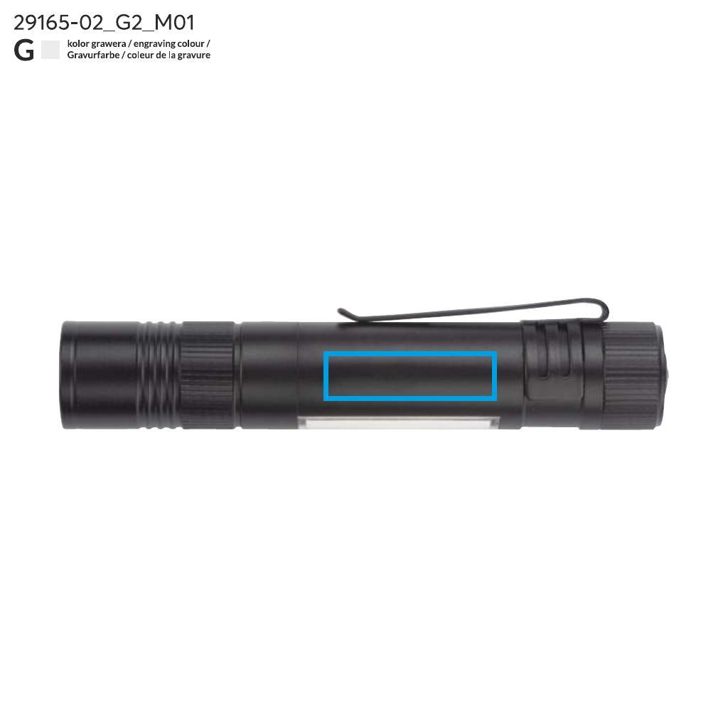 Latarka MAESTRO to gadżet wielofunkcyjny. Oprócz głównej funkcji, czyli lampki COB, w produkcie znajdziemy również zestaw trzech bitów: płaski, krzyżowy i gwiazdkowy. Latarka wyposażona jest w metalowy klip i magnes do mocowania.