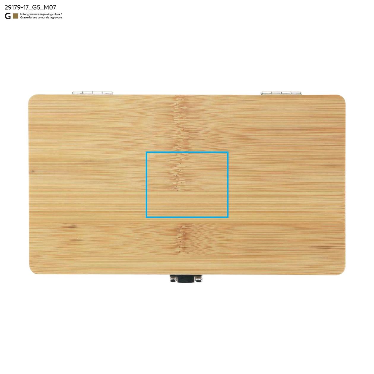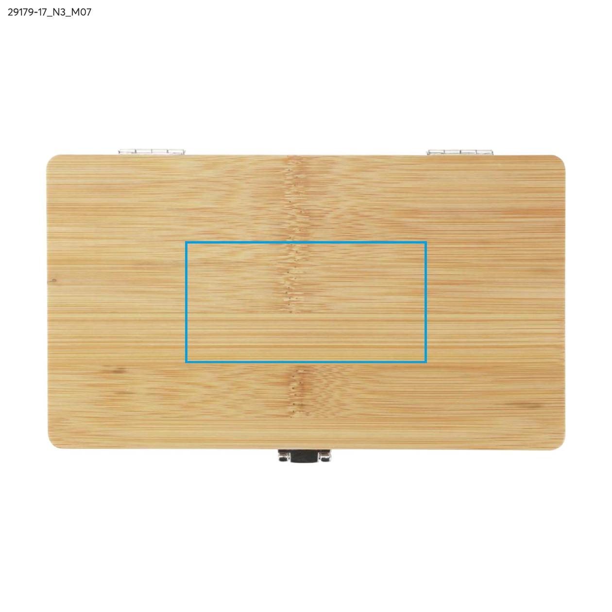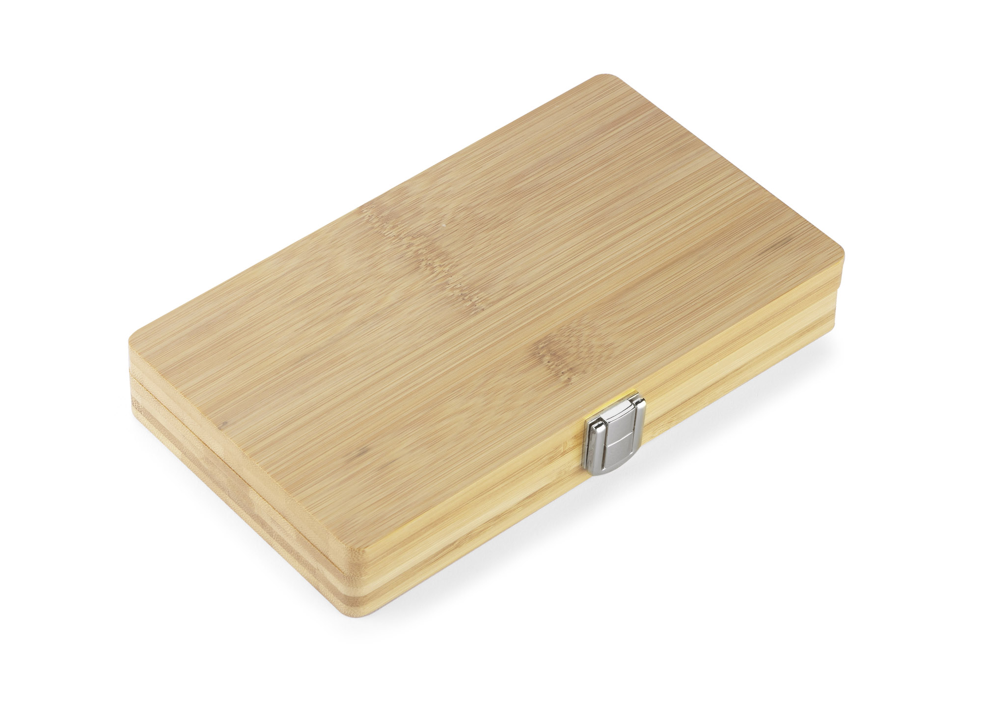 MAD to zestaw narzędzi w bambusowej obudowie. Zestaw zawiera: wkrętak, dziesięć różnych bitów, przedłużkę, cztery nasadki (7 mm, 8 mm, 9 mm i 10 mm), trzy wkrętaki precyzyjne oraz nożyk do tapet. Obudowa zamykana na metalowy zatrzask.