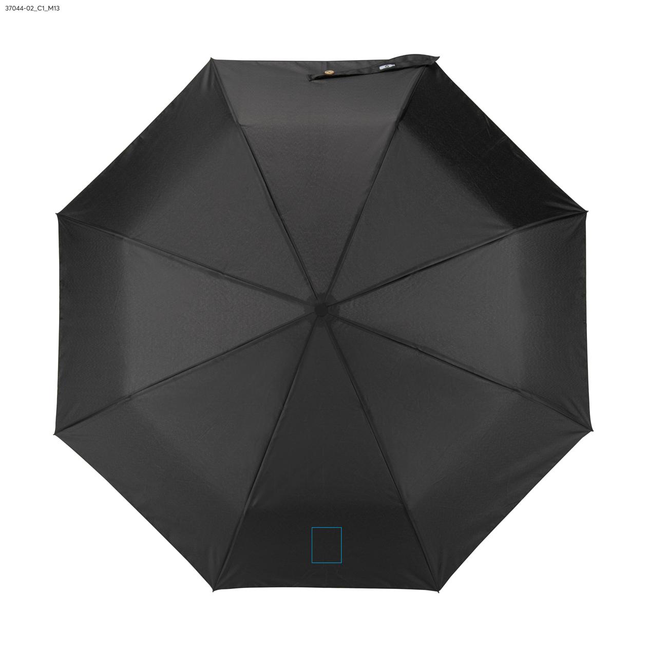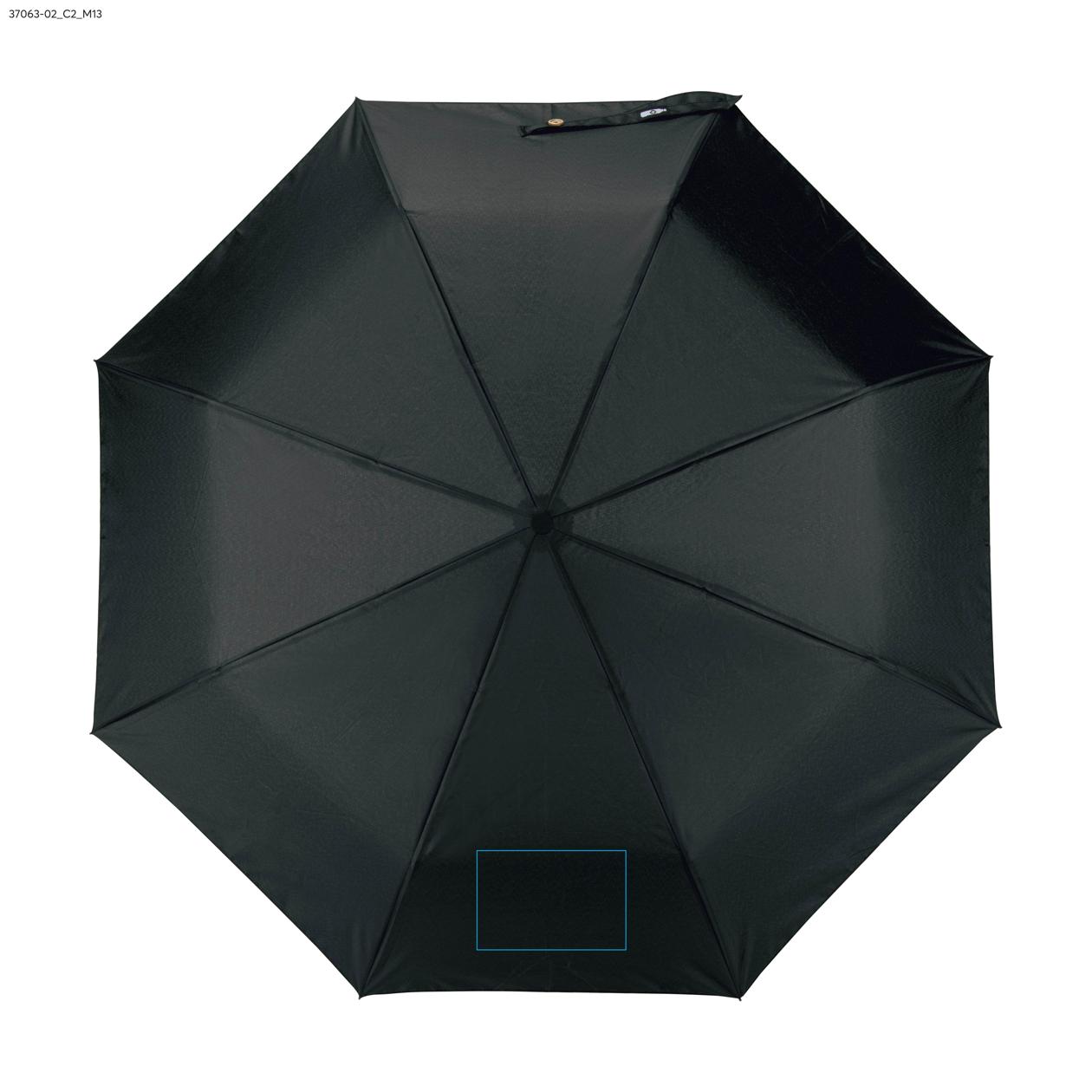 Parasol RALO to stylowe i wygodne rozwiązanie na każdą pogodę. Dzięki automatycznemu mechanizmowi otwierania i zamykania rozkłada się jednym przyciskiem umieszczonym na drewnianej rączce. Czasza z wytrzymałego materiału rPET poliester 190T skutecznie chroni przed deszczem, a stelaż z metalu i włókna szklanego zwiększa odporność na wiatr. Całość dopełnia drewniany guzik na pasku zamykającym, który dodaje parasolowi oryginalnego charakteru. Możliwość znakowania sprawia, że RALO świetnie sprawdzi się jako elegancki gadżet reklamowy.