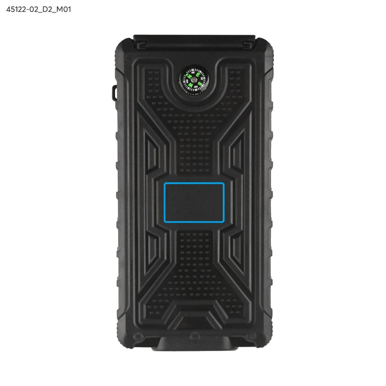 Power bank SOL posiada panel solarny i dużą pojemność 10 000 mAh, która wystarczy na kilka ładowań twojego telefonu. Diody pokazują aktualny poziom naładowania baterii. Wyposażony jest w podwójną latarkę z czterema trybami świecenia i wbudowany kompas. W zestawie standardowy kabel micro USB do ładowania. Produkt jest zgodny z odpowiednimi dyrektywami Unii Europejskiej, posiada znak CE oraz 1 rok gwarancji. Dane techniczne: wejście (micro USB i USB typu C) 5V/2A, 2 wyjścia USB 5V/2.1A (max), bateria litowo-polimerowa.