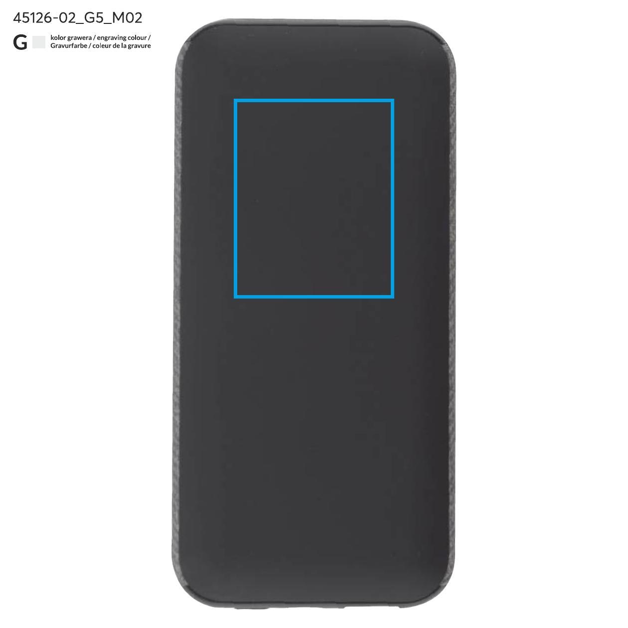 Power bank NARAMA o pojemności 10 000 mAh to nowoczesny gadżet z funkcją ładowania indukcyjnego, umożliwiający bezprzewodowe zasilanie kompatybilnych urządzeń. Z jednej strony wykończony tekstylną tkaniną, z drugiej – gładki, z miejscem na znakowanie, doskonale sprawdza się jako estetyczny nośnik reklamy. Wybierając grawer, zyskujesz efekt podświetlanego logo – subtelne, białe światło LED wyróżnia branding i przyciąga uwagę. Urządzenie wyposażone jest w jeden port USB i obsługuje technologię szybkiego ładowania (2.1 A), co pozwala na sprawne uzupełnianie energii.