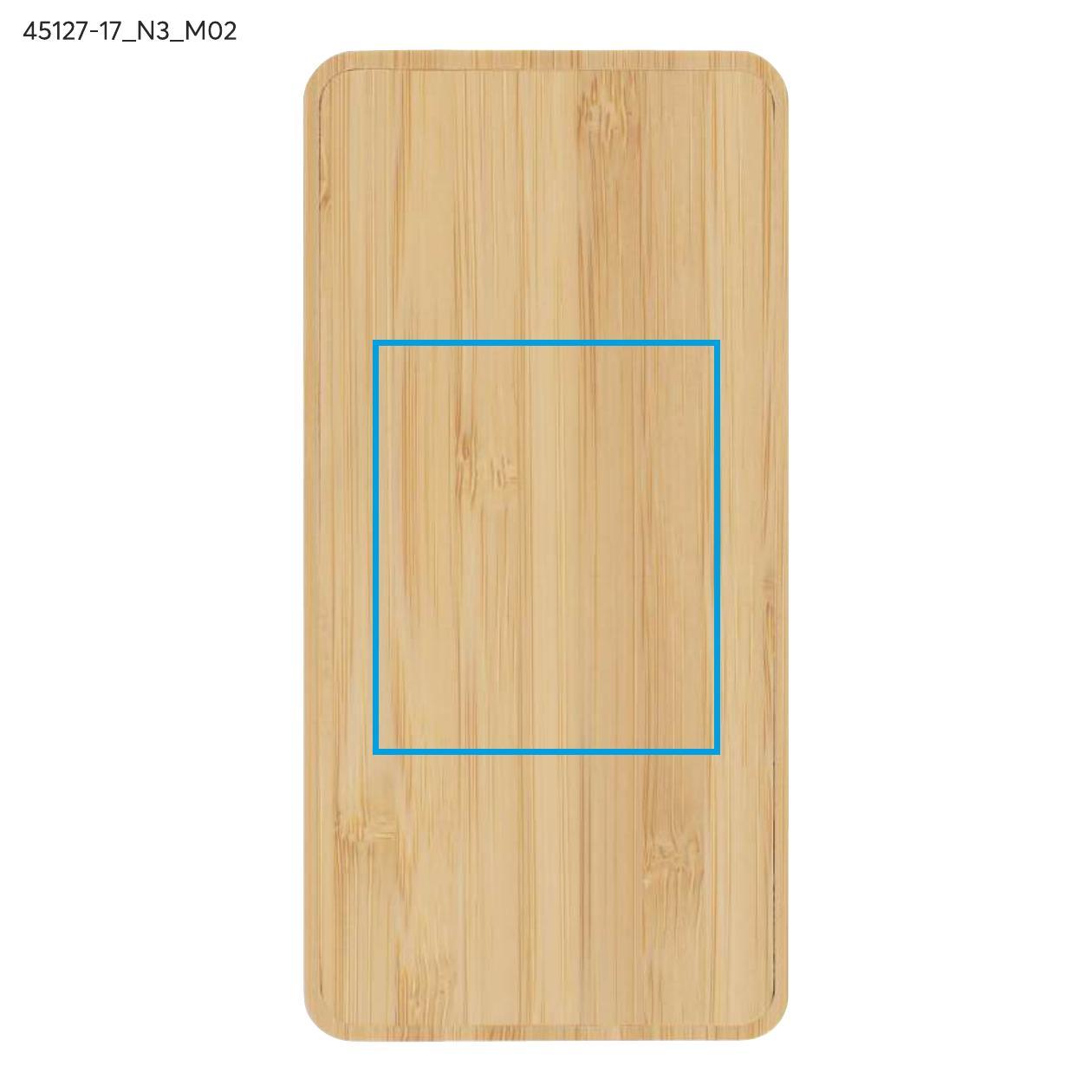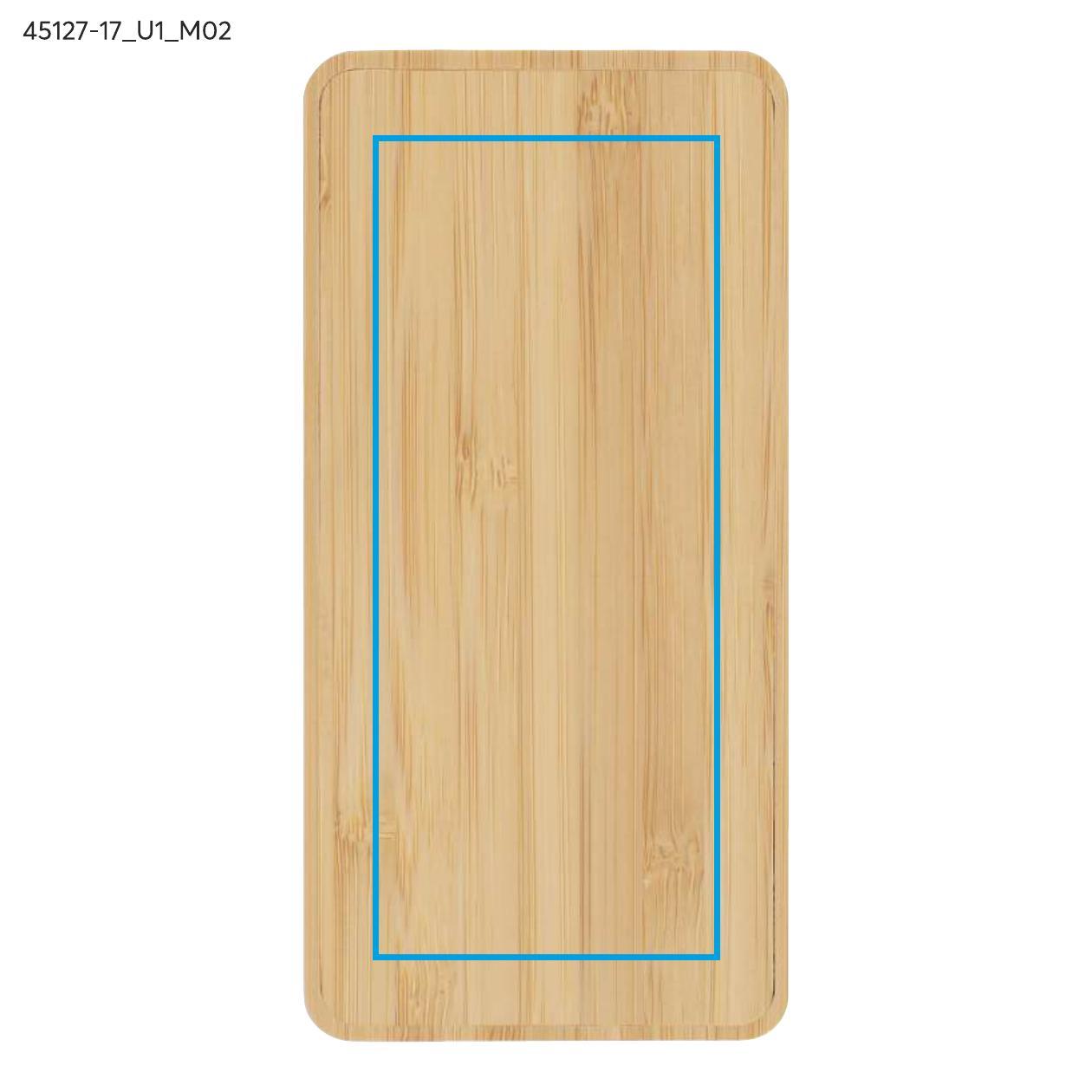 Bambusowy Power Bank BORRA 10000 mAh - ekologiczne nawiązanie do natury z ładowaniem bezprzewodowym. Zaokrąglone rogi oraz nowoczesny design sprawią, że pokochasz korzystanie z tego urządzenia. Genialna powierzchnia do znakowania dodaje wyjątkowego stylu, a pełna mobilność gwarantuje energię dla Twoich urządzeń z prędkością 10w, gdziekolwiek jesteś. Przyjazna dla środowiska alternatywa. Kabel do ładowania nie jest dołączony.Dane techniczne: wejście (USB typu C) 5V/2A, wyjście (2 xUSB A) 5V/2.1A (max), bateria litowo-polimerowa.