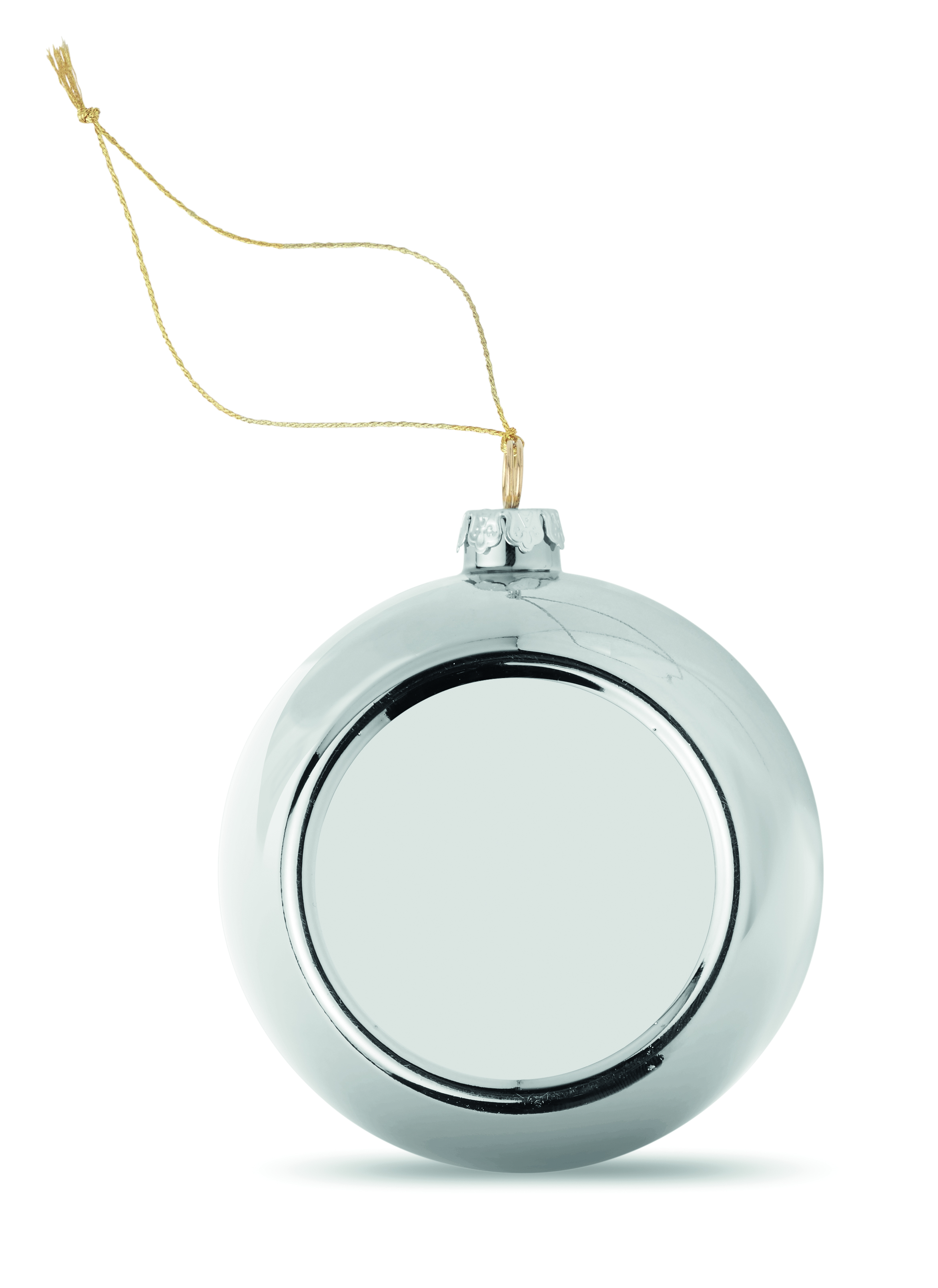 Świąteczna bombka z błyszczącego PP z płytką do druku sublimacyjnego. Średnica 6 cm.