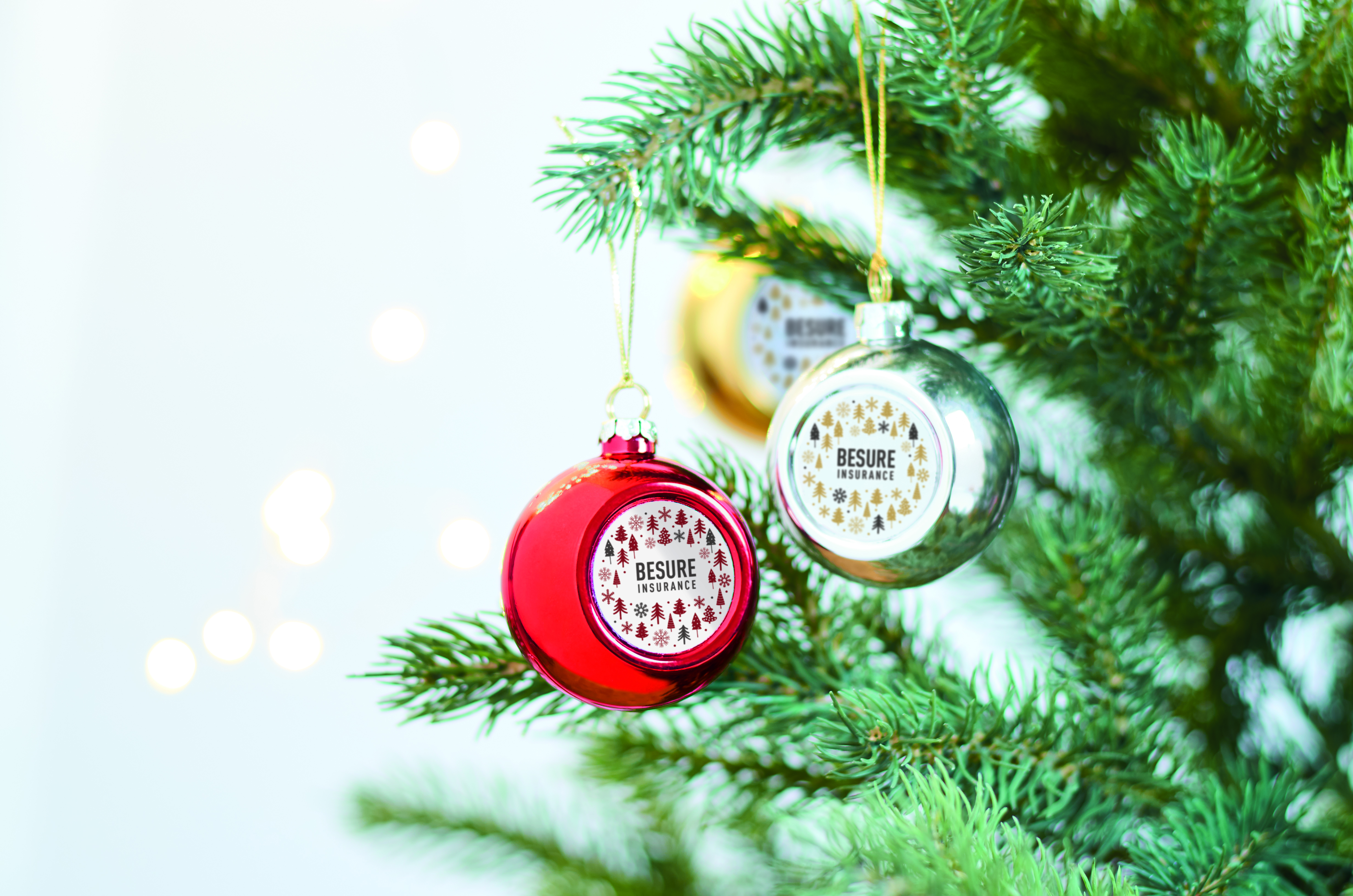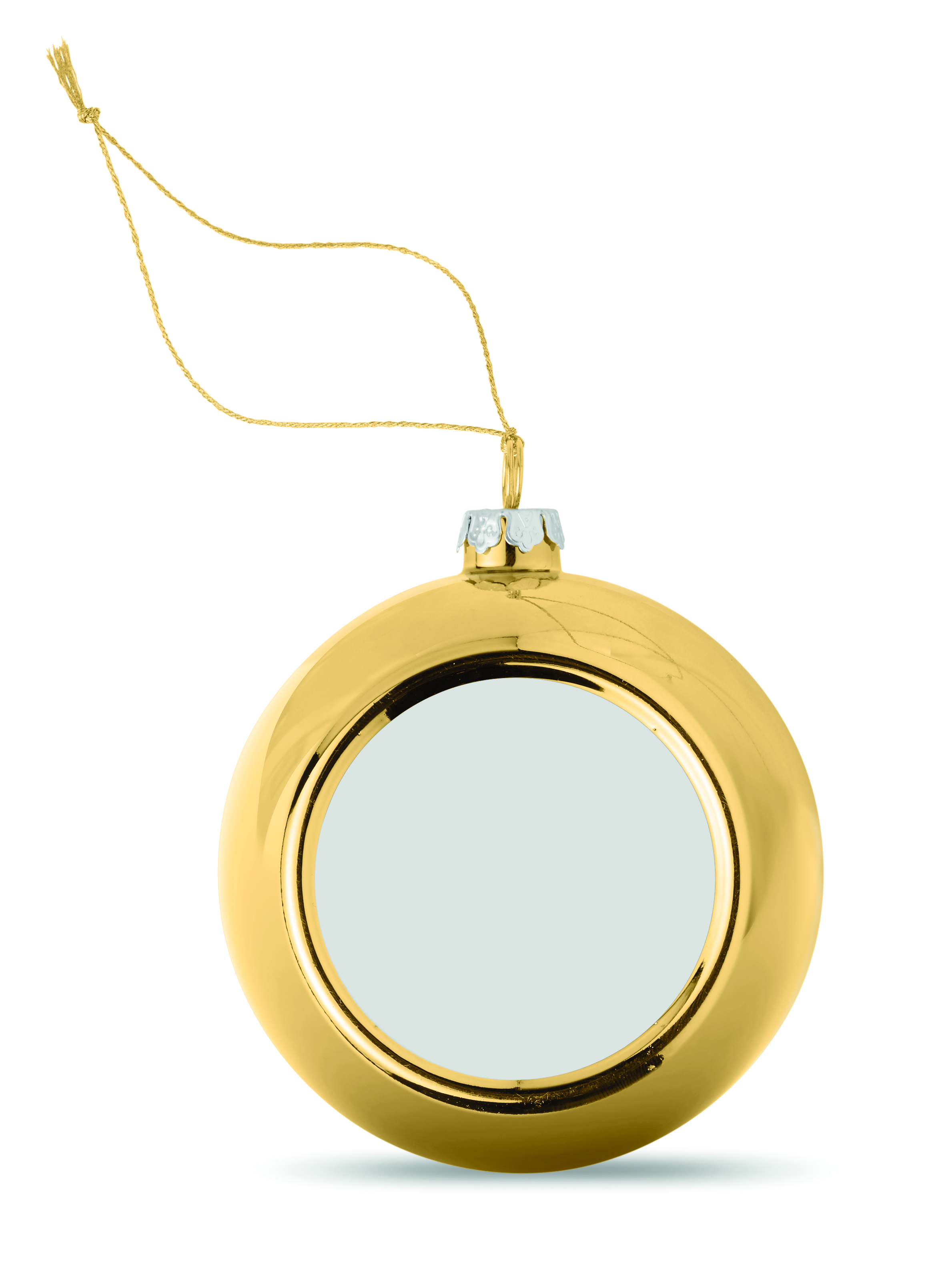 Świąteczna bombka z błyszczącego PP z płytką do druku sublimacyjnego. Średnica 6 cm.