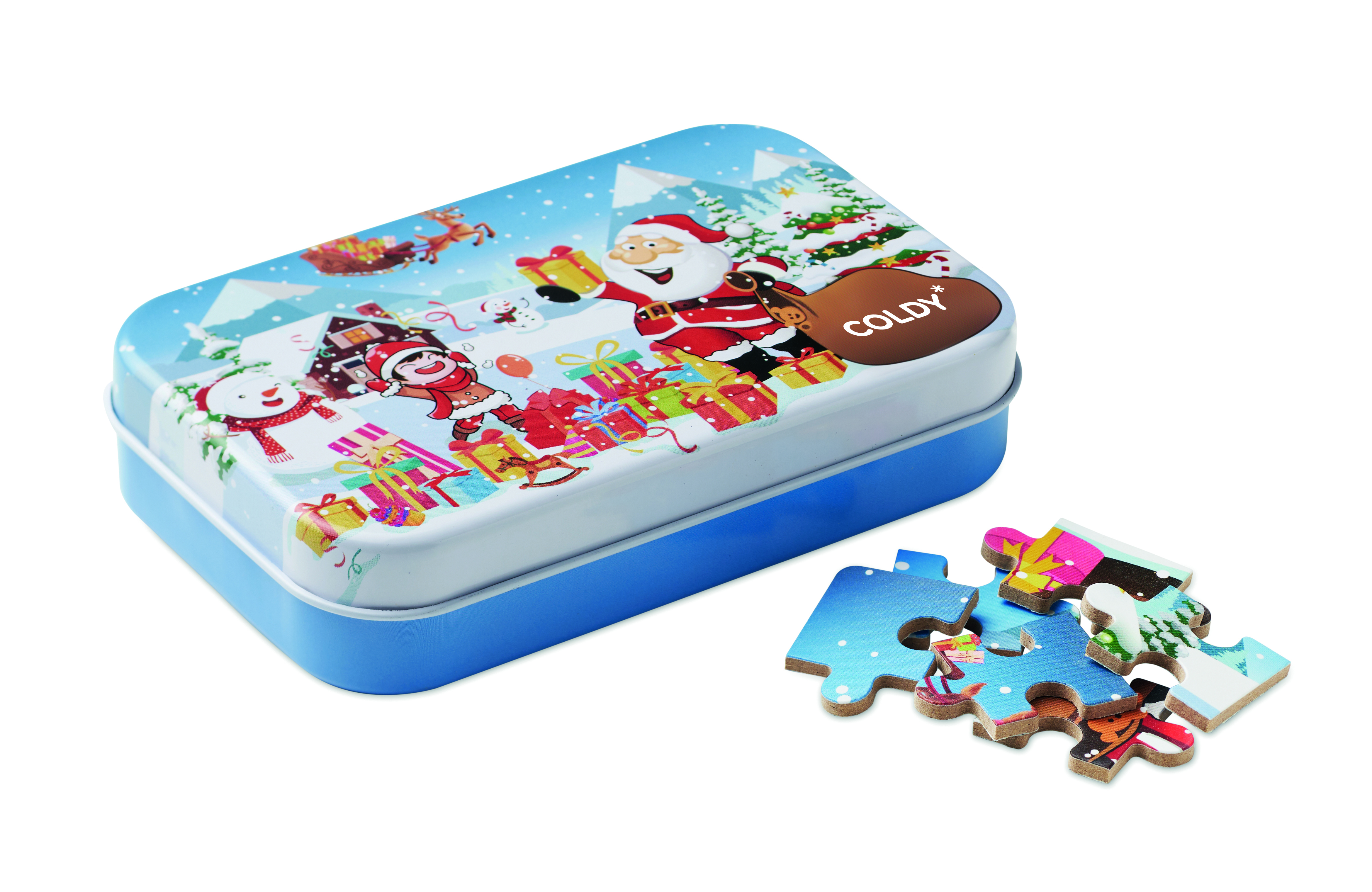 Świąteczne puzzle w metalowym pudełku. 60 elementów.