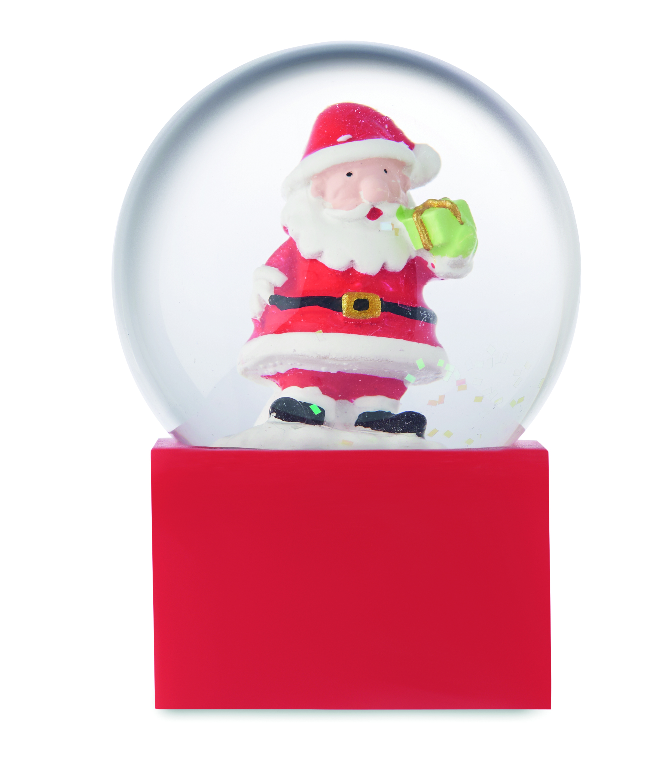 Mała świąteczna szklana kula śnieżna z podstawą z polyresinu.