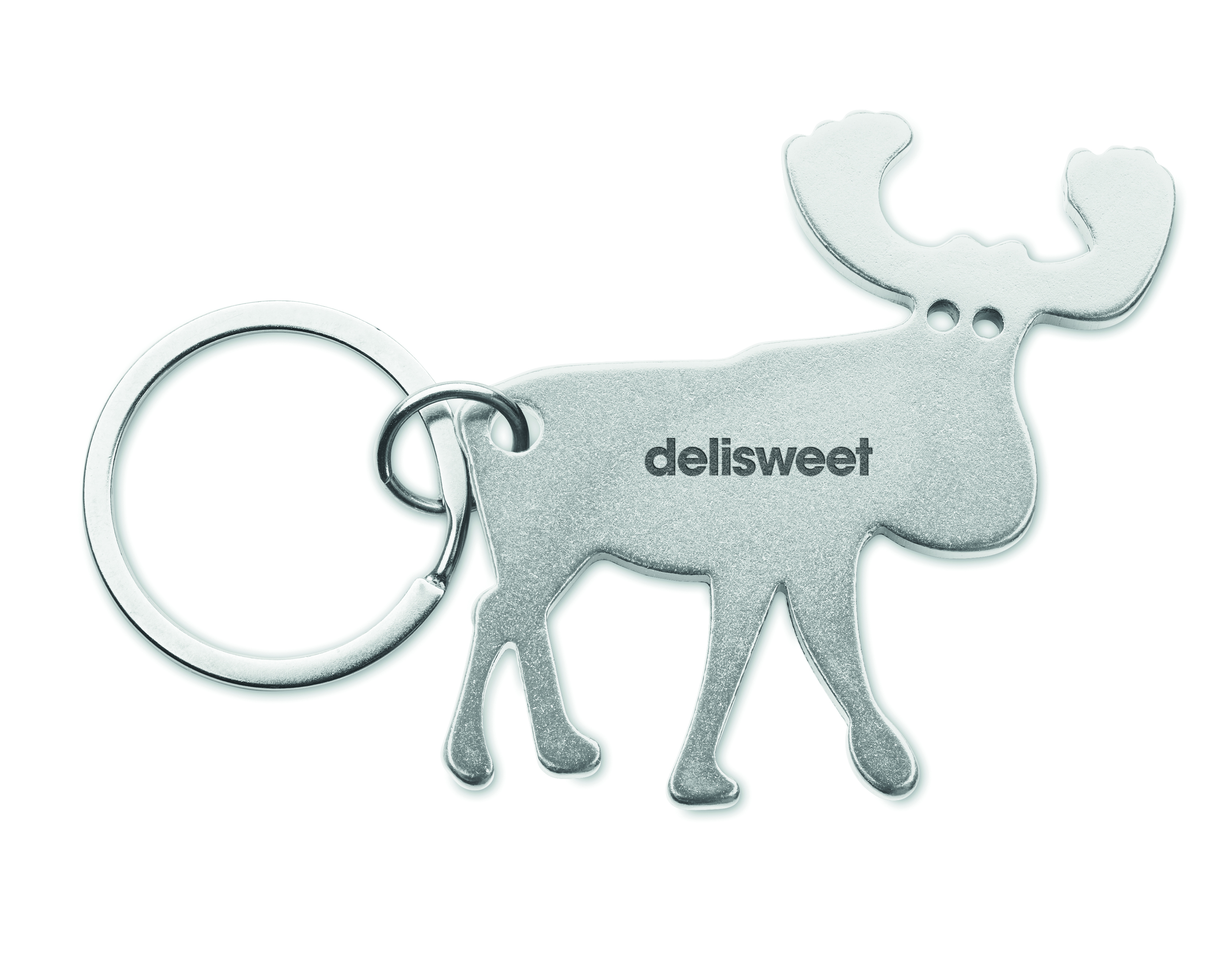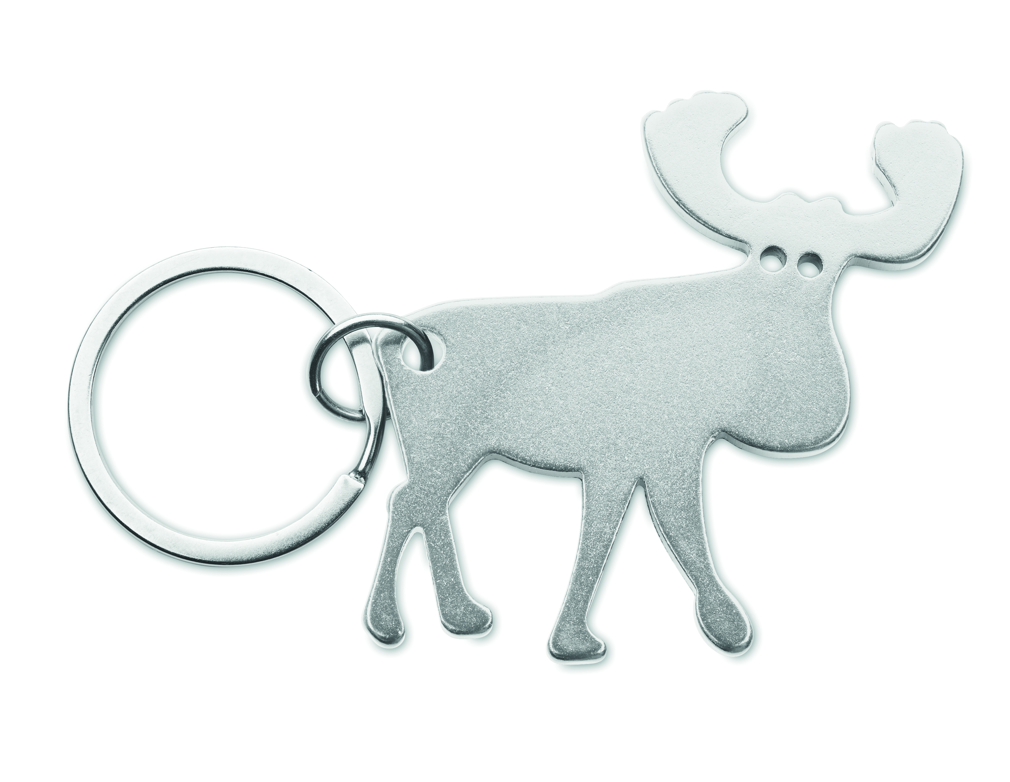 Aluminiowy brelok z recyklingu z otwieraczem do butelek w kształcie renifera.