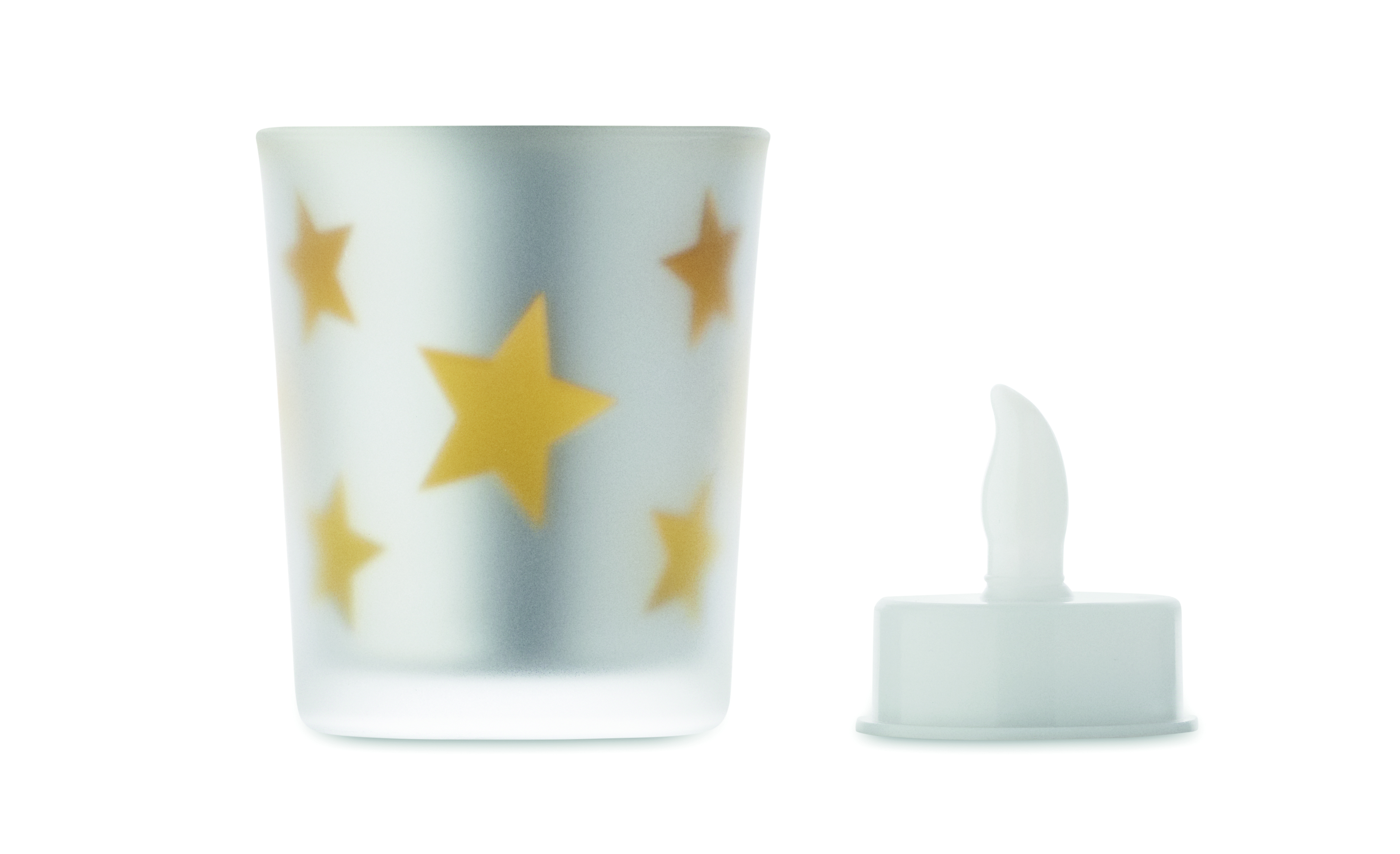 Świeczka LED typu tealight z PP w szklanym słoiku. w zestawie 1 bateria CR2032.
