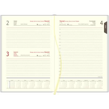 Układ: | 1 dzień na 1 stronie, sobota i niedziela na 1 stronie, przed każdym miesiącem terminarz miesięczny |