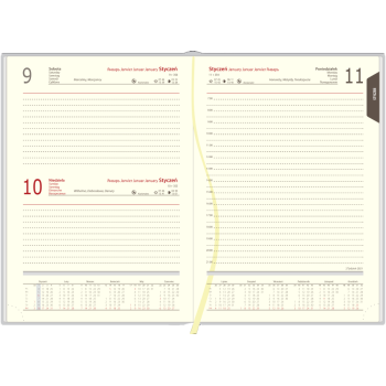 Układ: | 1 dzień na 1 stronie, sobota i niedziela na 1 stronie, przed każdym miesiącem terminarz miesięczny |