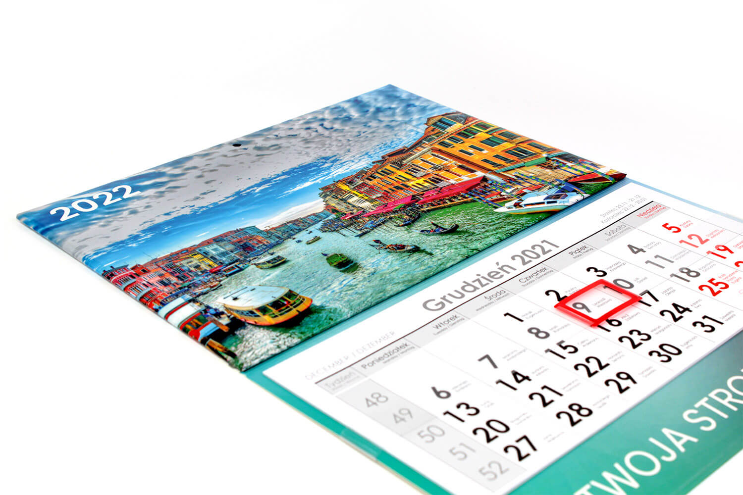 Inne: | miejsce na reklamę między kalendariami, czerwone okienko |