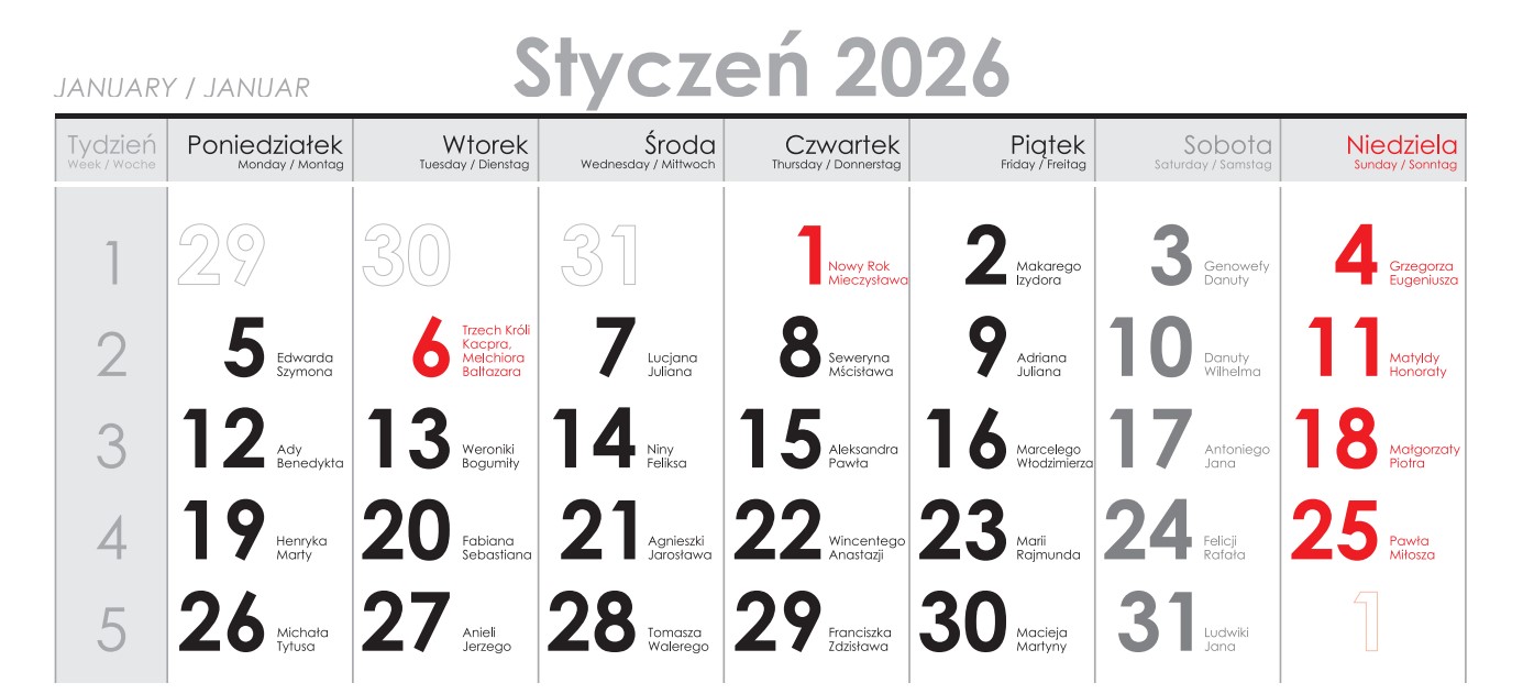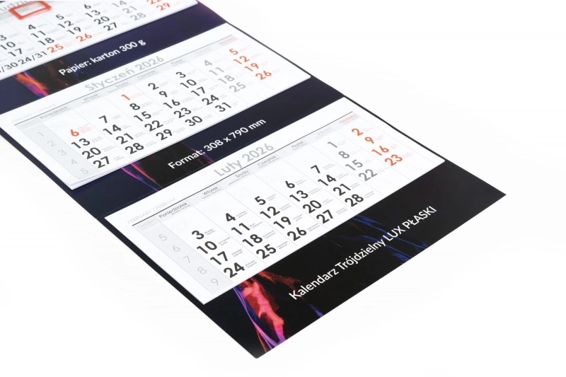 Kolory okienek (na kalendarium) do wyboru: czerwone, zielone, niebieskie, czarne, żółte, pomarańczowe, fioletowe, różowe, złote, srebrne