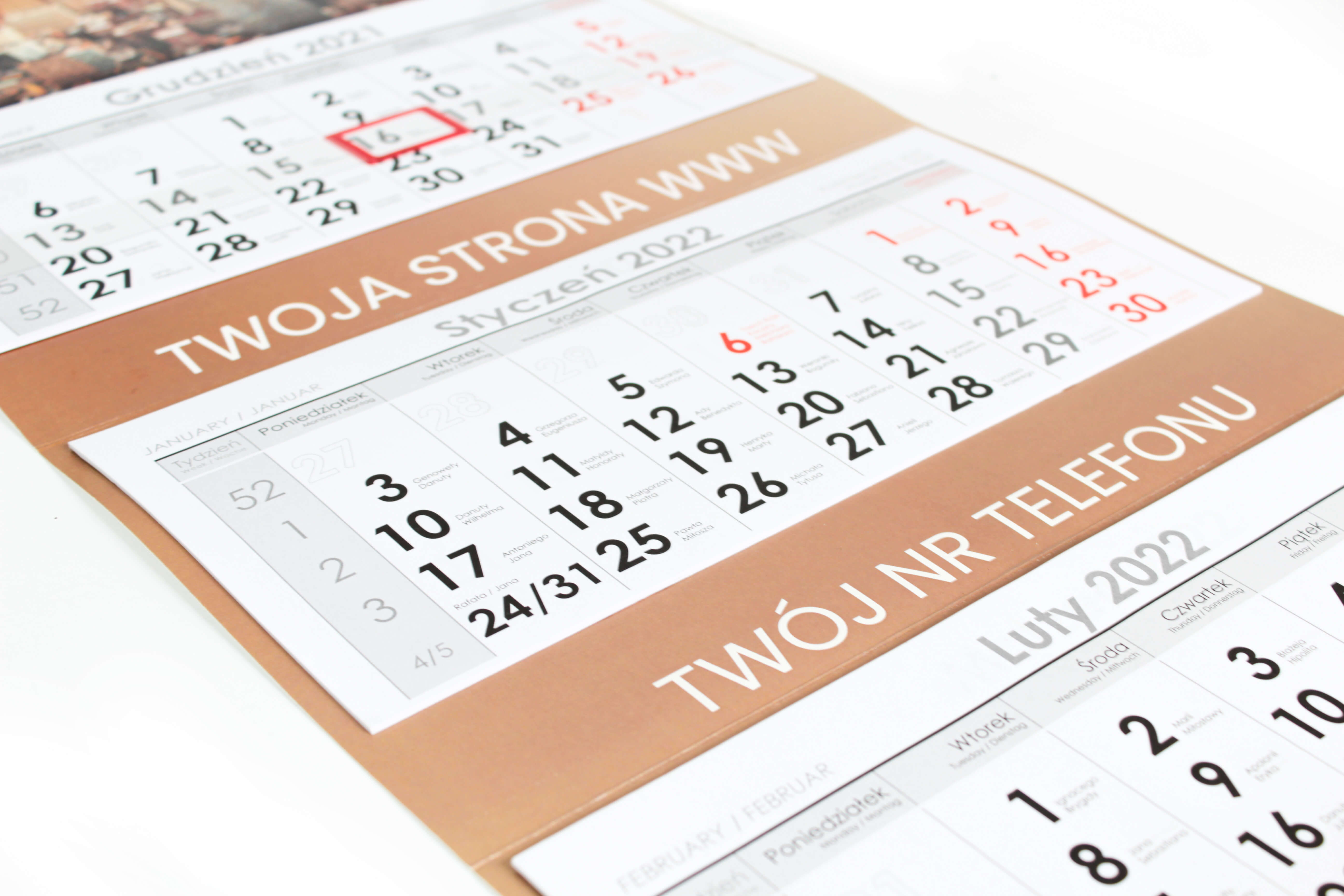 Inne: | miejsce na reklamę między kalendariami, czerwone okienko |
