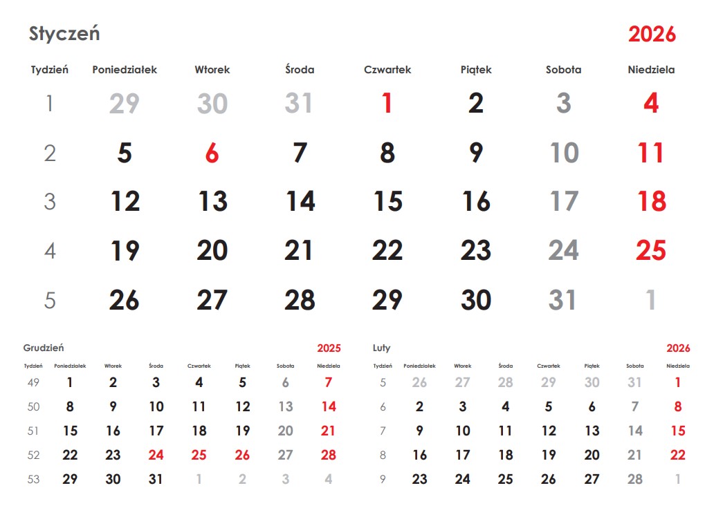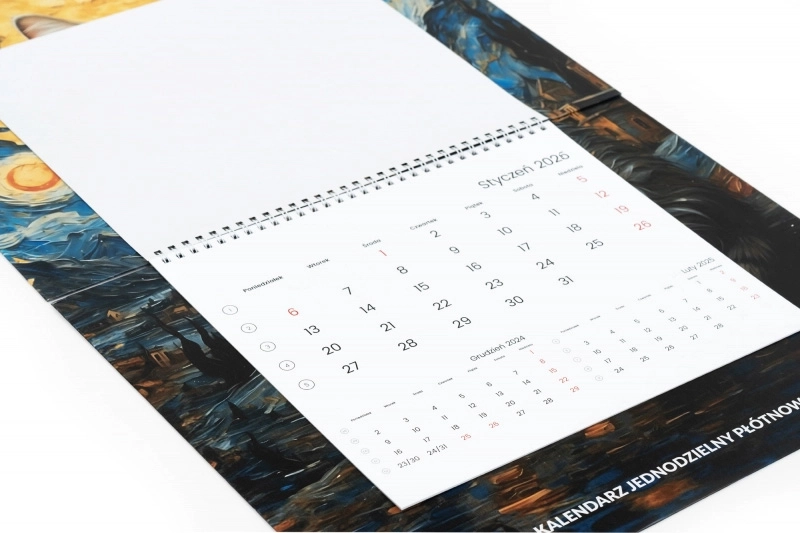 | Kalendaria: | 230 x 270 mm, offset 80 g, okładka papier kalandrowany |