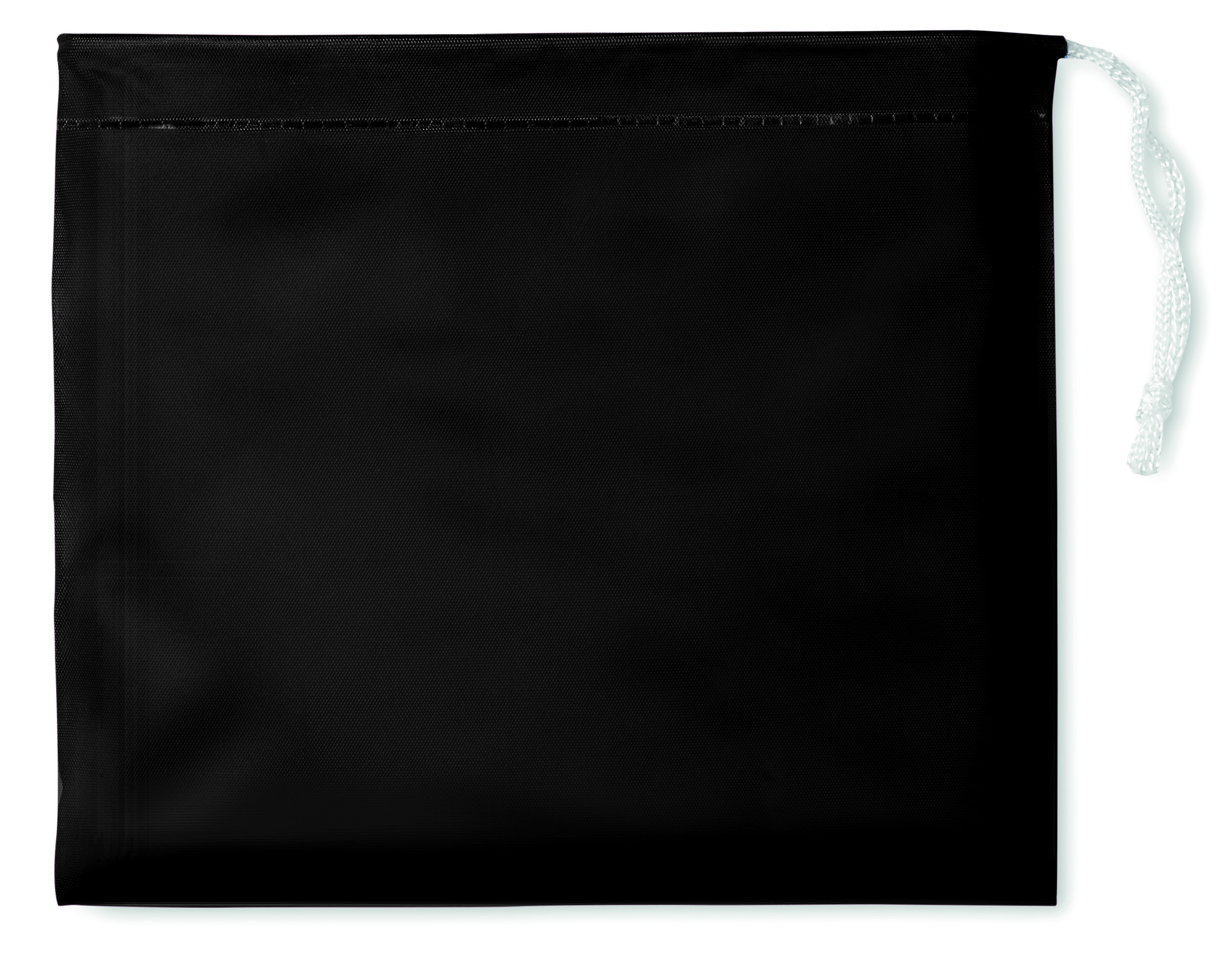 Składane, plastikowe poncho przeciwdeszczowe z kapturem. Pakowane w etui.