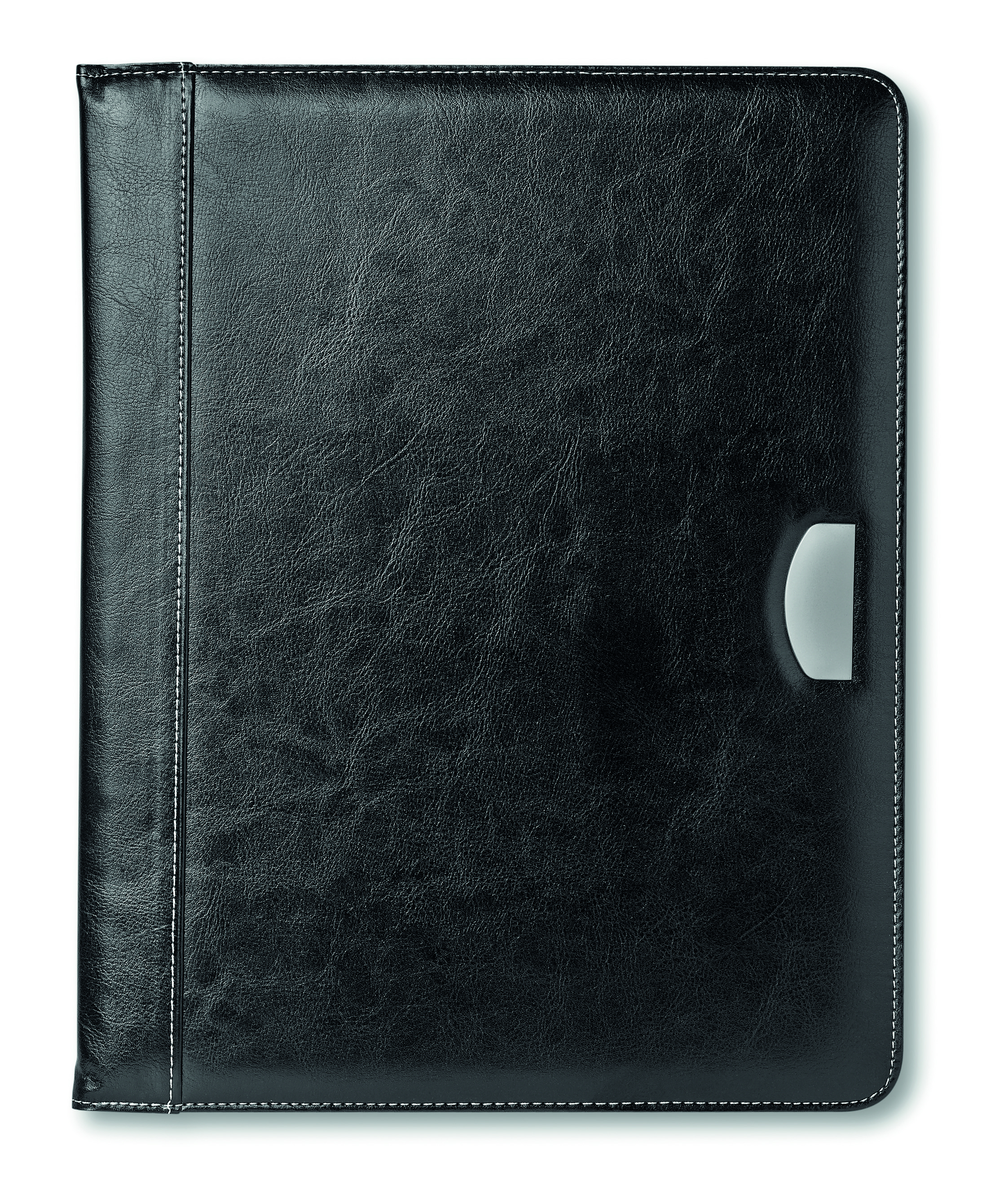 20-kartkowy notes A4 z materiału PU i metalową płytką do nadruku logo.