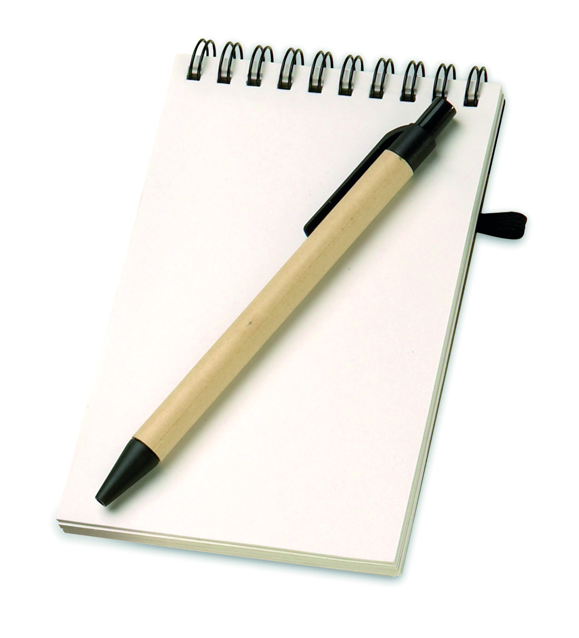 Notes A6 z papieru z recyklingu z dopasowanym długopisem. Podwójna spirala. 140 czystych stron z papieru z recyklingu (70 kartek). Dopasowany długopis z kartonu z recyklingu i biodegradowalnego plastiku. Niebieski tusz. Elastyczny pasek zamykający i uchwyt na długopis. FSC®-certified | FSC MIX, P7.1, FSC-C213206