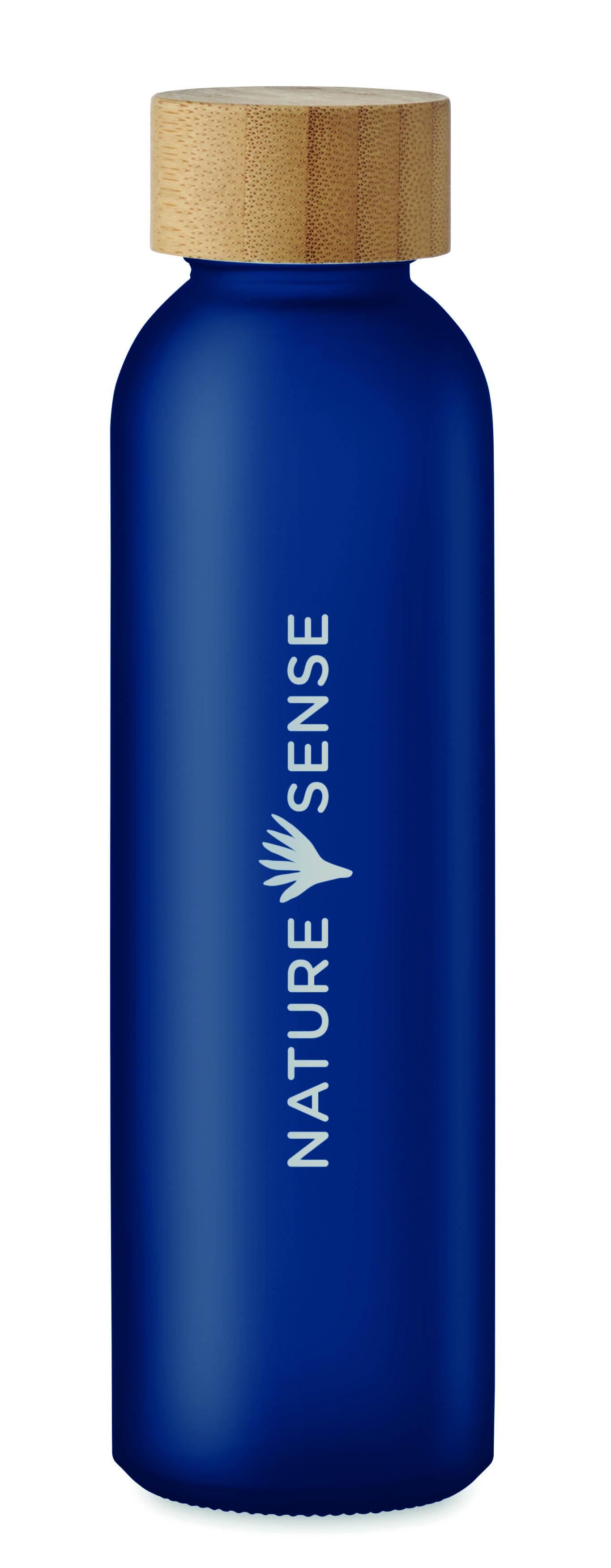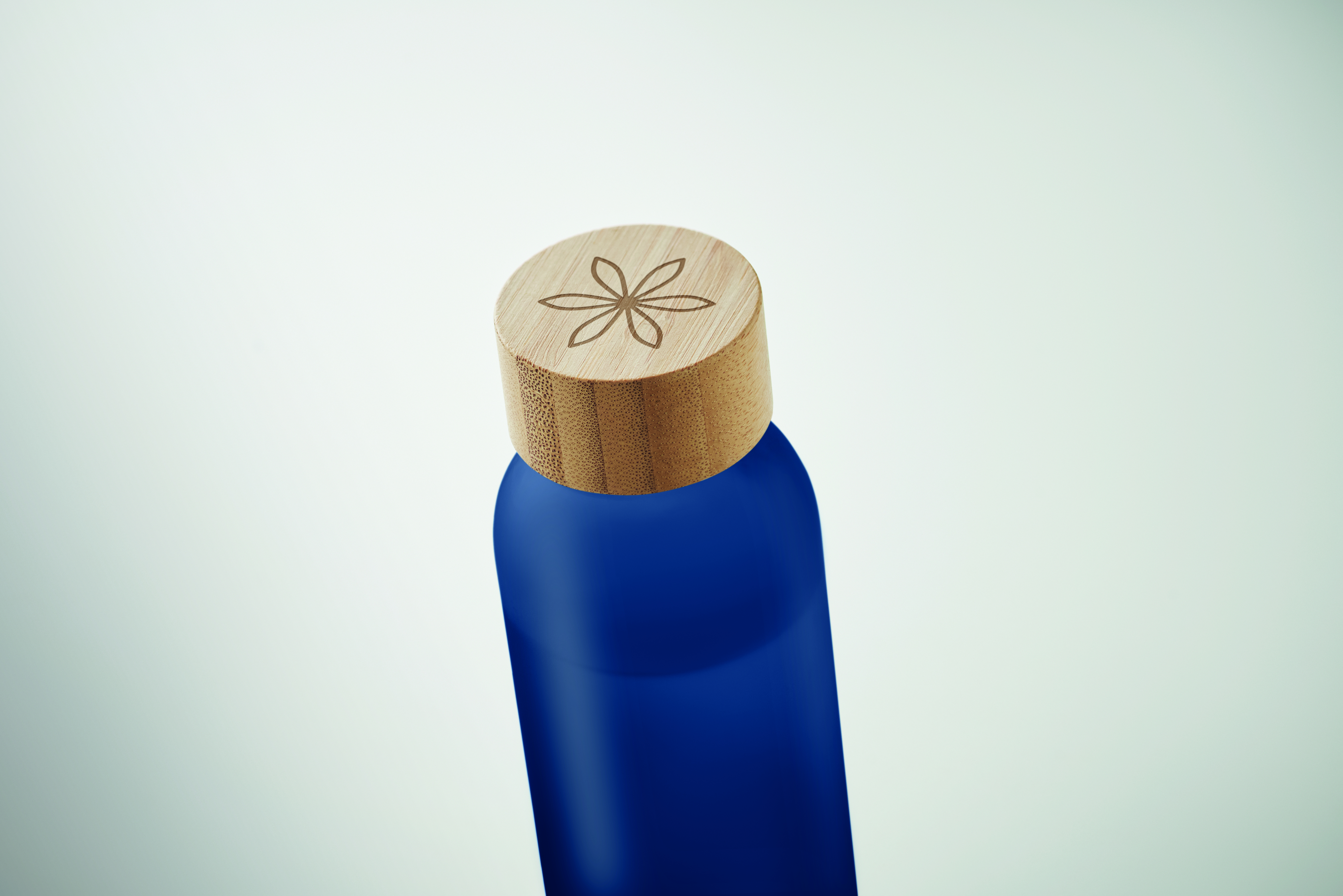 Szklana butelka z matowym wykończeniem i bambusową zakrętką. Szczelna. Pojemność: 500 ml. Bambus jest produktem naturalnym, dlatego mogą występować niewielkie różnice w kolorze i rozmiarze poszczególnych elementów, co może mieć wpływ na ostateczny efekt zdobienia.