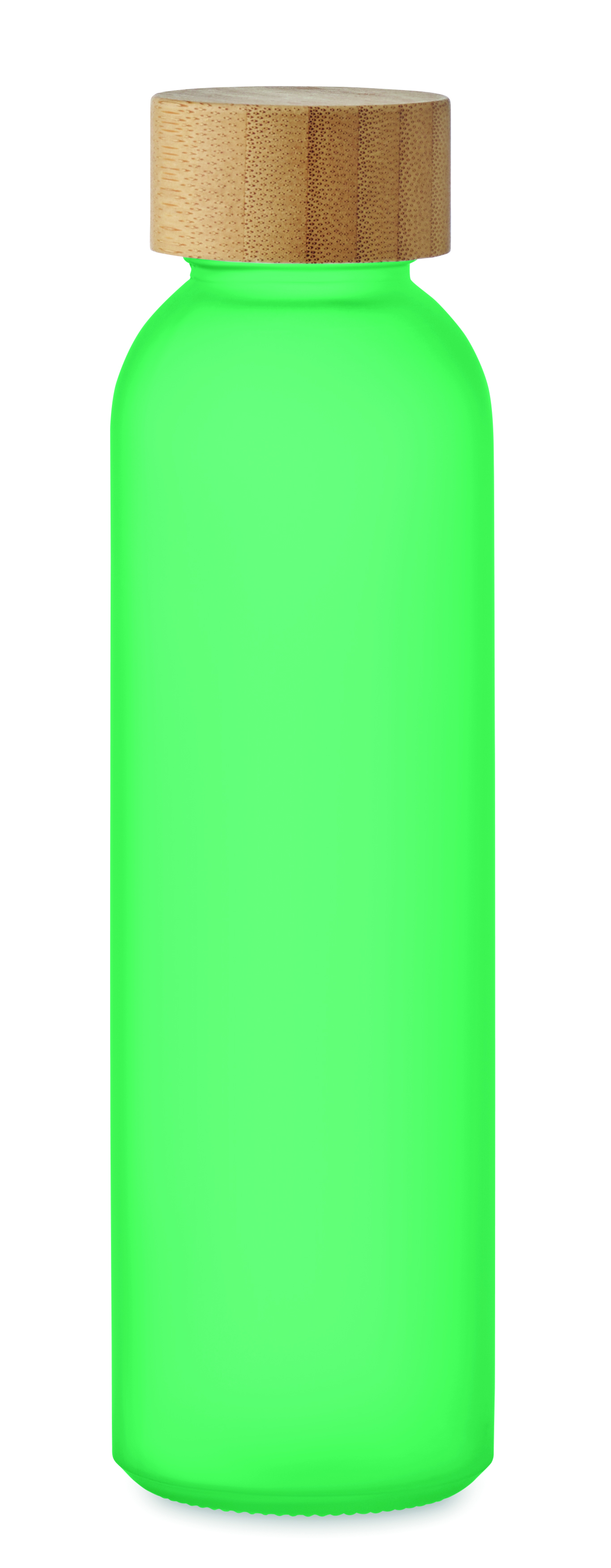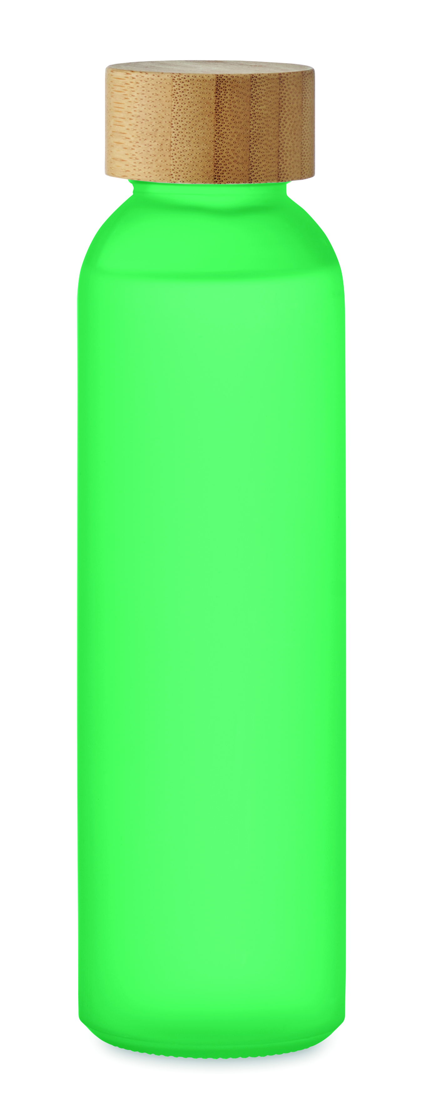 Szklana butelka z matowym wykończeniem i bambusową zakrętką. Szczelna. Pojemność: 500 ml. Bambus jest produktem naturalnym, dlatego mogą występować niewielkie różnice w kolorze i rozmiarze poszczególnych elementów, co może mieć wpływ na ostateczny efekt zdobienia.
