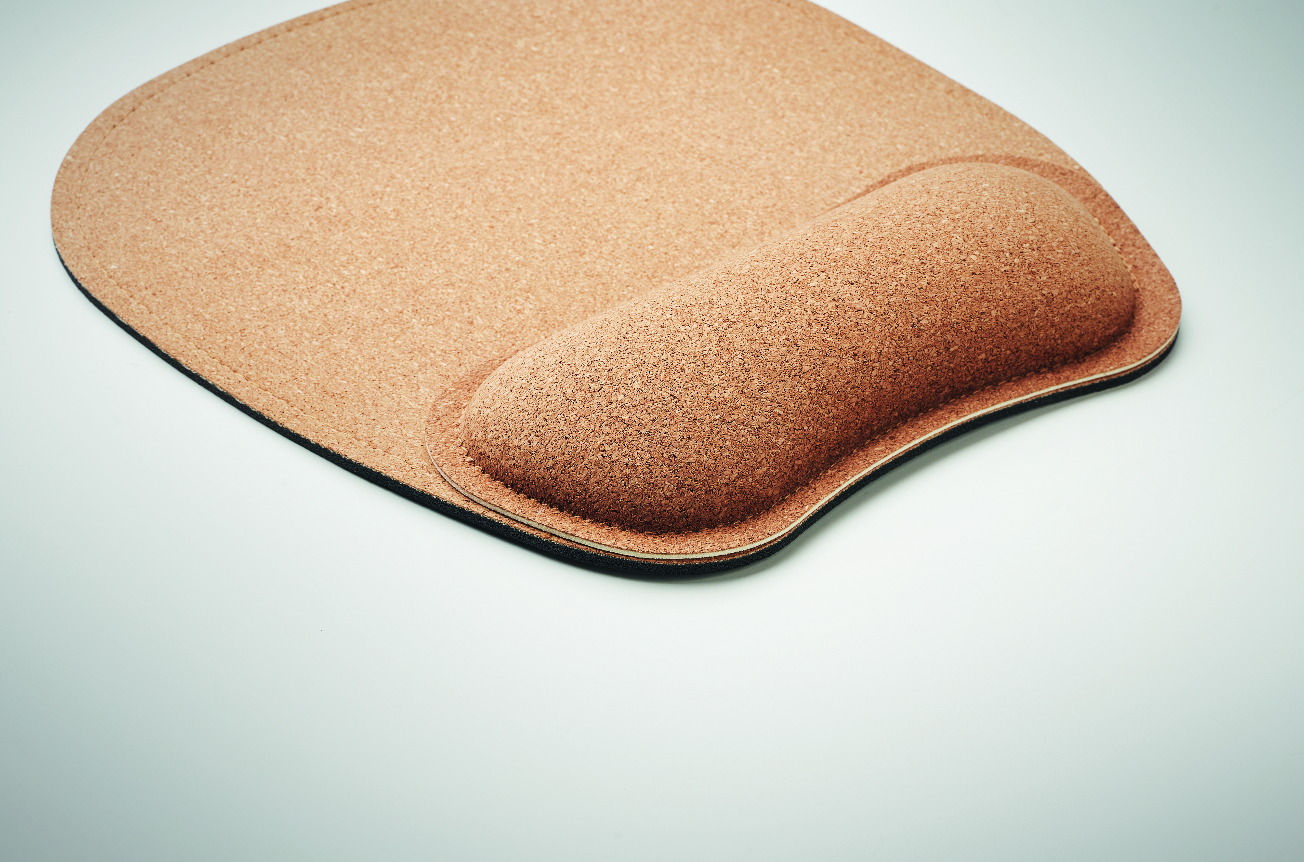 Korkowa ergonomiczna podkładka pod mysz z podpórką pod nadgarstek. Posiada antypoślizgową gumową podstawę.