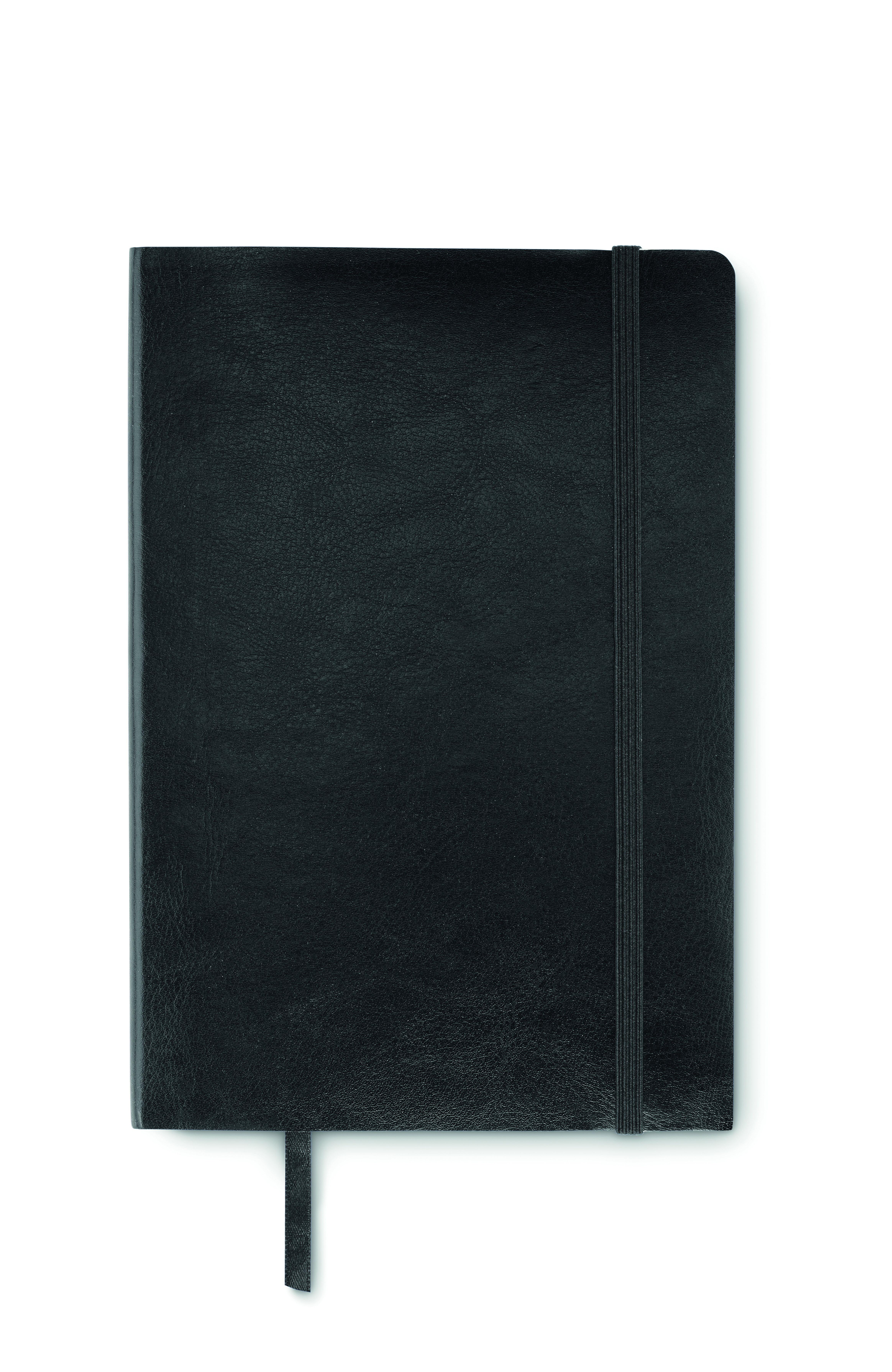 Notatnik A5 z miękką okładką z PU z recyklingu. 160 stron w linie z papieru z recyklingu (80 kartek). Dopasowany elastyczna opaska i zakładka z tasiemki. Rozszerzana kieszeń wewnętrzna z tyłu. FSC®-certified | FSC MIX CREDIT, P7.1, FSC-C213206
