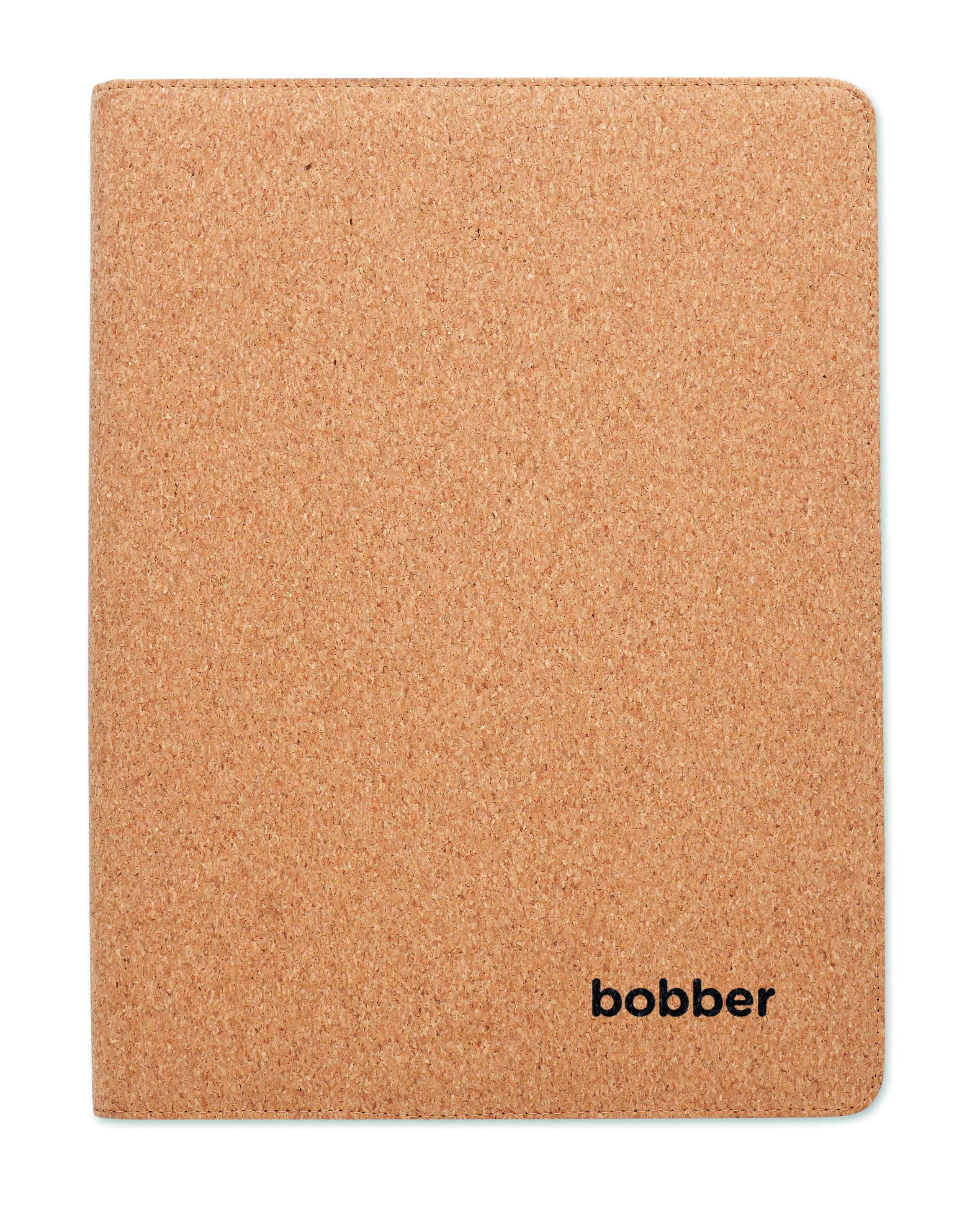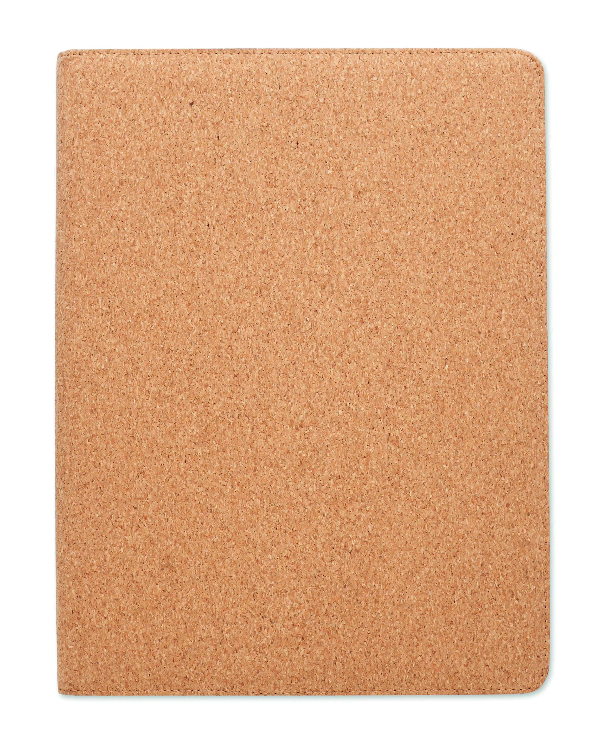 Teczka konferencyjna A4 z korka. Notatnik A4 wielokrotnego użytku. 30 arkuszy papieru z recyklingu. Dopasowany uchwyt na długopis i pióro. 2 kieszonki na karty i jedna duża przegroda.