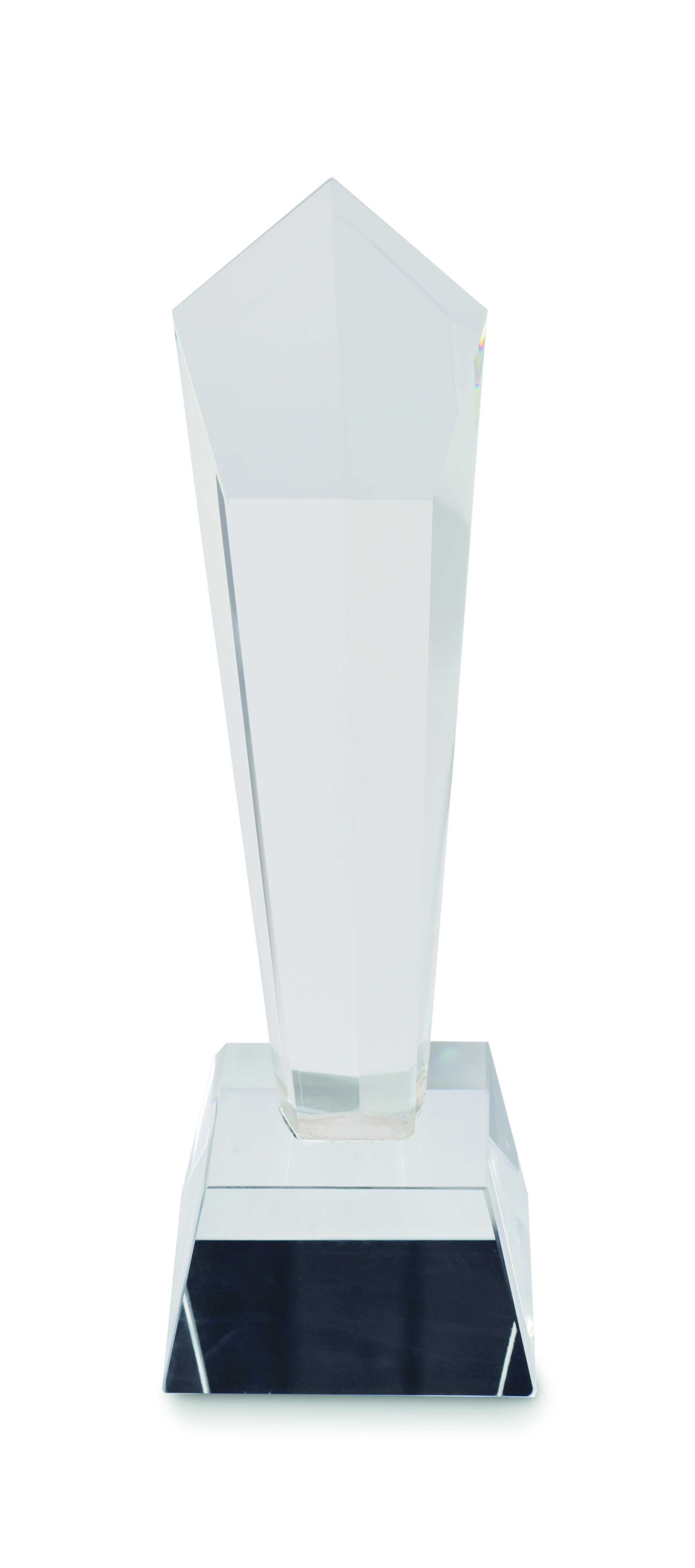 Kryształowa statuetka lub trofeum. Zapakowana w pudełko upominkowe.
