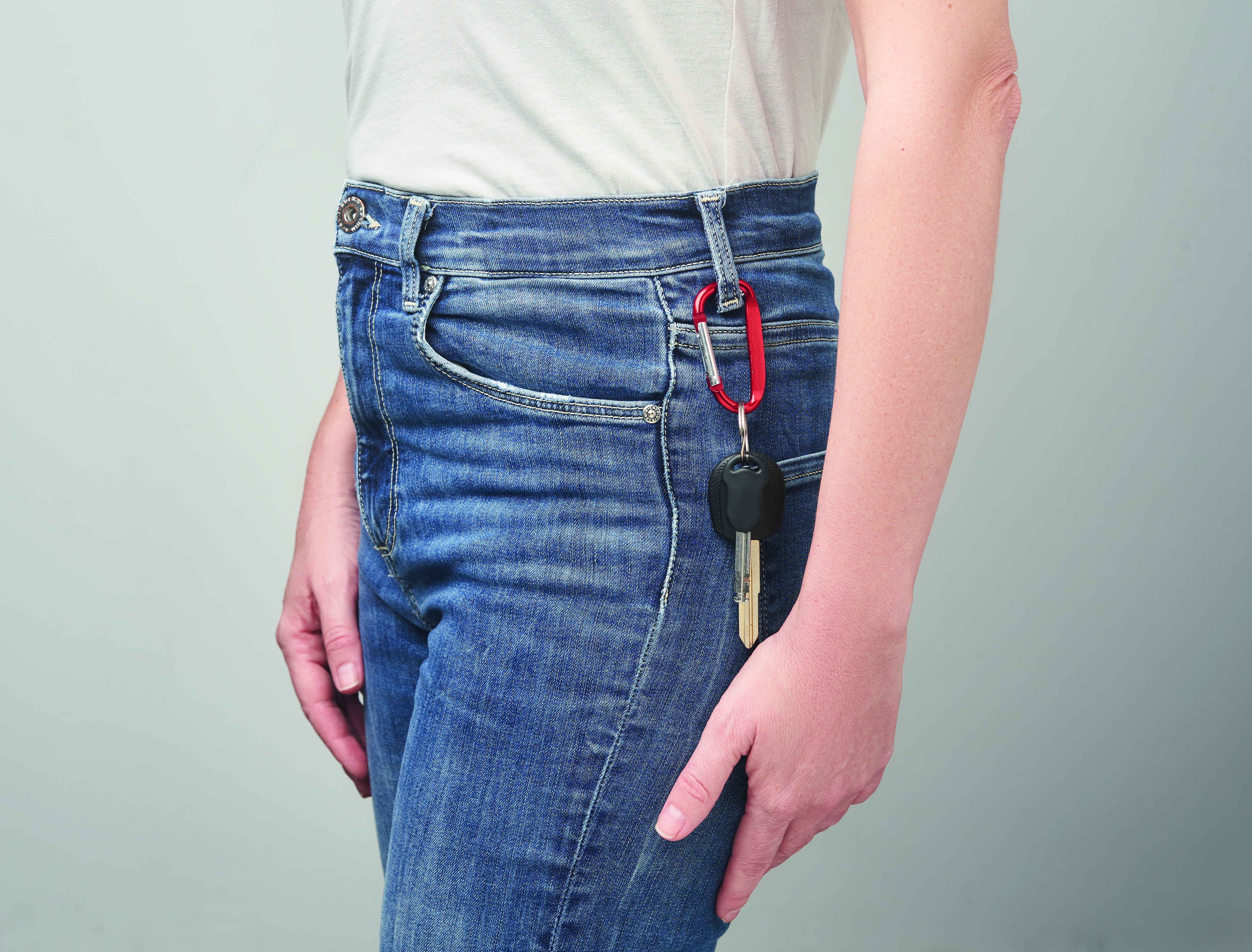 Aluminiowy karabińczyk do zawieszenia pokrowca na butelkę lub kluczy. Karabińczyk nie jest przeznaczony do wspinaczki (do użytku nieprofesjonalnego).