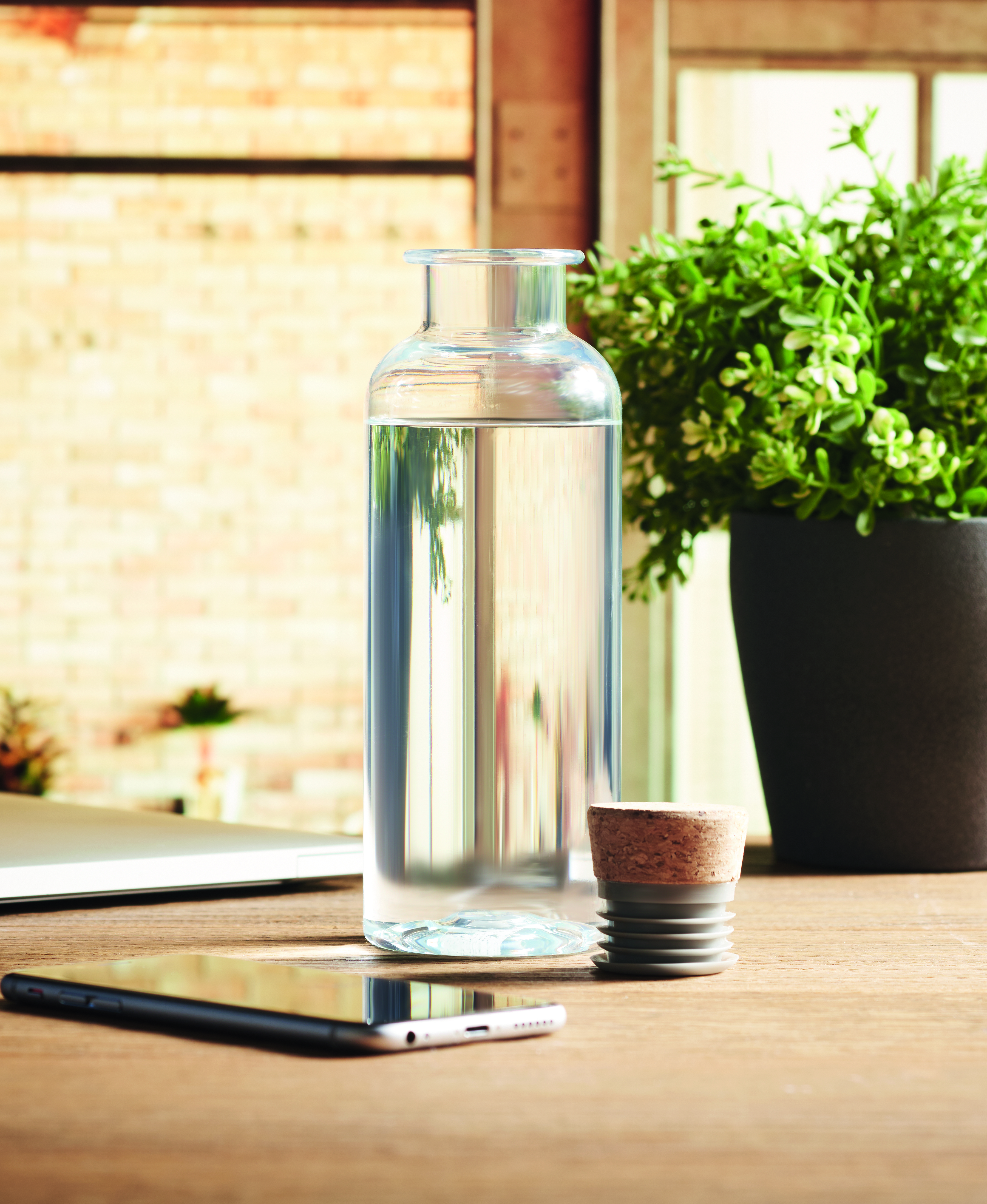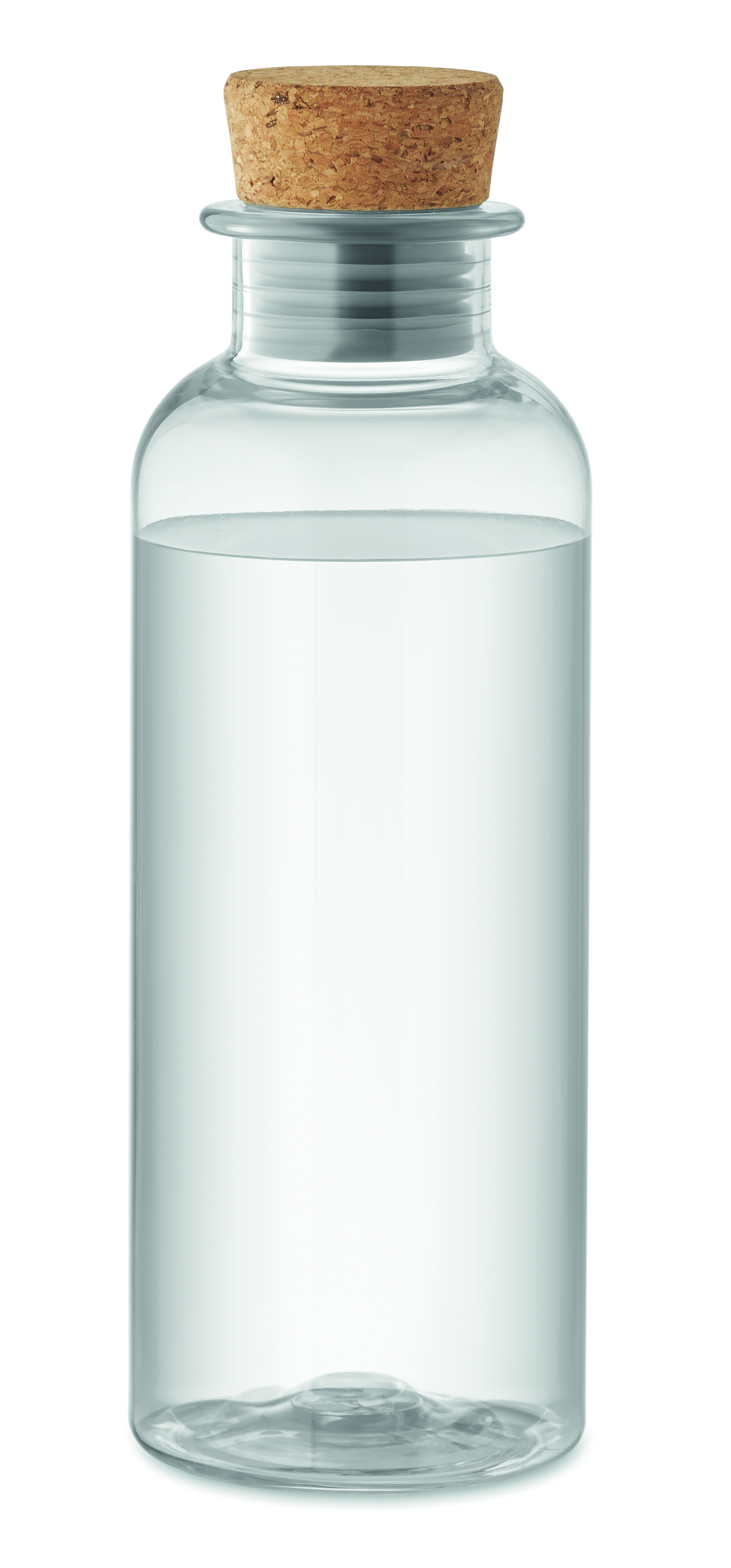 Butelka do picia z Tritanu Renew™ z korkową pokrywką. Pojemność: 500 ml. Ten produkt powstał w 50% z odpadów plastikowych przy użyciu certyfikowanego bilansu masy ISCC.