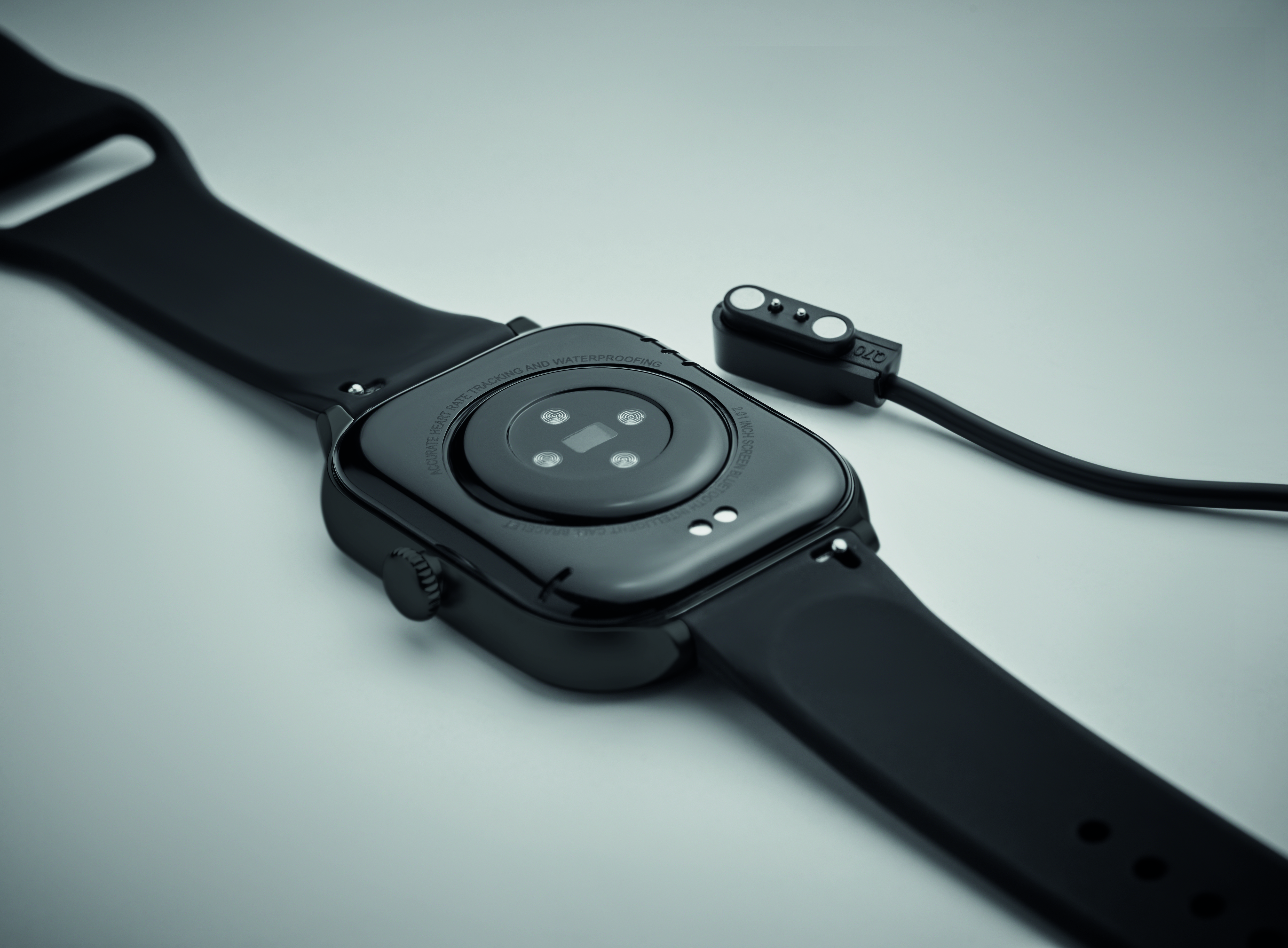 Bezprzewodowy smartwatch 5.4 ze stopu cynku z silikonowym paskiem. Dotykowy wyświetlacz LCD o przekątnej 2,01 cala. Akumulator Li-Pol 180 mAh. Wymaga pobrania bezpłatnej aplikacji (Fitpro dostępnej w systemach iOS i Android).