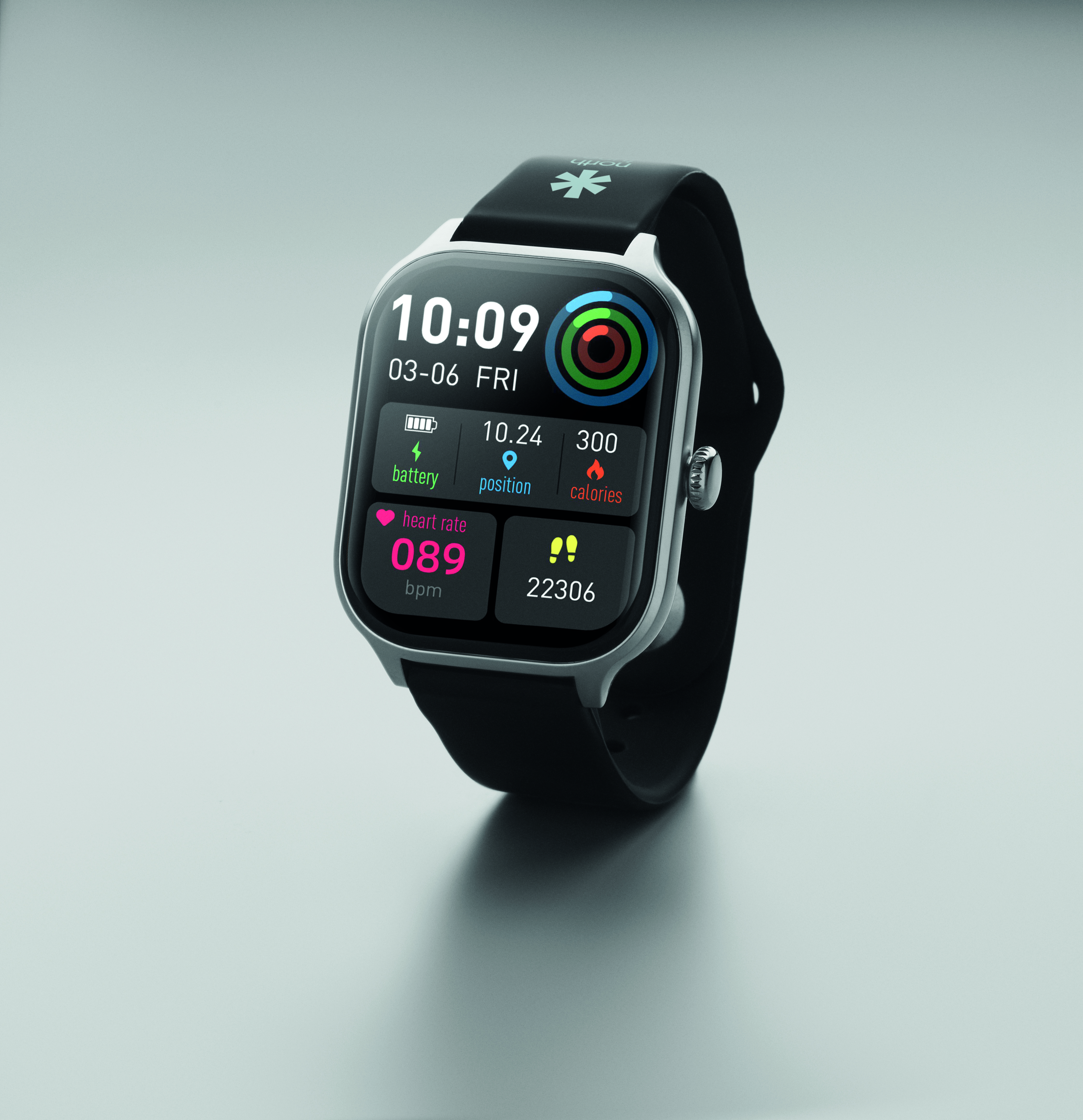 Bezprzewodowy smartwatch 5.4 ze stopu cynku z silikonowym paskiem. Dotykowy wyświetlacz LCD o przekątnej 2,01 cala. Akumulator Li-Pol 180 mAh. Wymaga pobrania bezpłatnej aplikacji (Fitpro dostępnej w systemach iOS i Android).