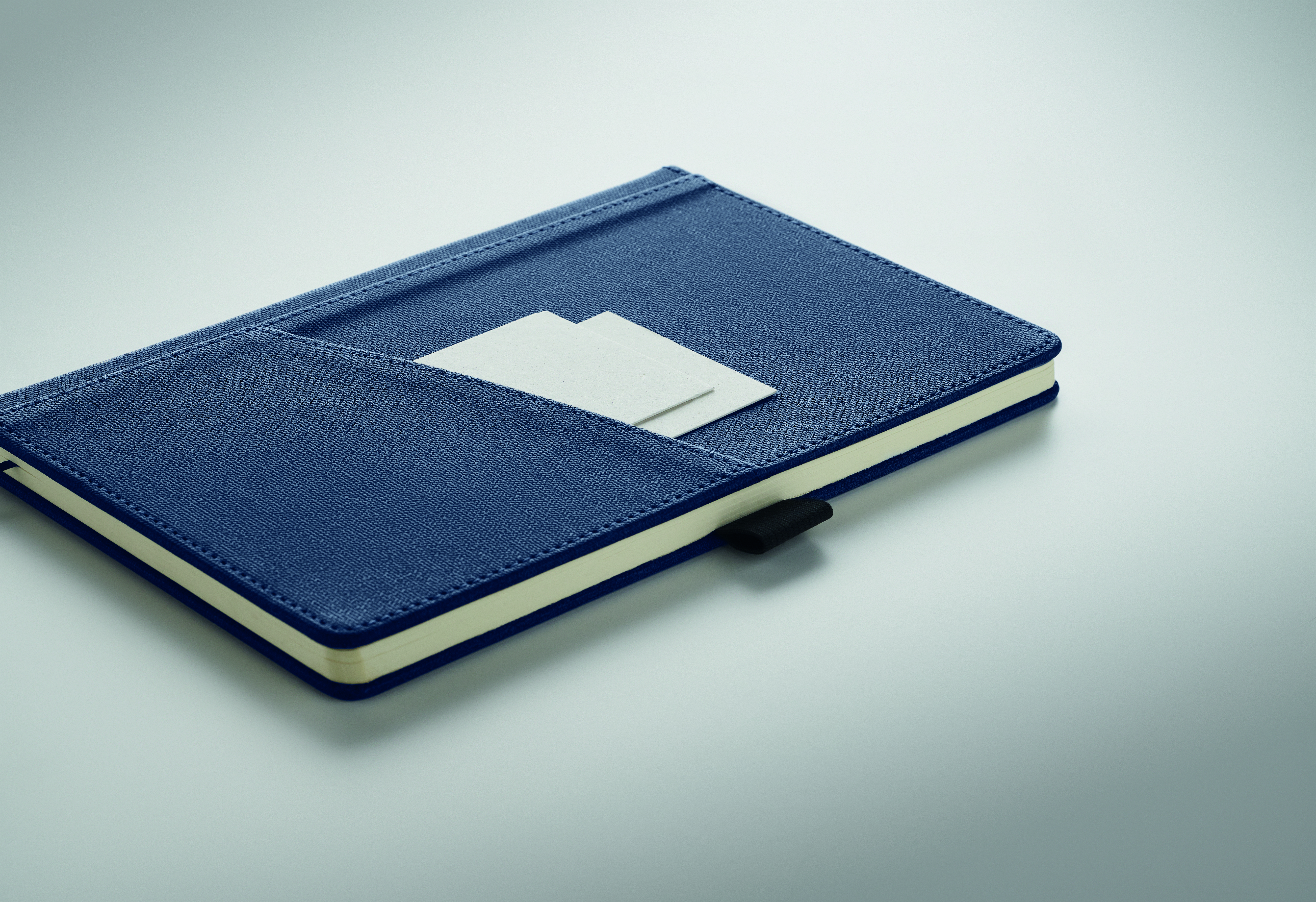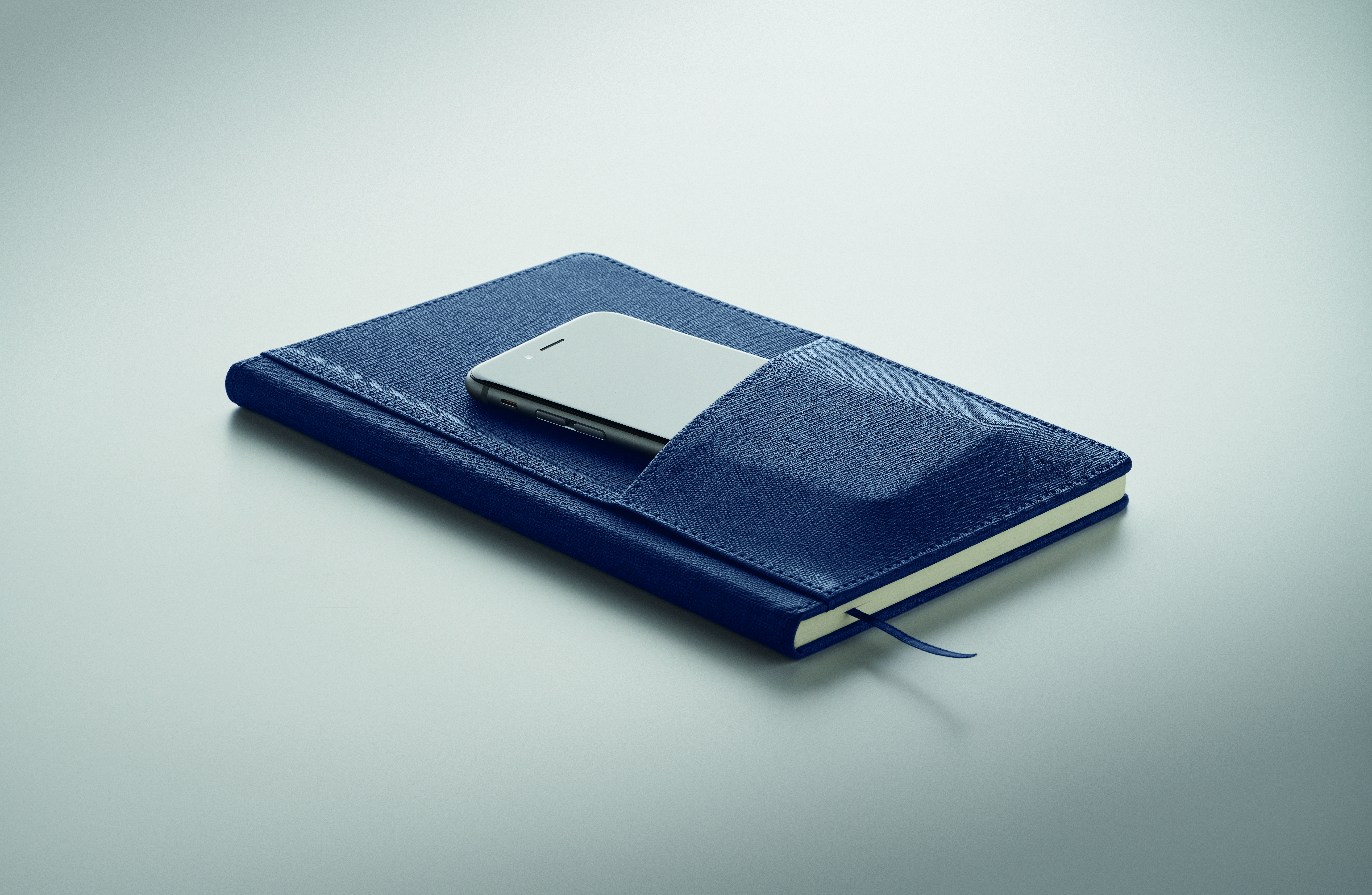 Notatnik A5 w twardej okładce z PU z kieszenią na telefon z przodu. Obwoluta. 160 stron w linie (80 kartek) z papieru z recyklingu. Dopasowana zakładka wstążkowa. FSC®-certified | FSC MIX CREDIT, P7.1, FSC-C213206