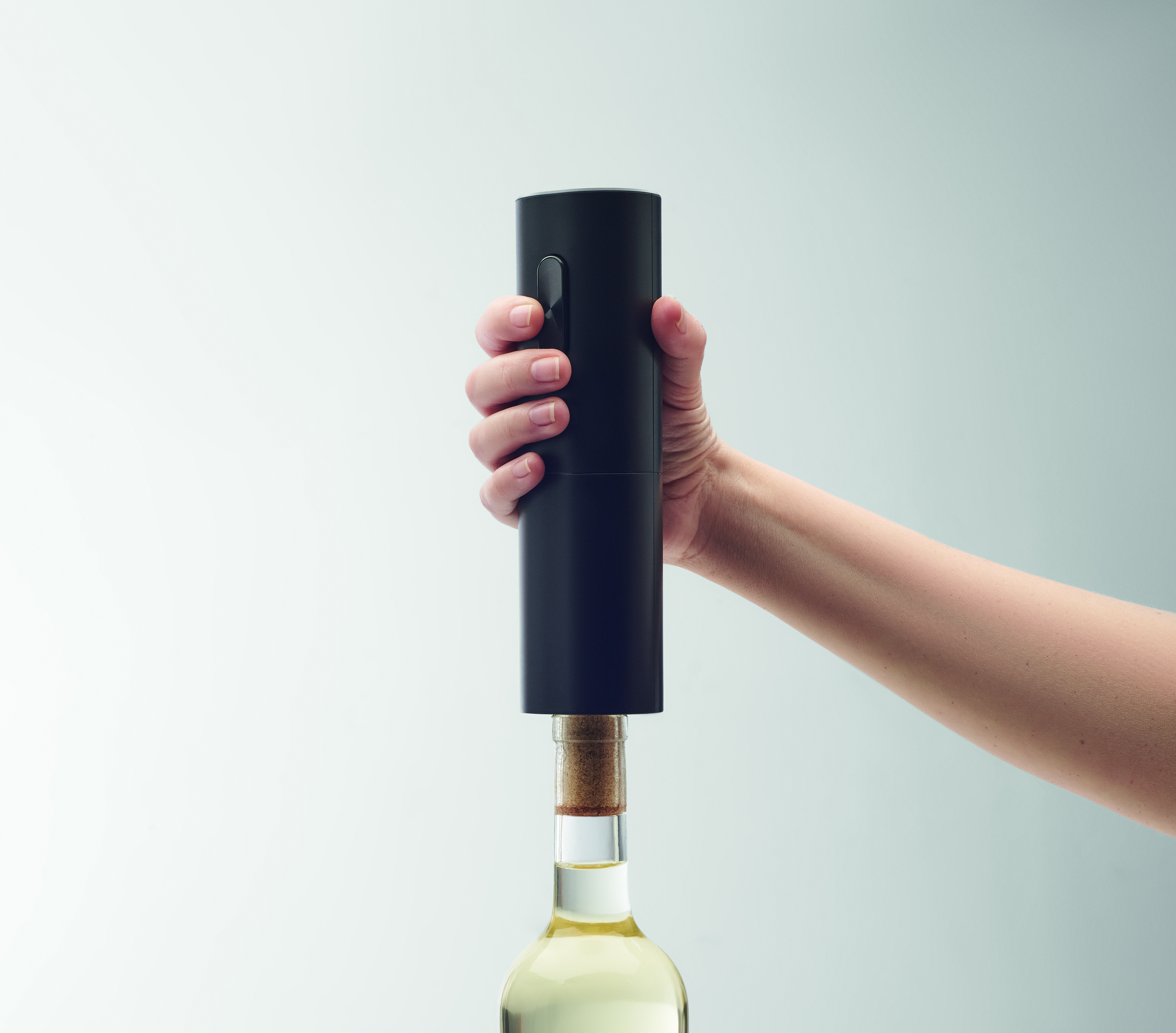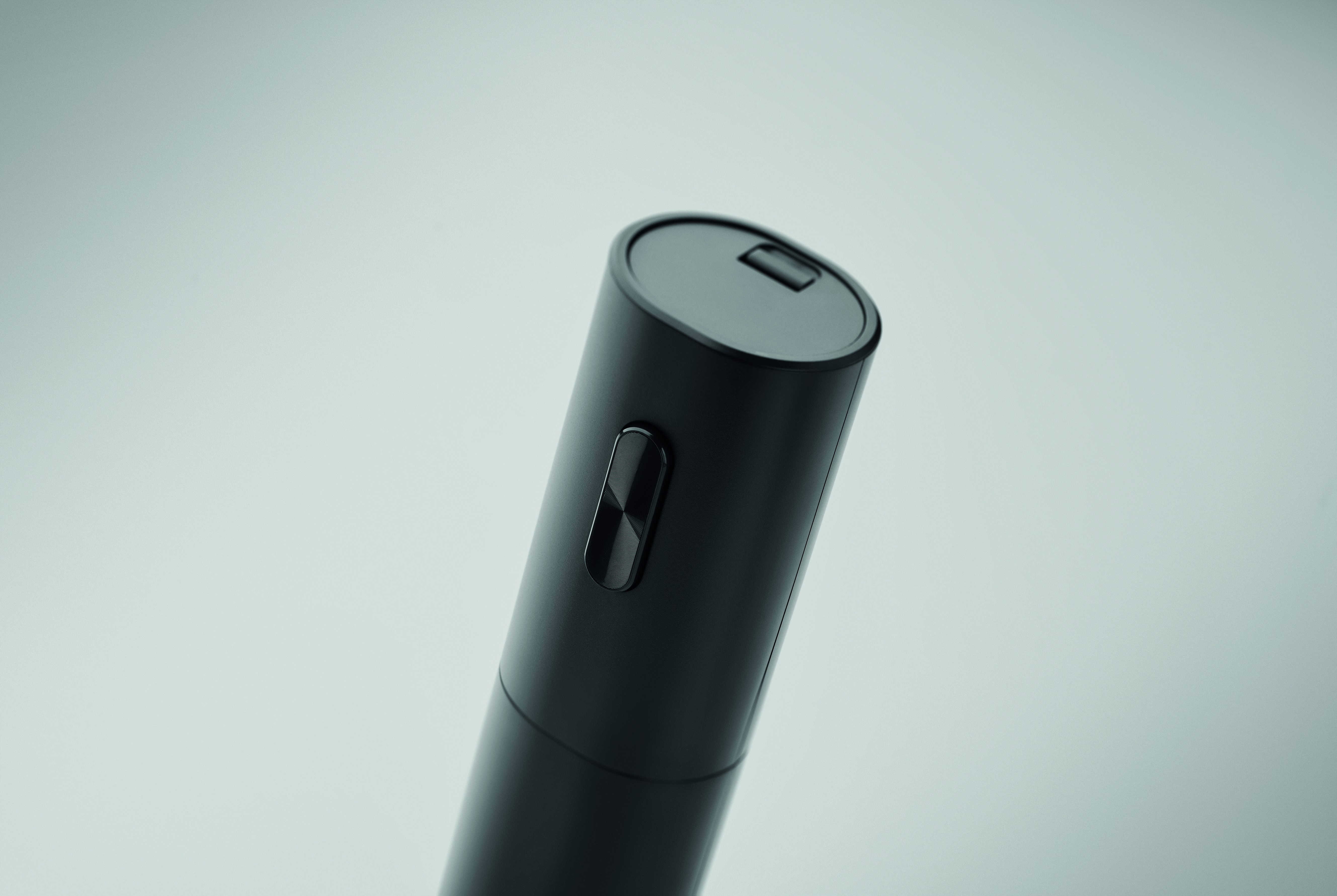 Elektryczny otwieracz do wina w obudowie ABS z czarnym matowym wykończeniem. 4 baterie AAA nie są dołączone.