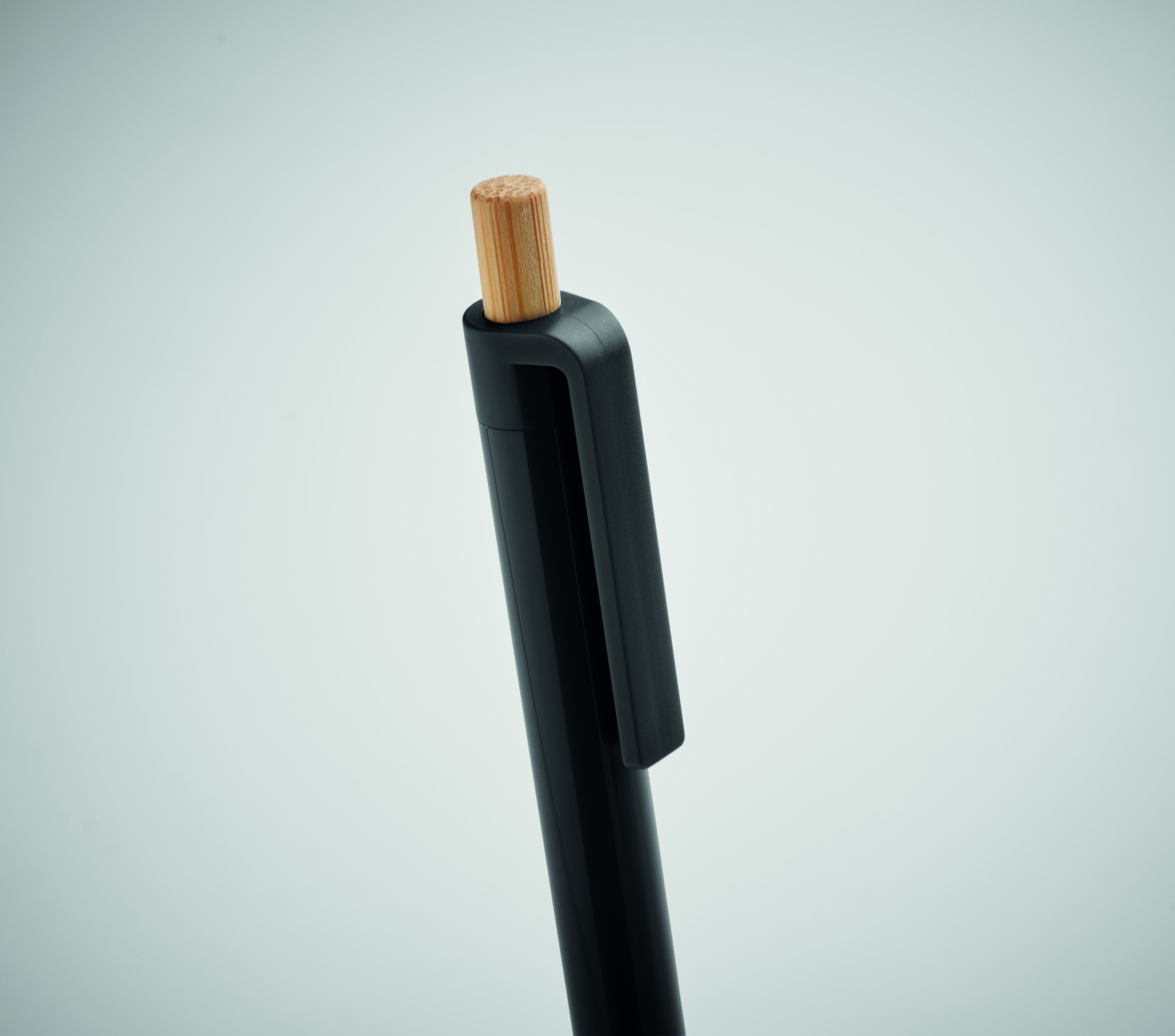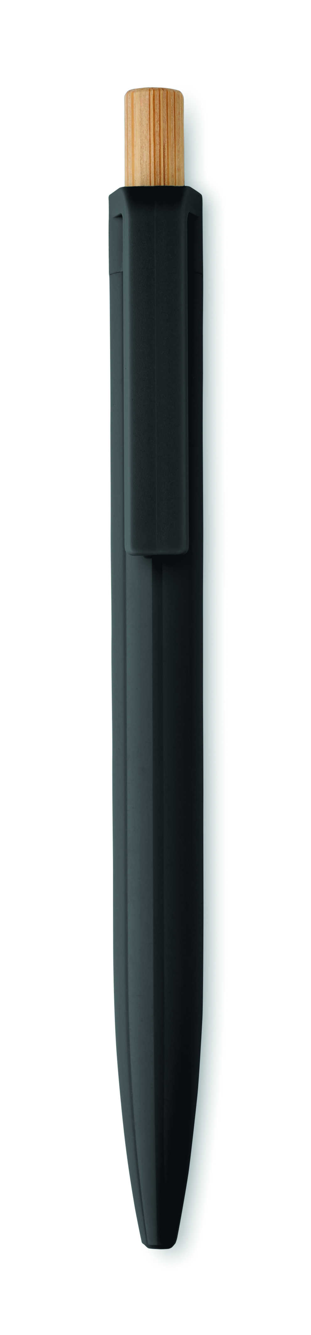 Długopis z bambusowym przyciskiem wykonany z ABS pochodzącego z recyklingu. Niebieski tusz.