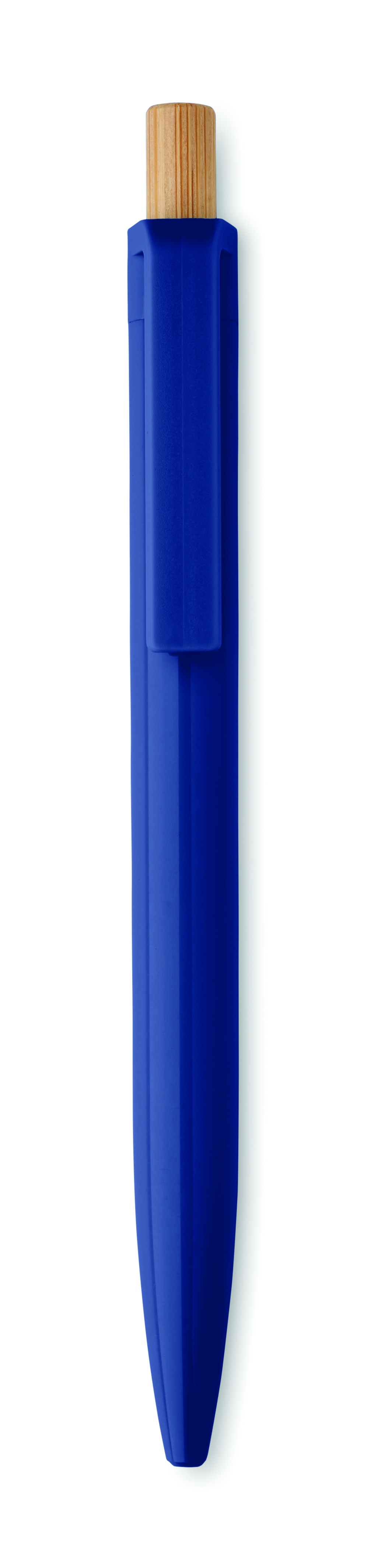 Długopis z bambusowym przyciskiem wykonany z ABS pochodzącego z recyklingu. Niebieski tusz.