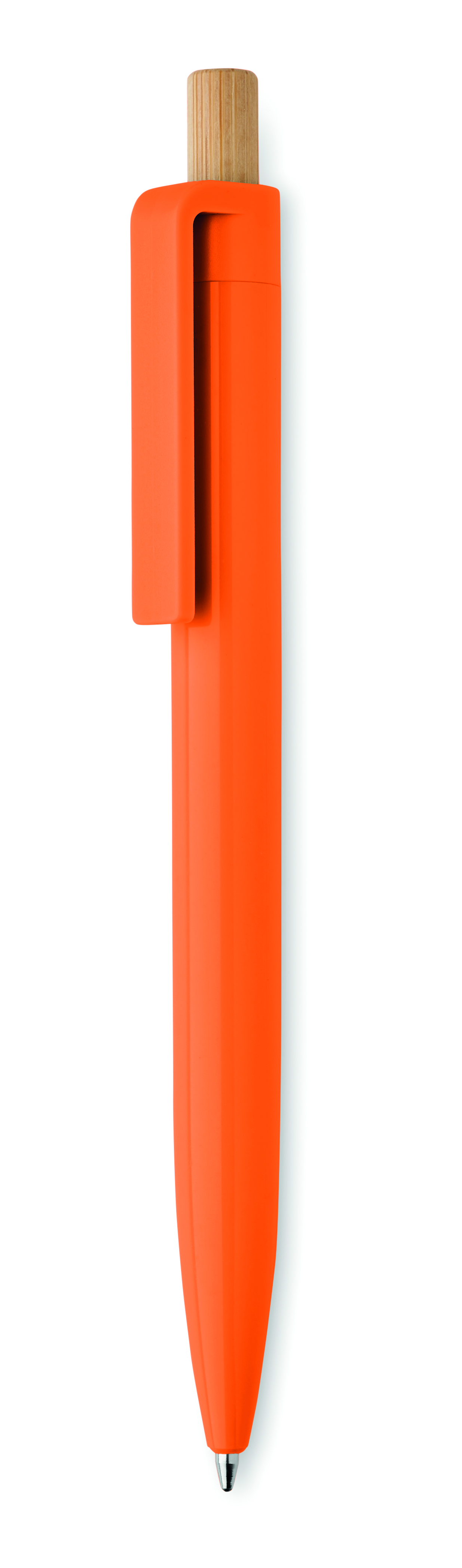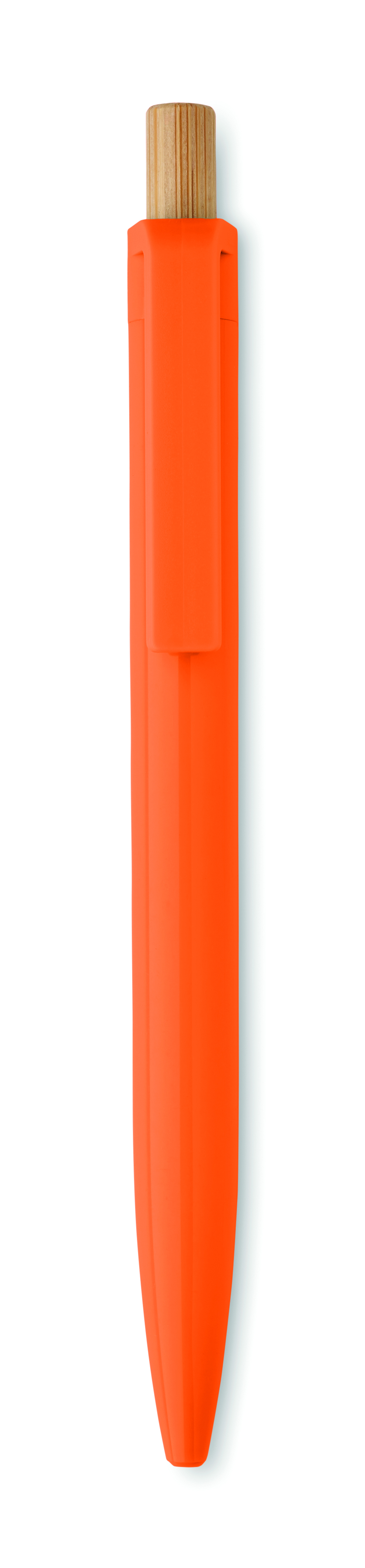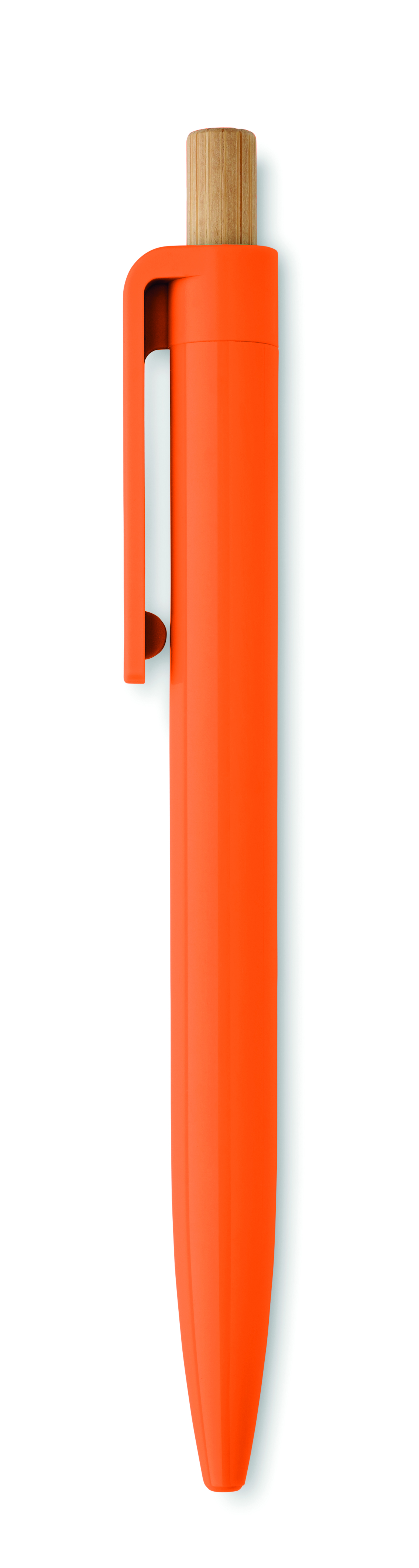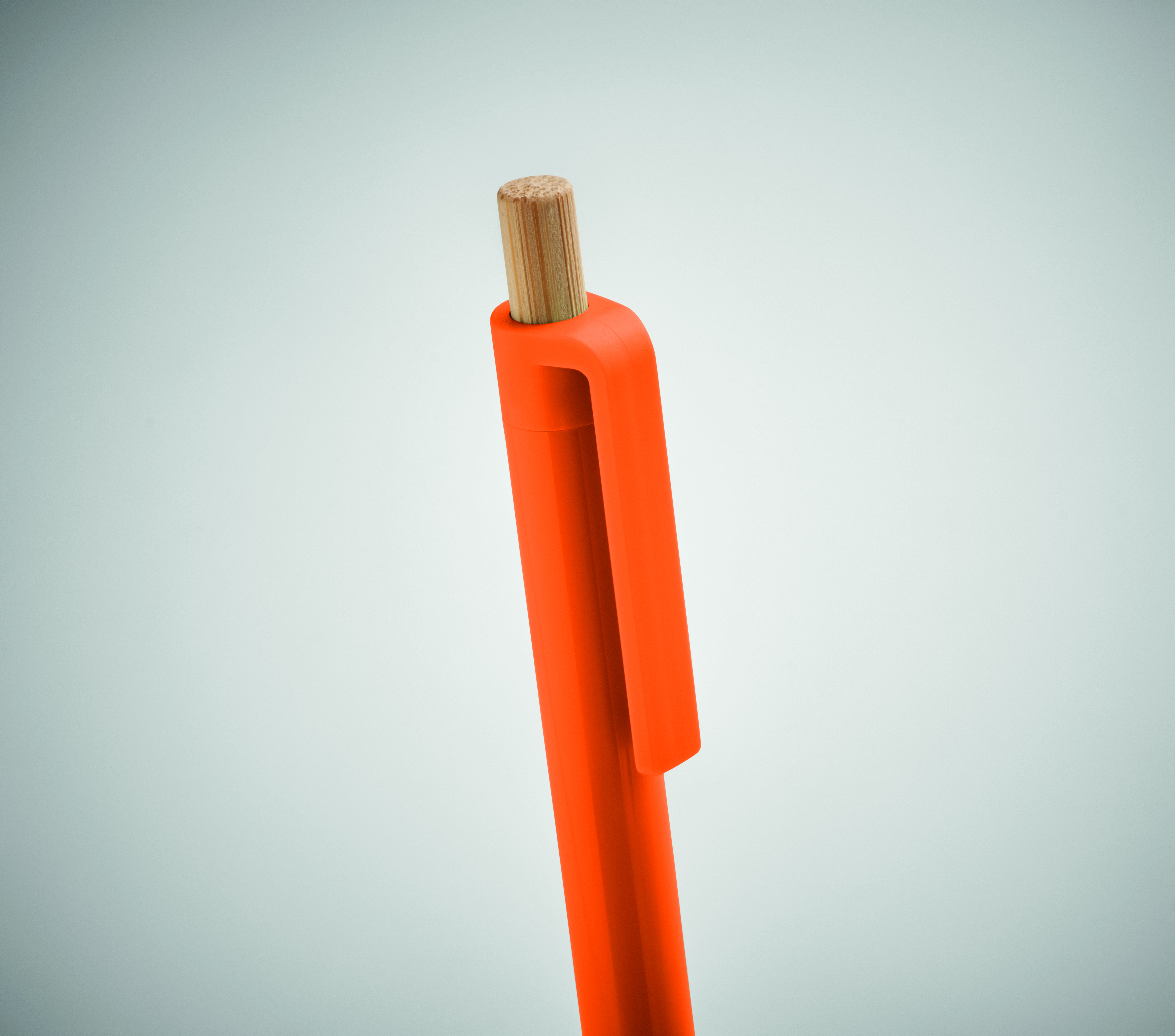Długopis z bambusowym przyciskiem wykonany z ABS pochodzącego z recyklingu. Niebieski tusz.