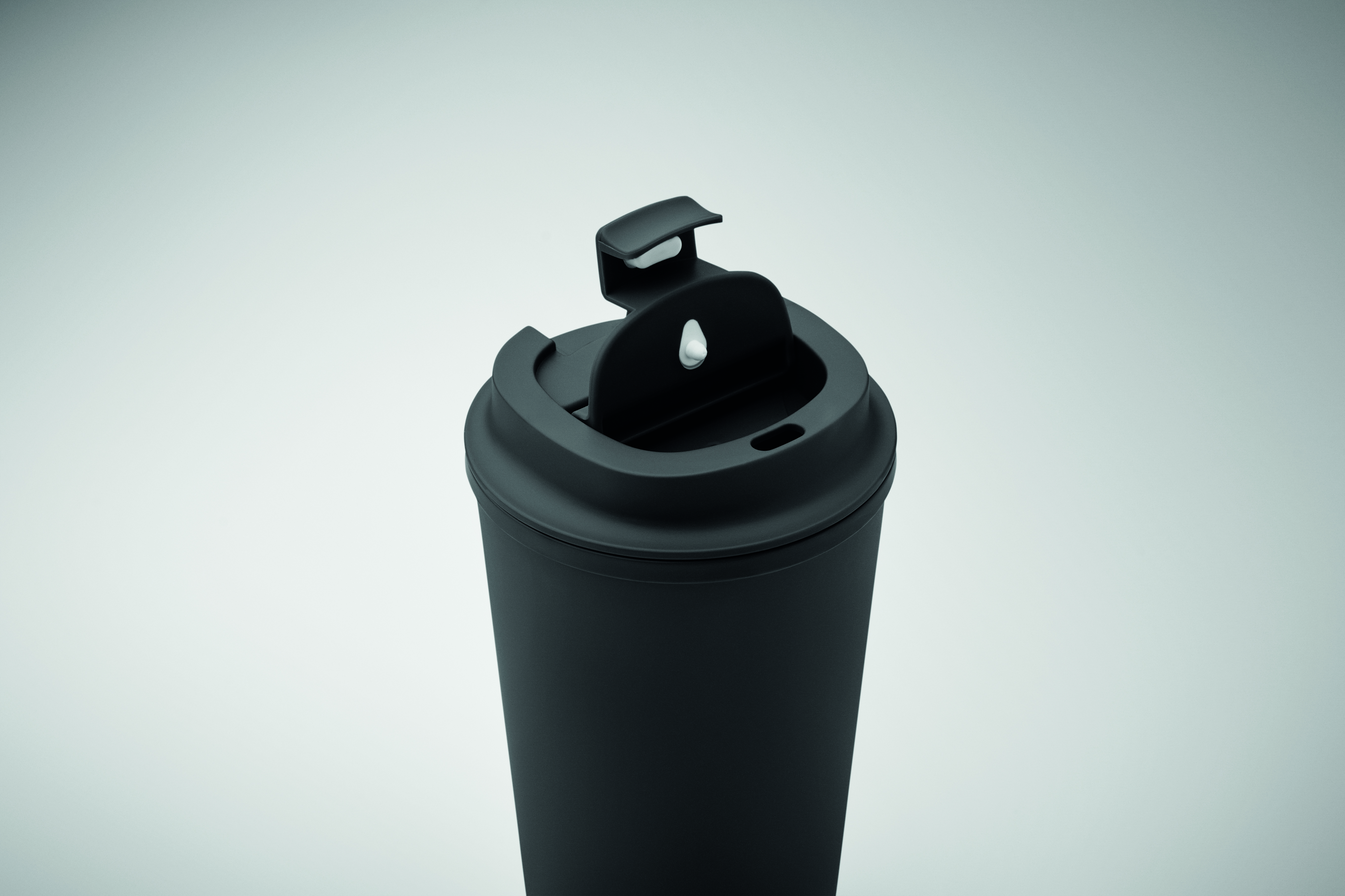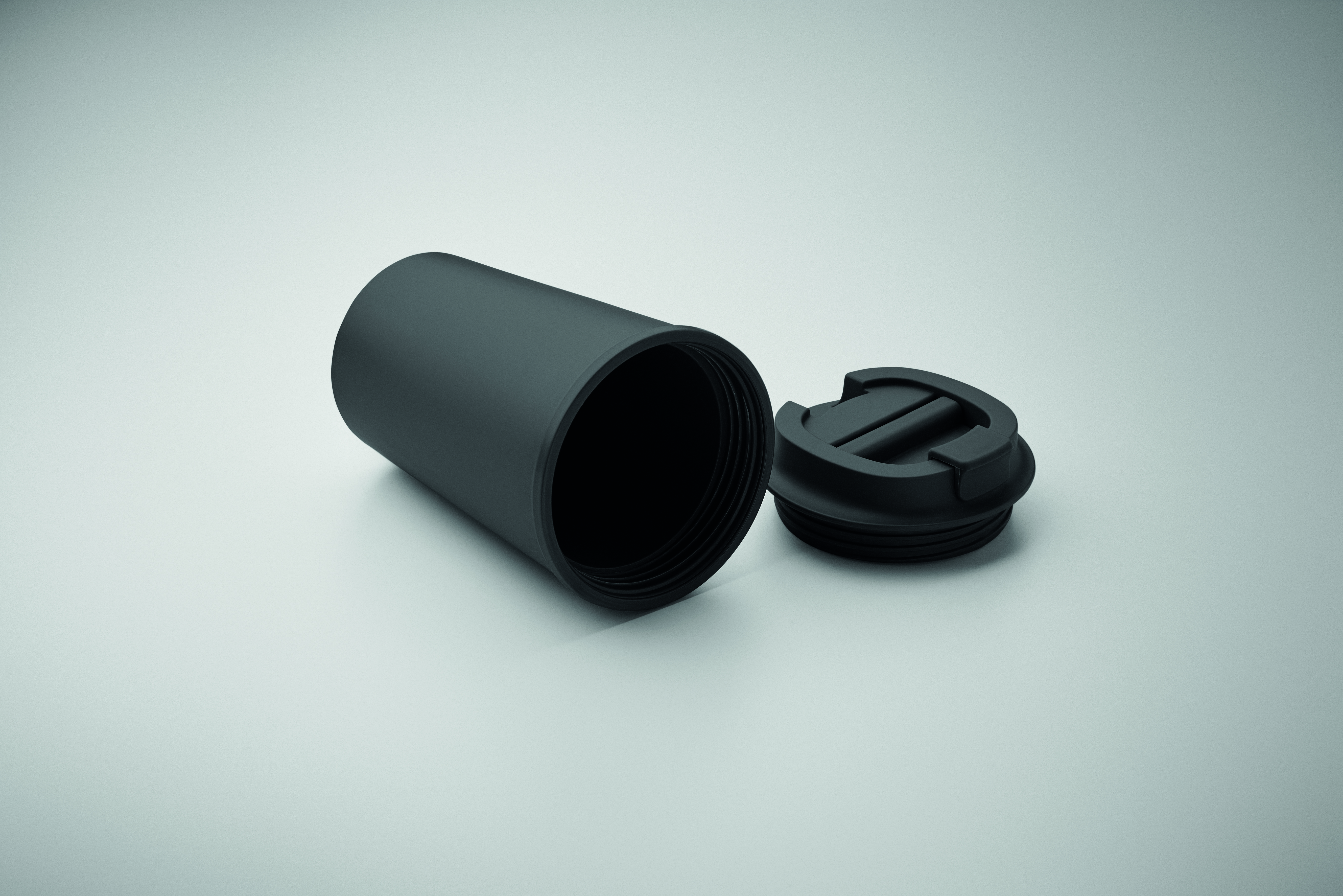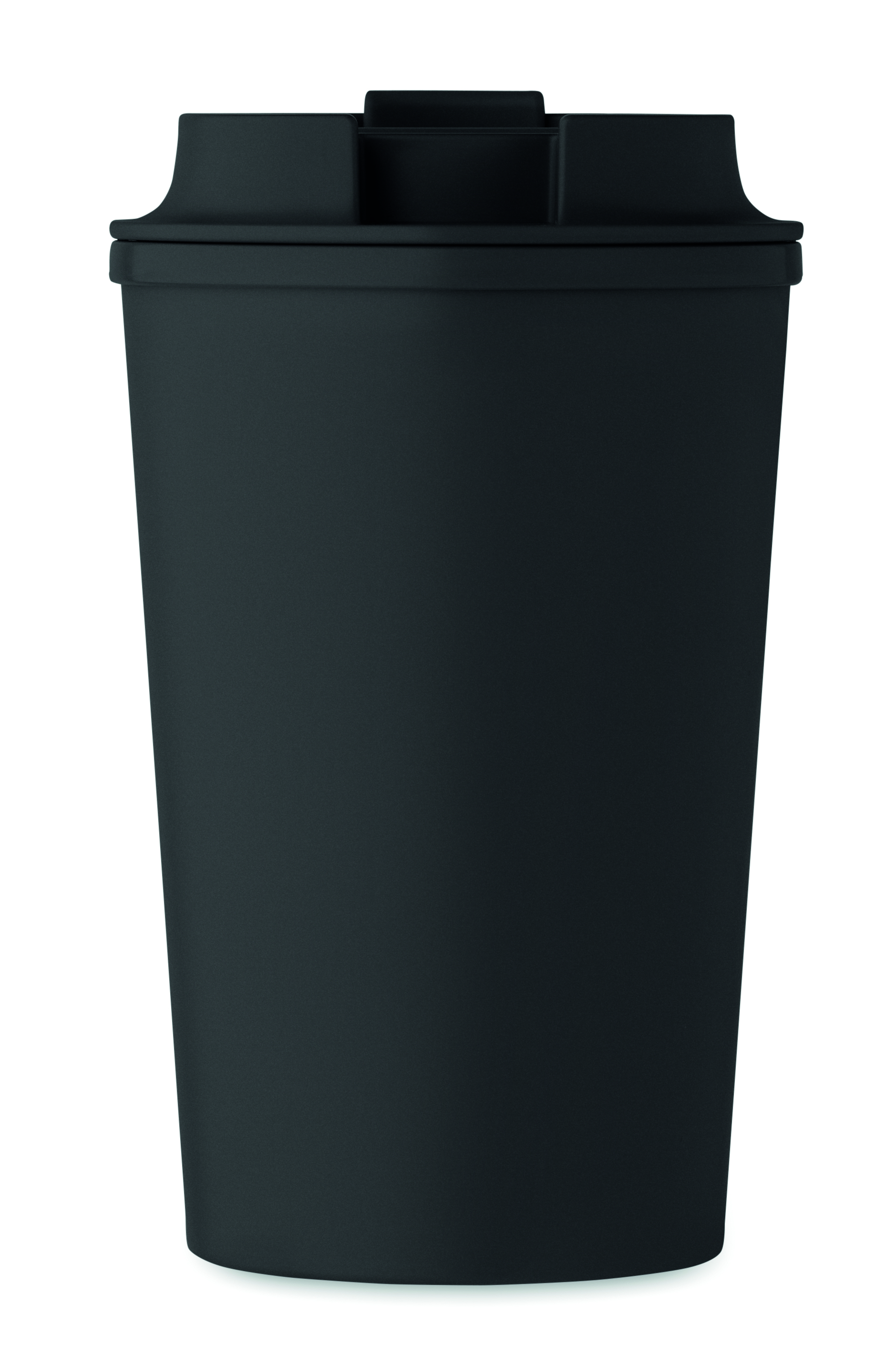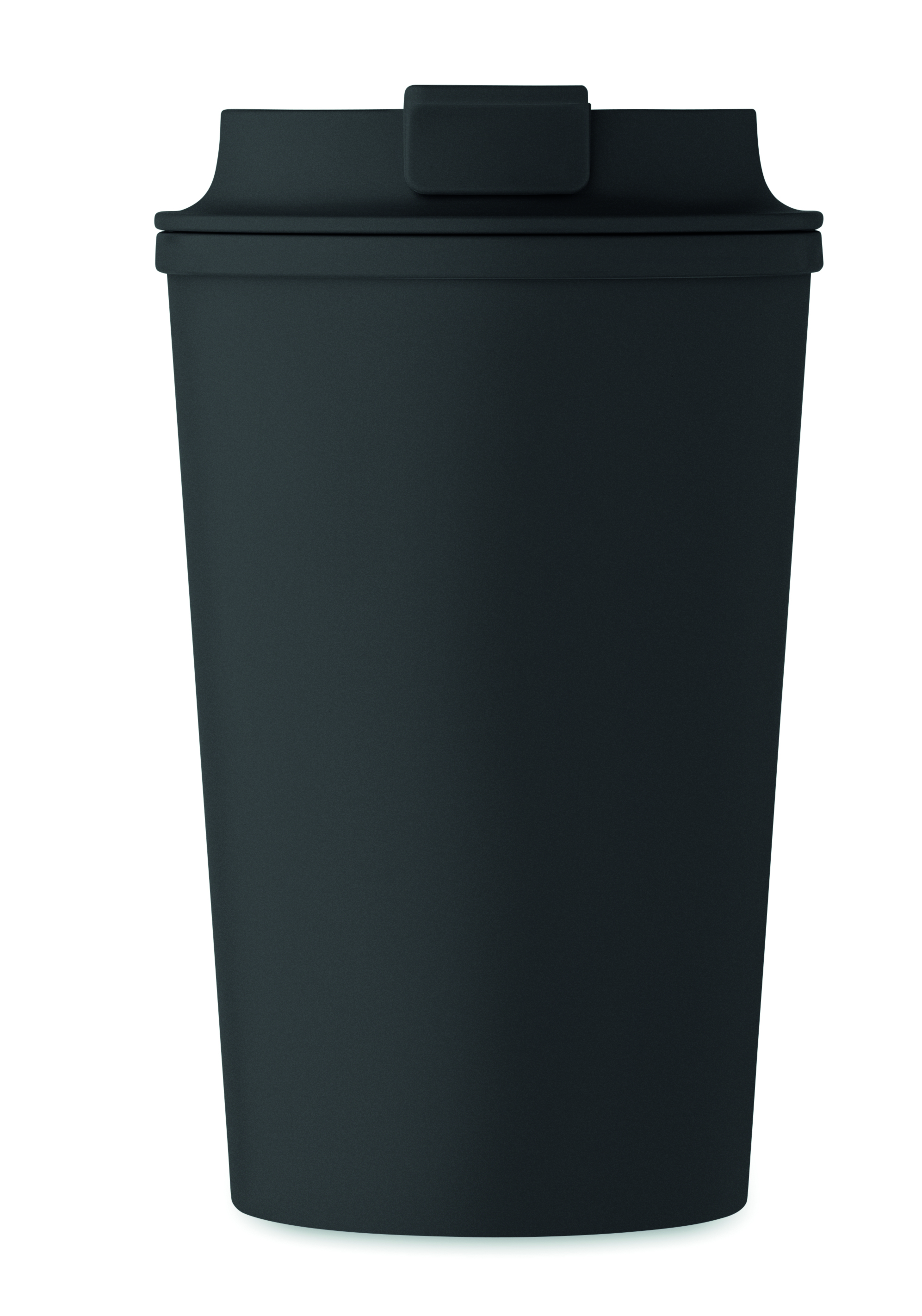 Kubek z podwójnymi ściankami z kukurydzy PLA z pokrywką do picia z PP z wewnętrznym TPR. Pojemność: 350 ml.