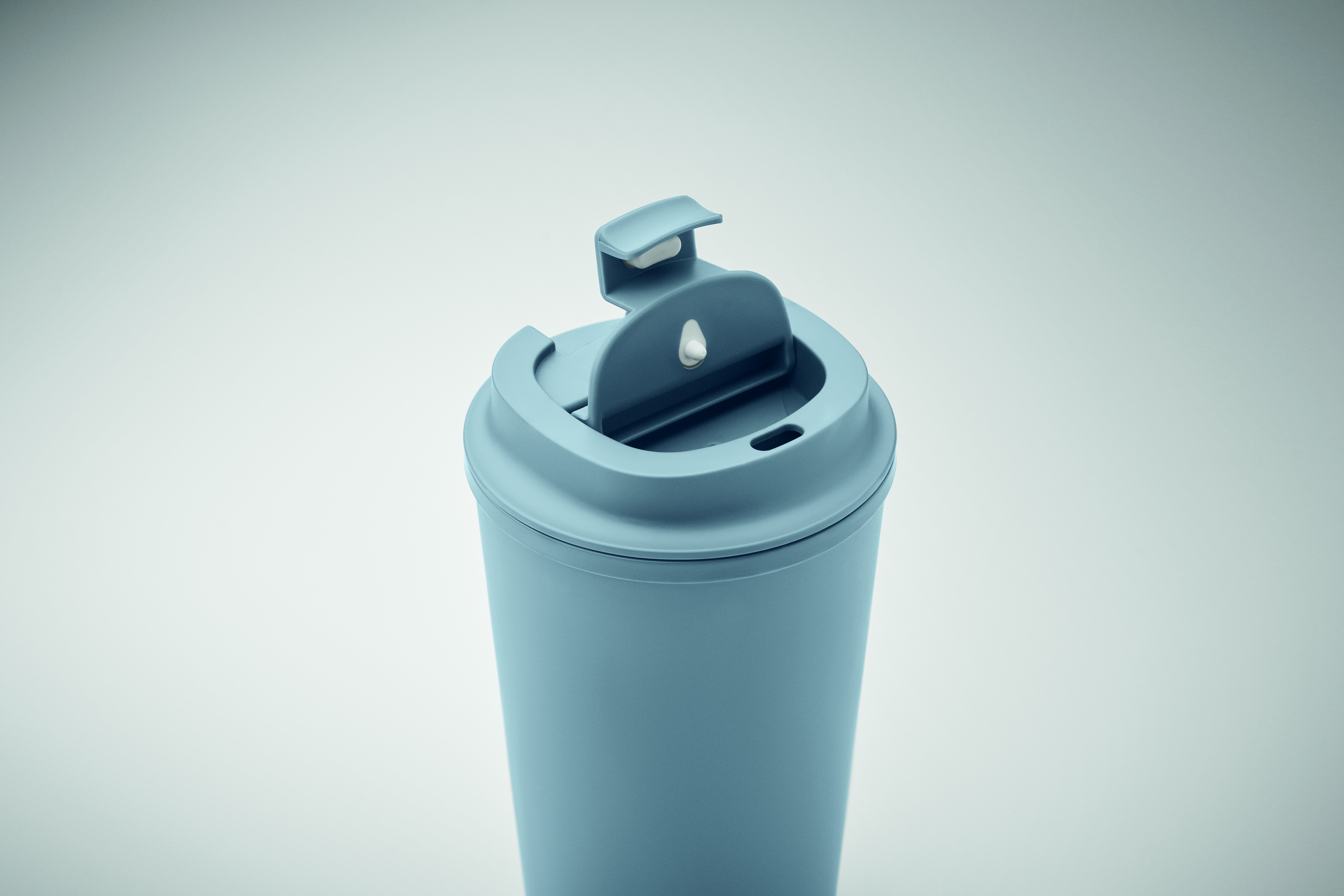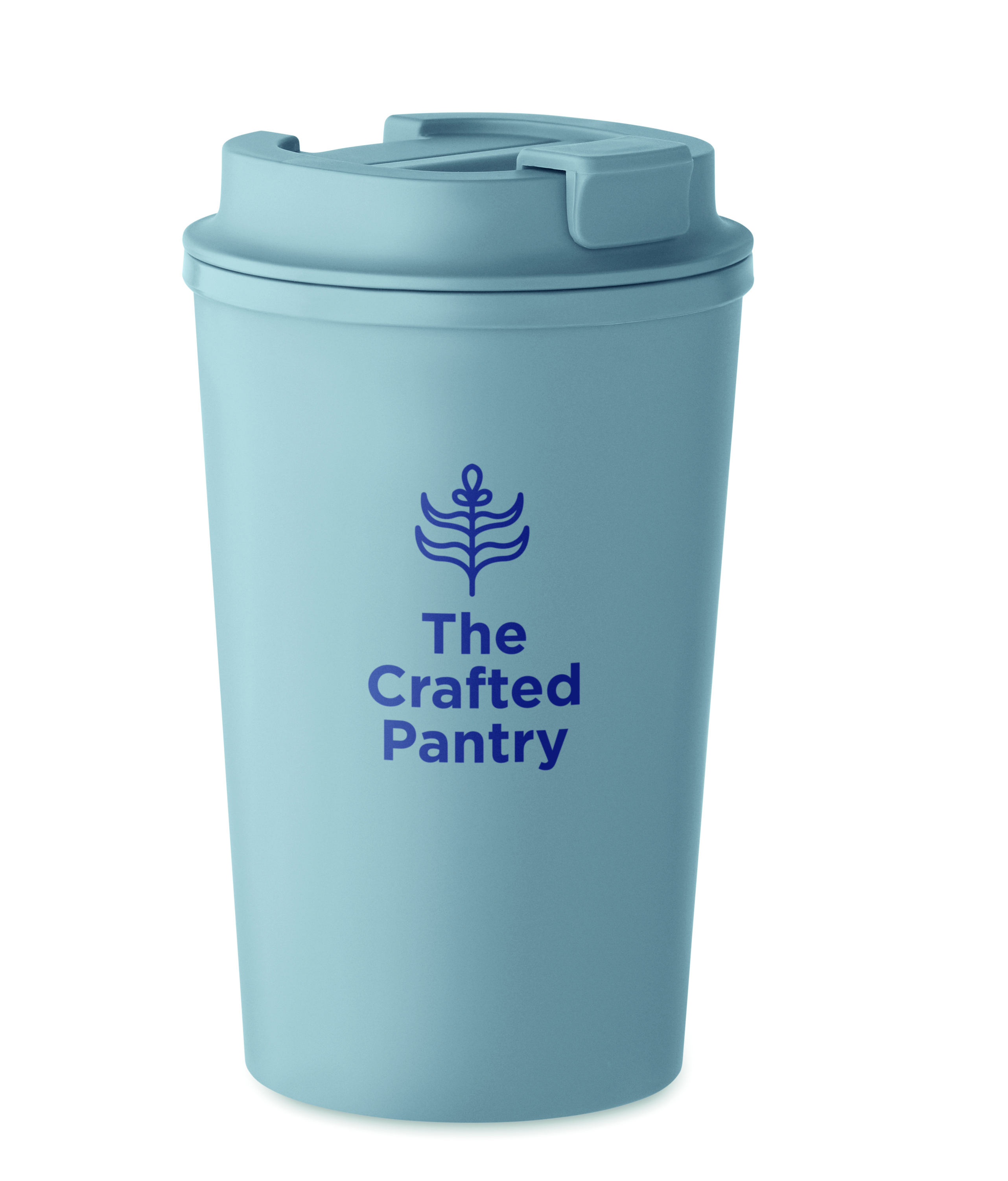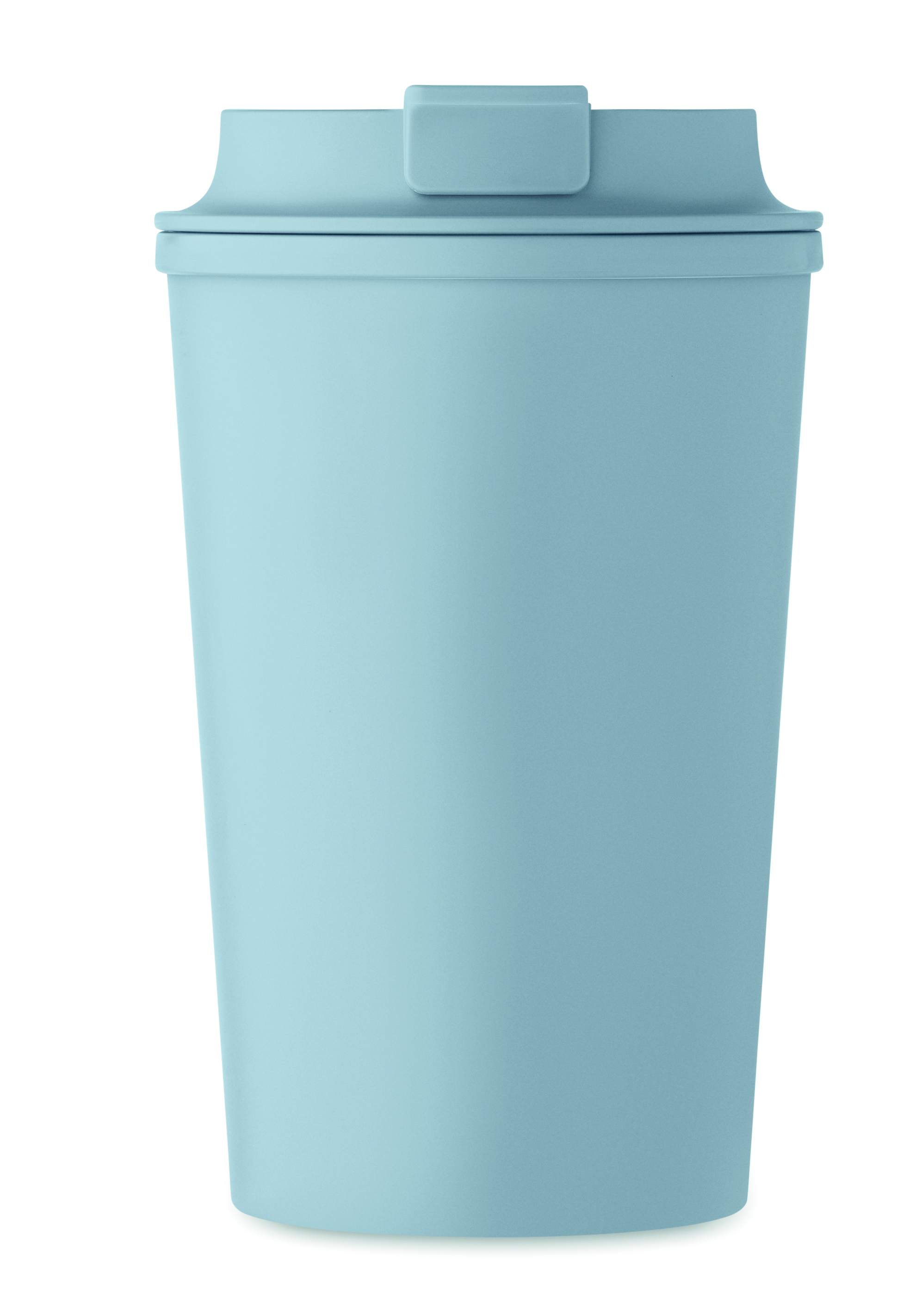 Kubek z podwójnymi ściankami z kukurydzy PLA z pokrywką do picia z PP z wewnętrznym TPR. Pojemność: 350 ml.