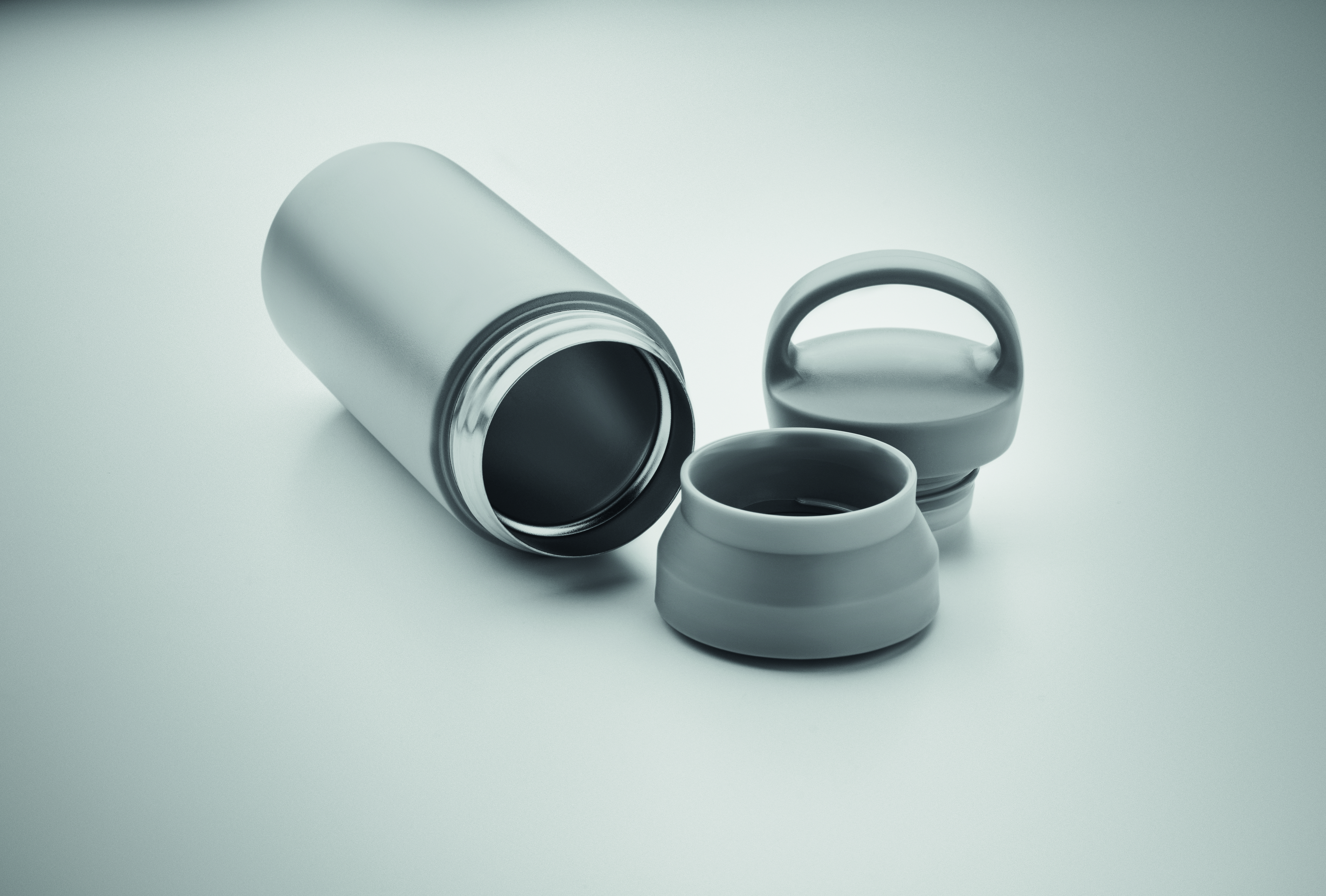 Dwuścienna butelka z izolacją próżniową wykonana ze stali nierdzewnej z recyklingu (90% stali nierdzewnej z recyklingu i 10% stali nierdzewnej) z zakrętką z PP z ułatwiającą czyszczenie. Pojemność: 320 ml.
