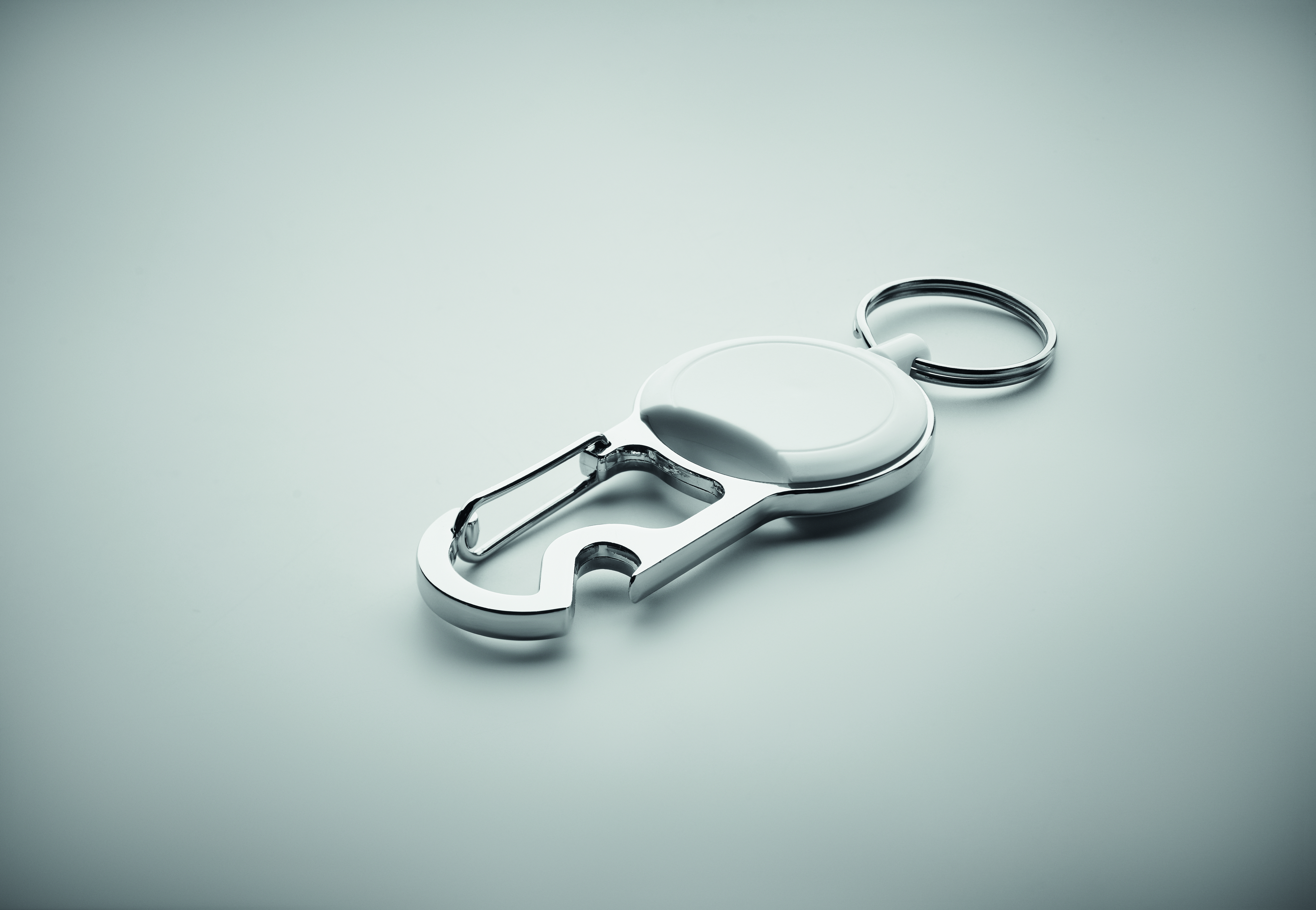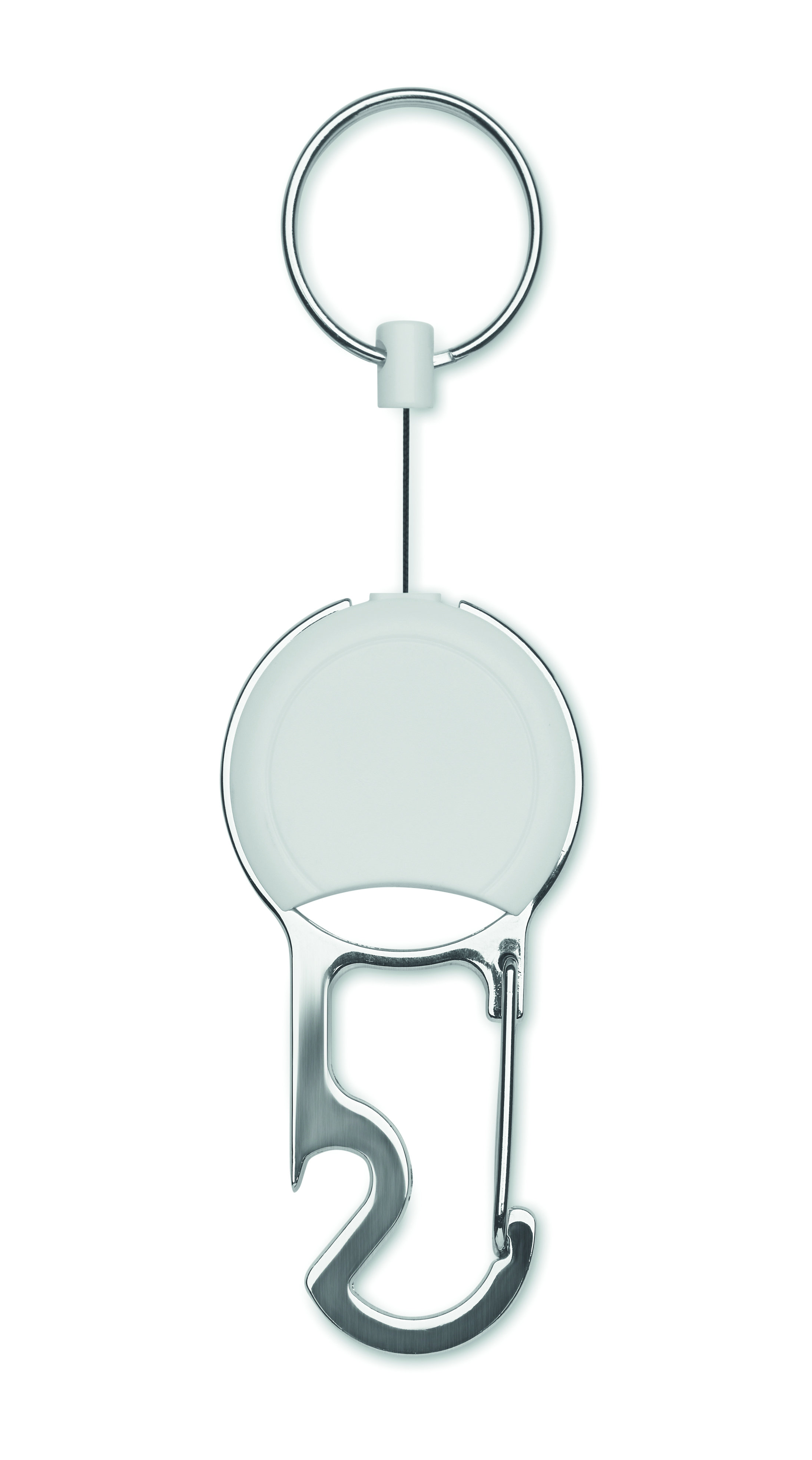 Wysuwany identyfikator z ABS z klipsem, kółkiem na klucze i otwieraczem do butelek.