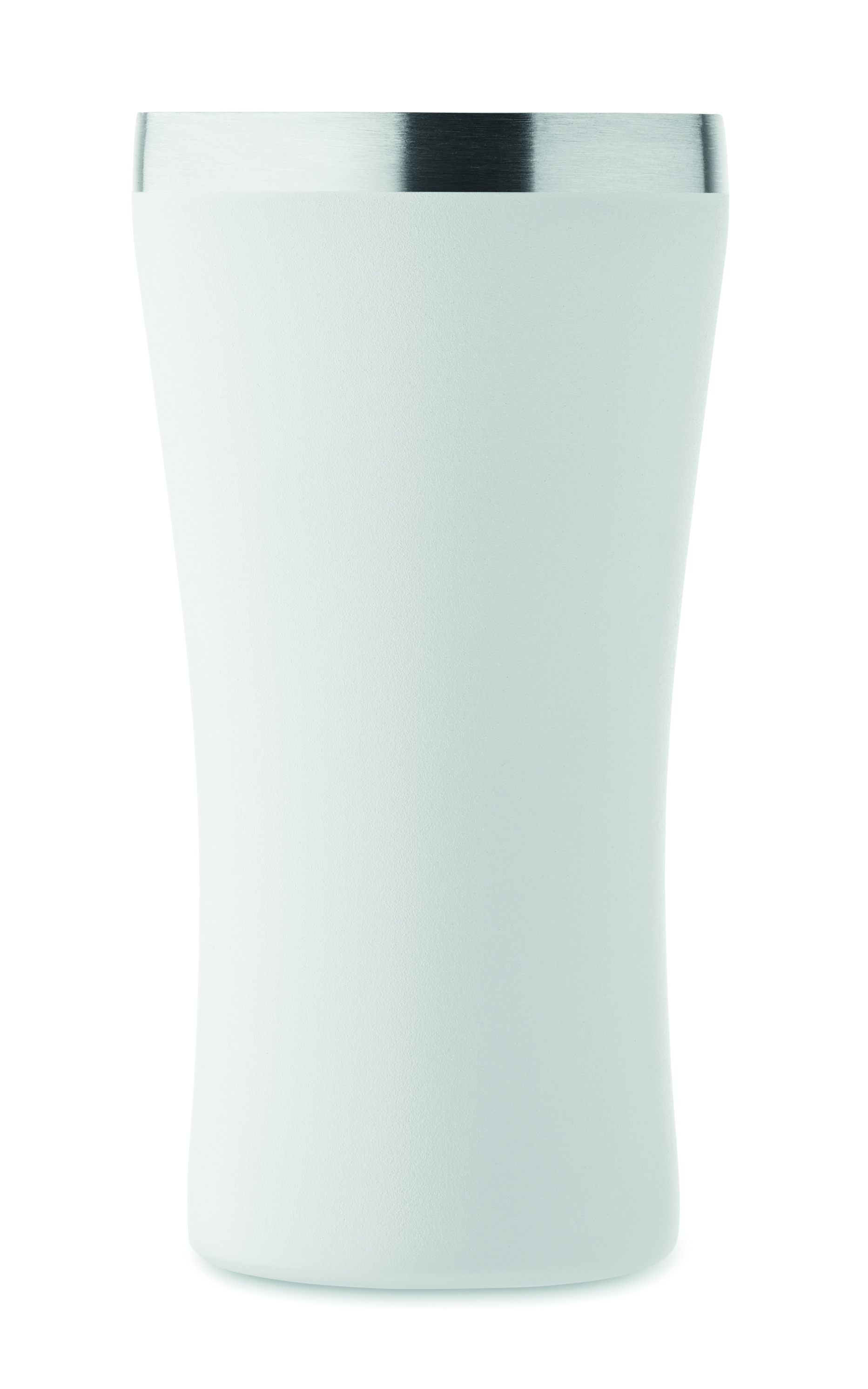 Mały kubek o podwójnych ściankach izolowanych próżniowo, wykonany ze stali nierdzewnej z recyklingu (90% stali nierdzewnej z recyklingu i 10% stali nierdzewnej), z zakrętką z otworem do picia z przezroczystego PP. Pojemność: 160 ml.