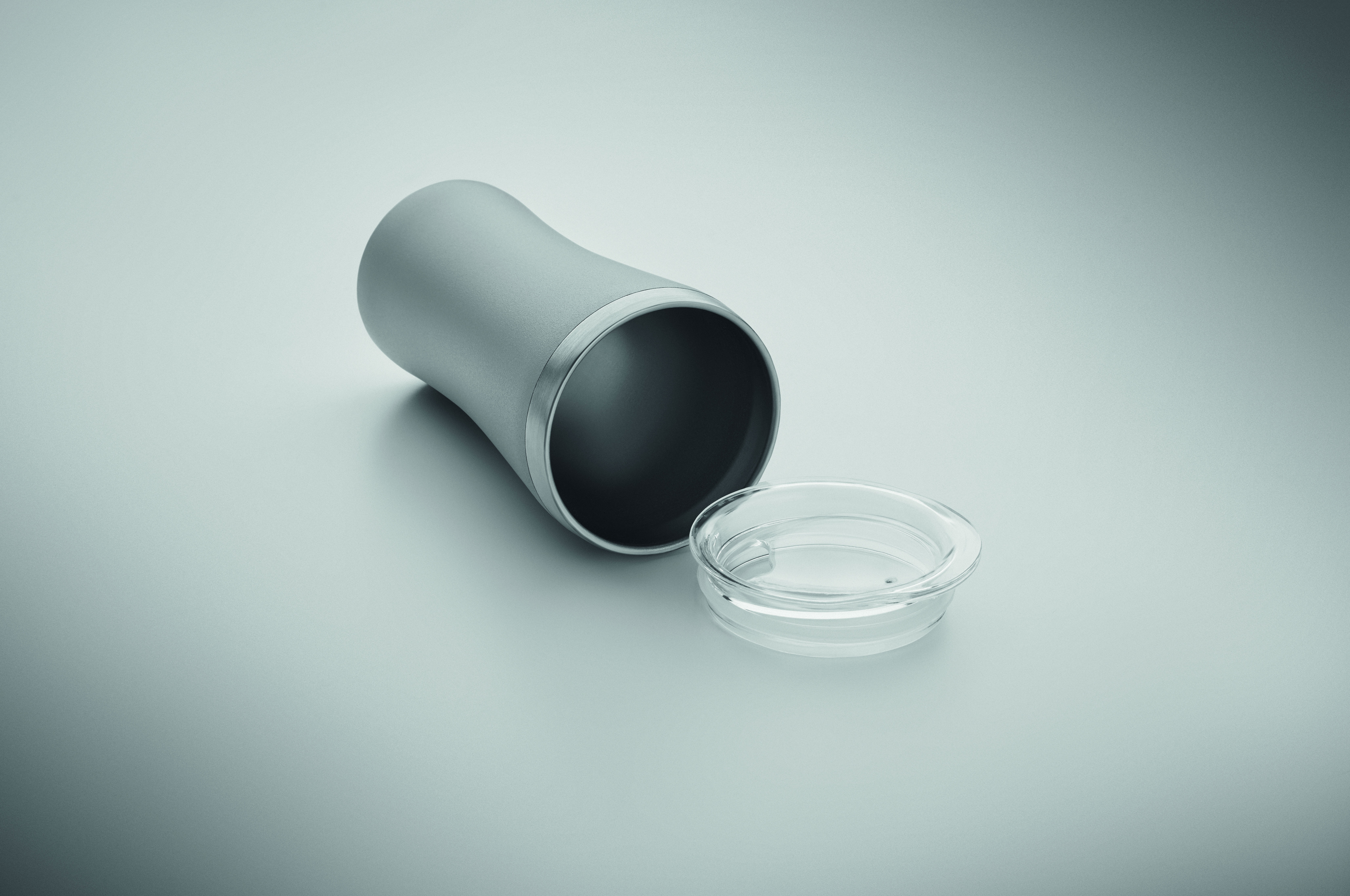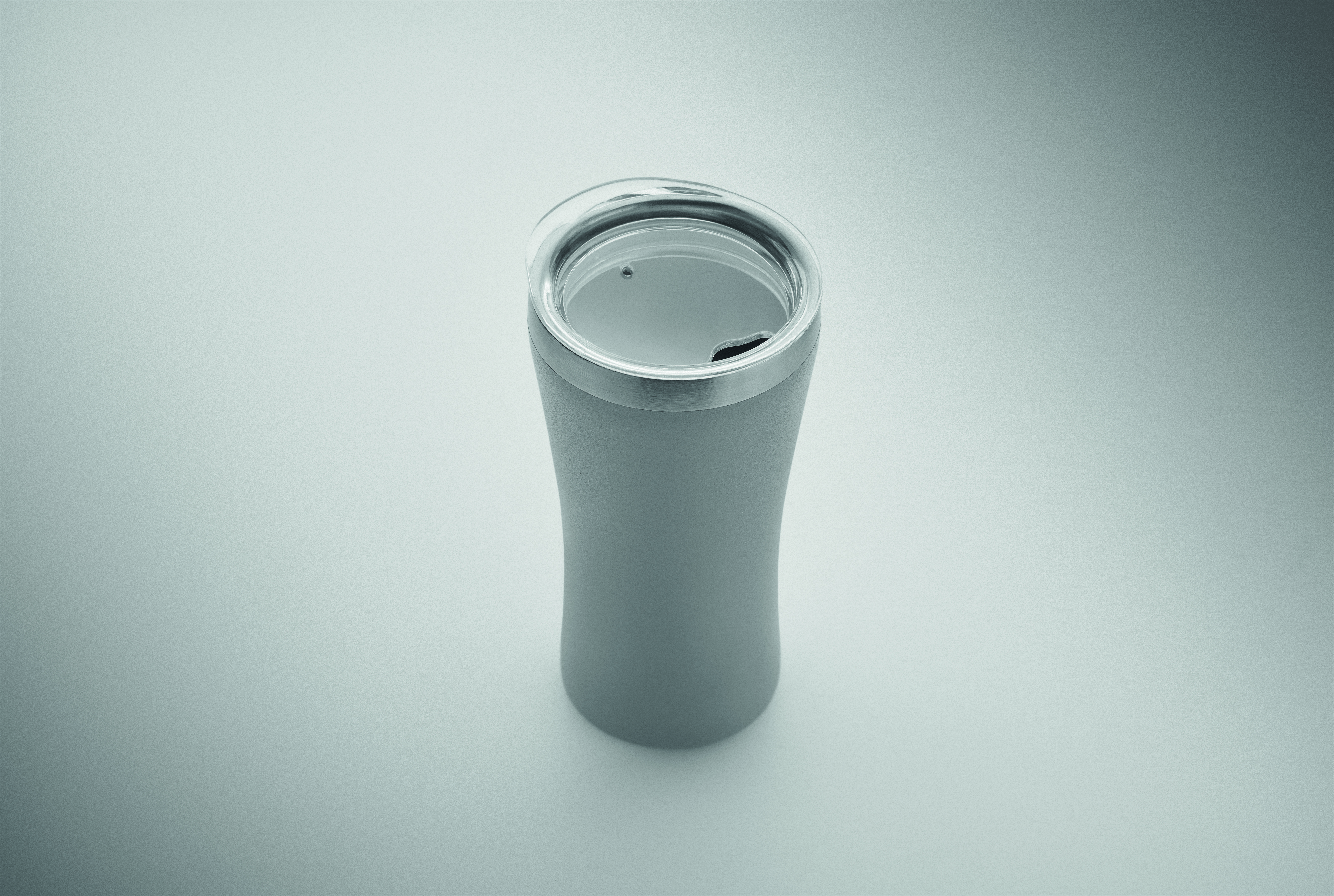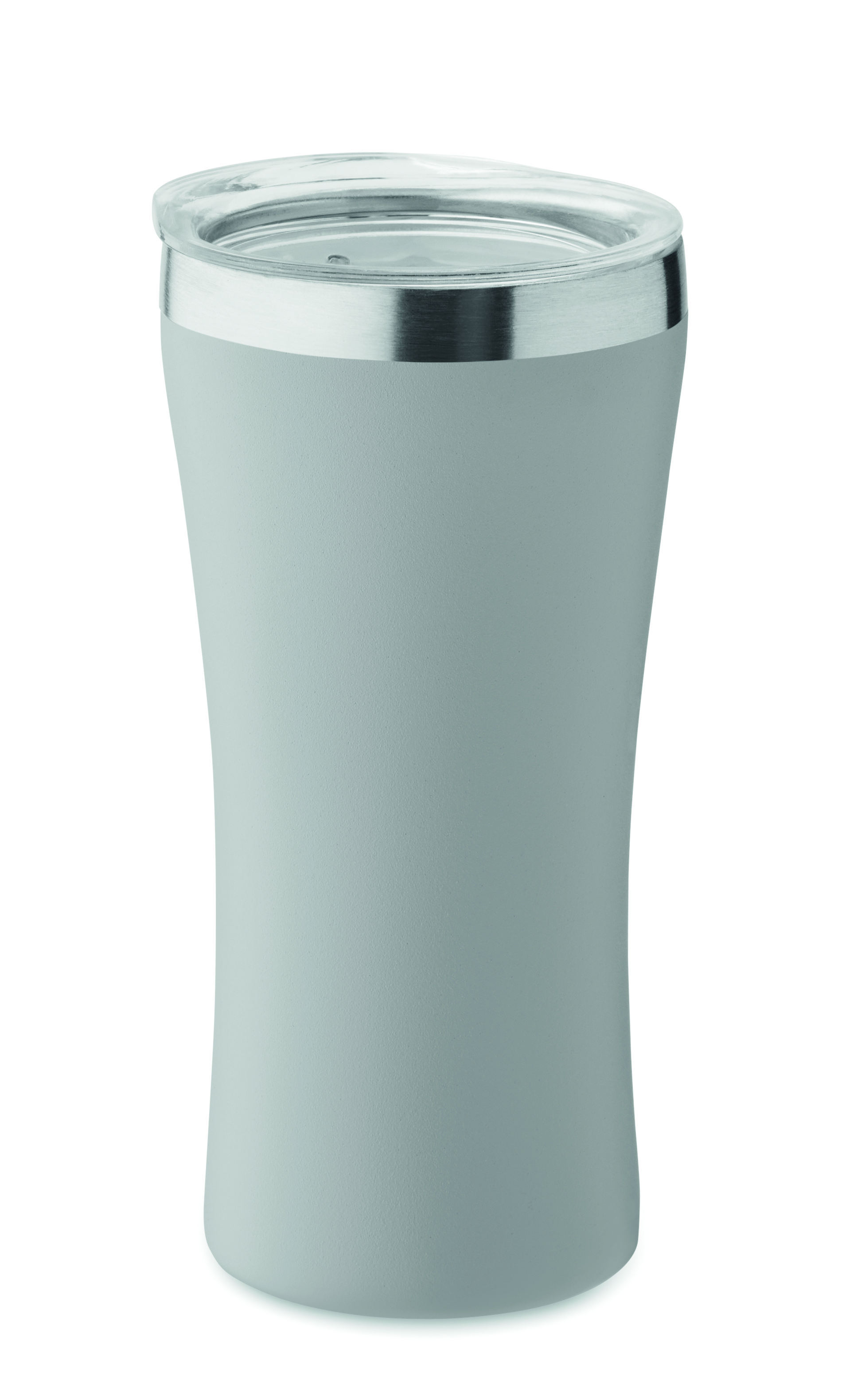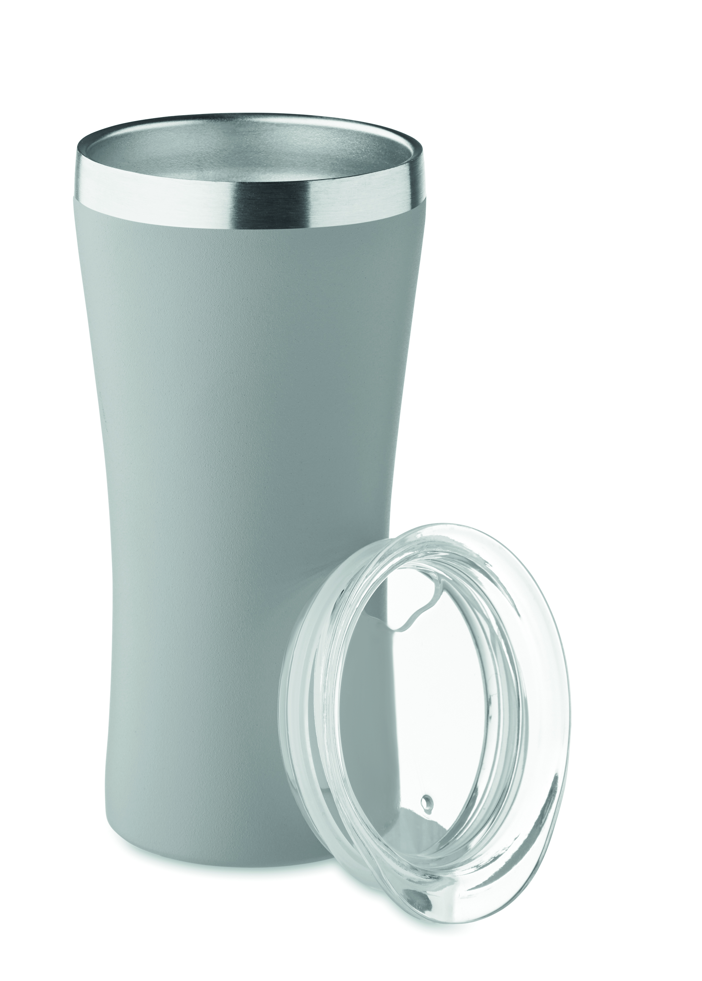 Mały kubek o podwójnych ściankach izolowanych próżniowo, wykonany ze stali nierdzewnej z recyklingu (90% stali nierdzewnej z recyklingu i 10% stali nierdzewnej), z zakrętką z otworem do picia z przezroczystego PP. Pojemność: 160 ml.